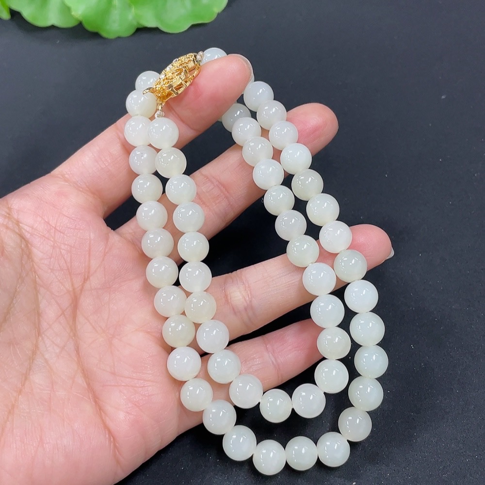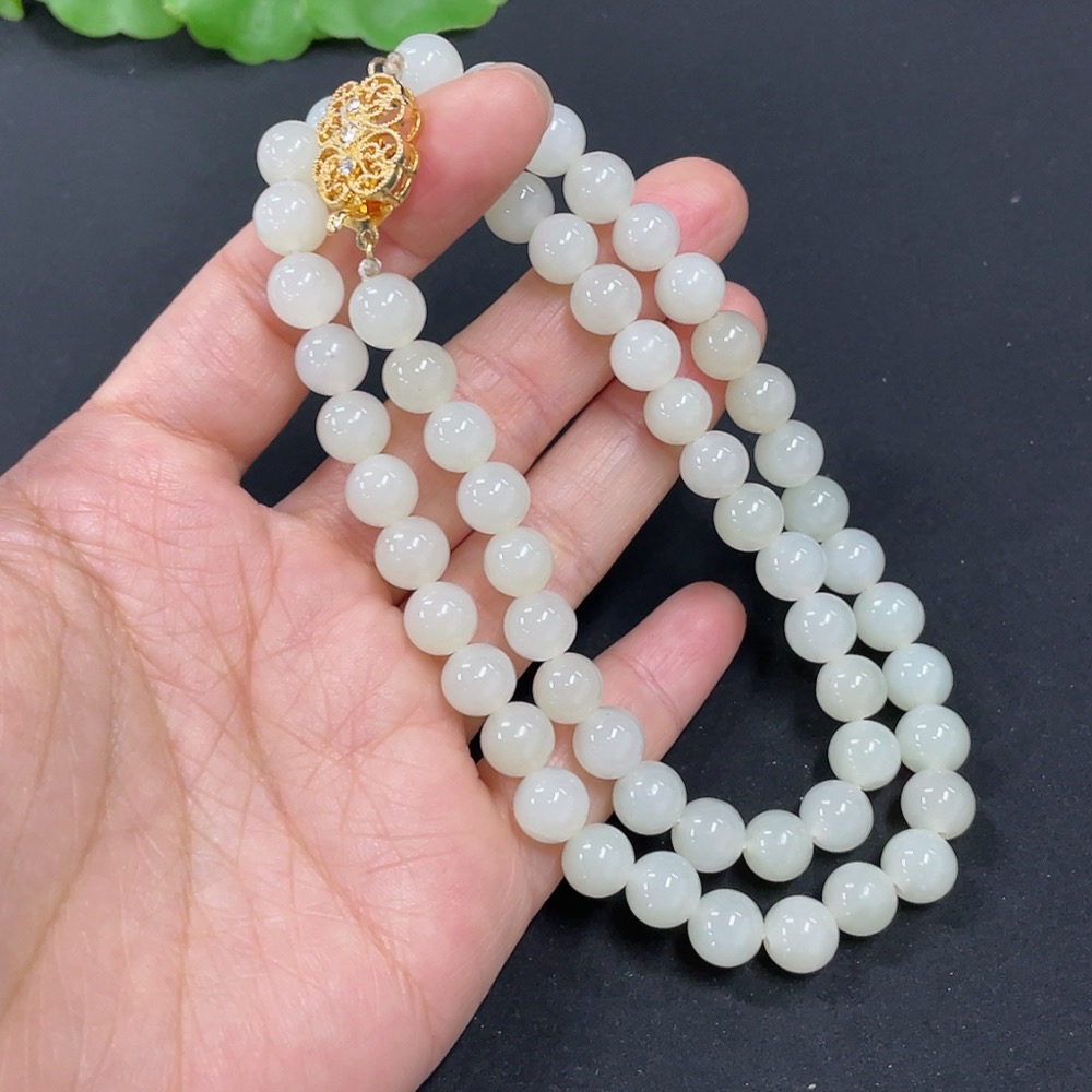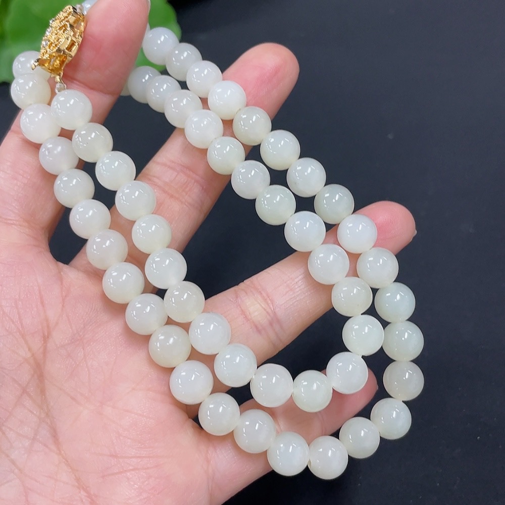 Hetian Jade Bead Necklace Non-Gold 7.5mm Approx. Total Weight About 41.2g