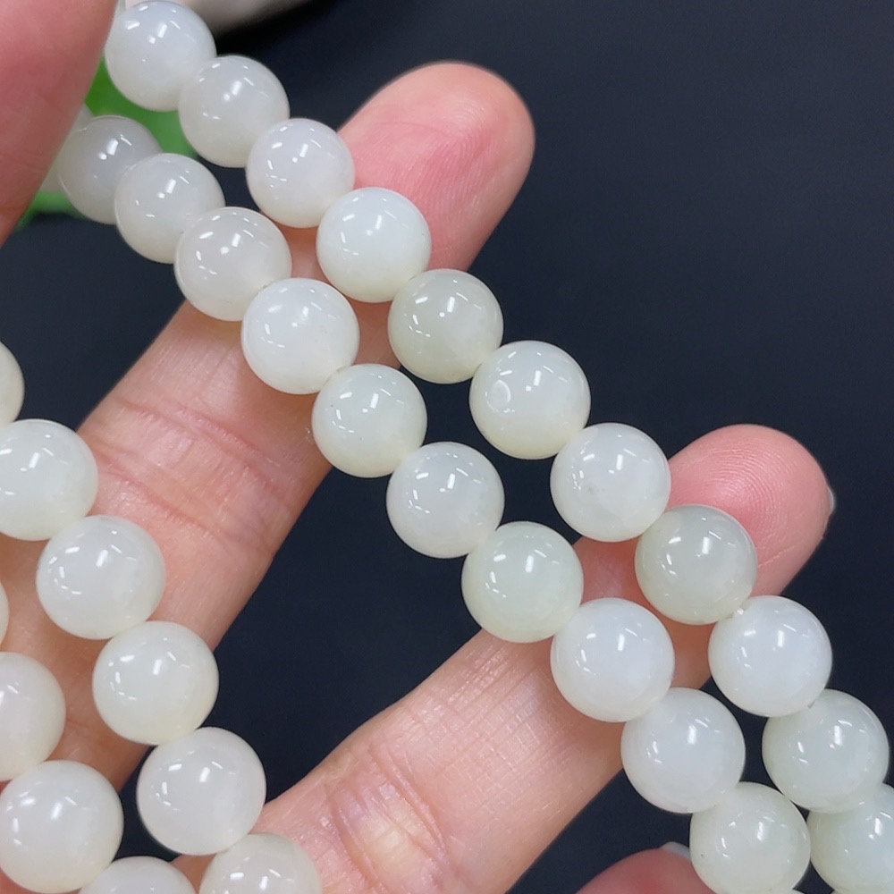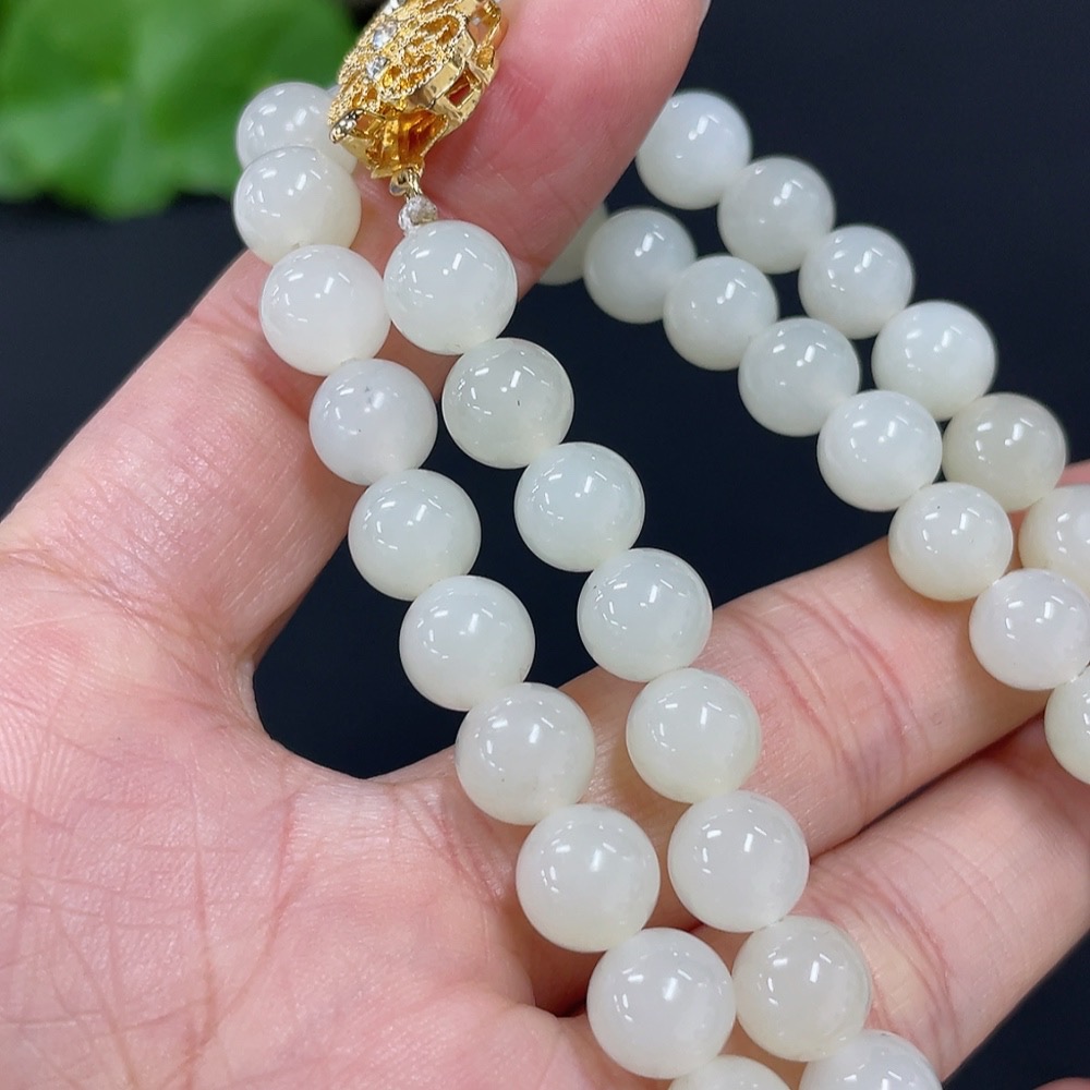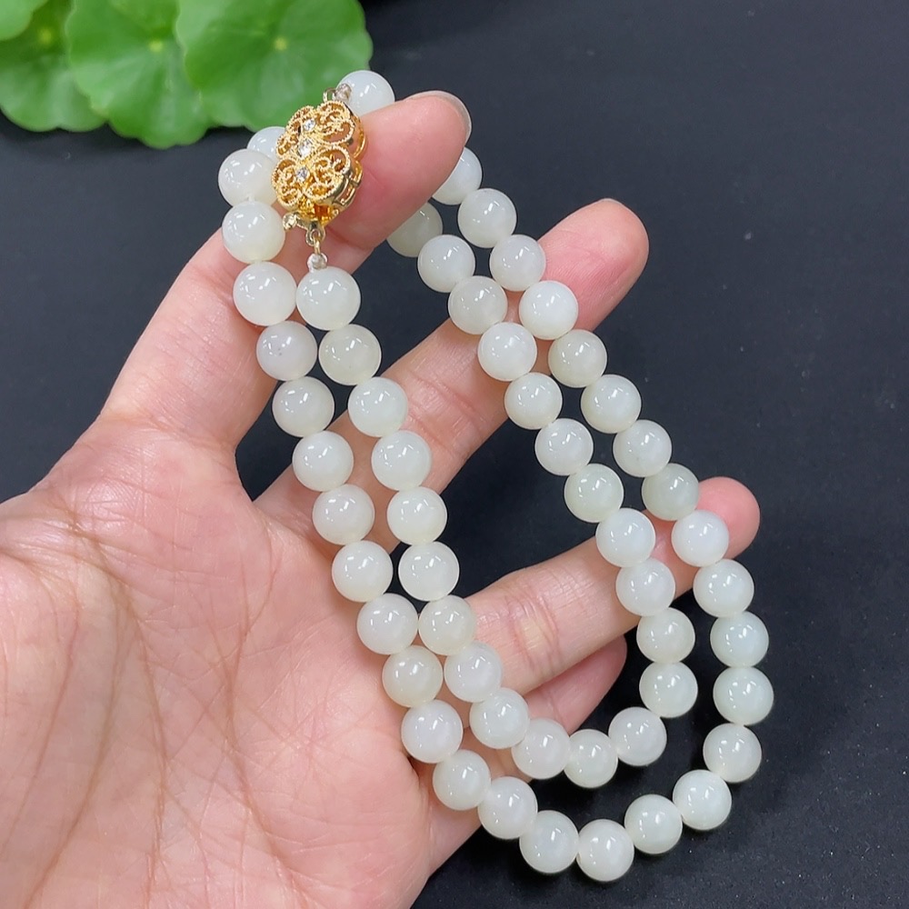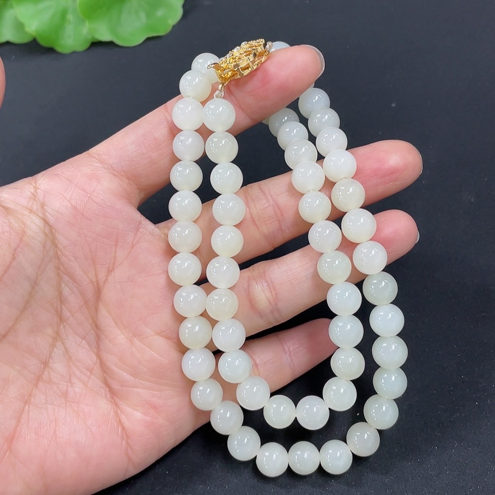 Hetian Jade Bead Necklace Non-Gold 7.5mm Approx. Total Weight About 41.2g