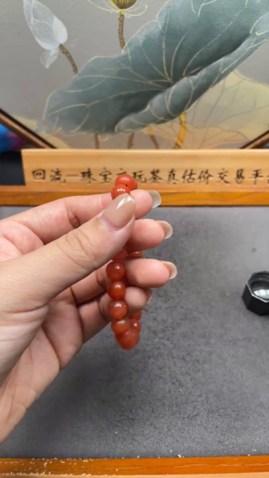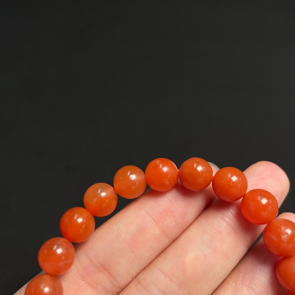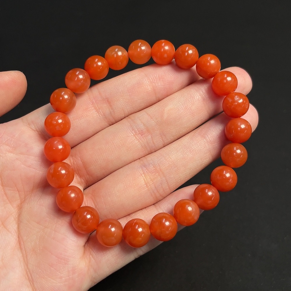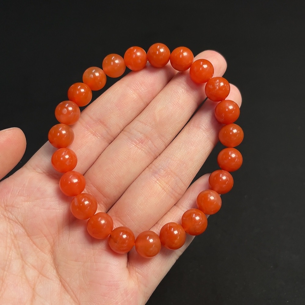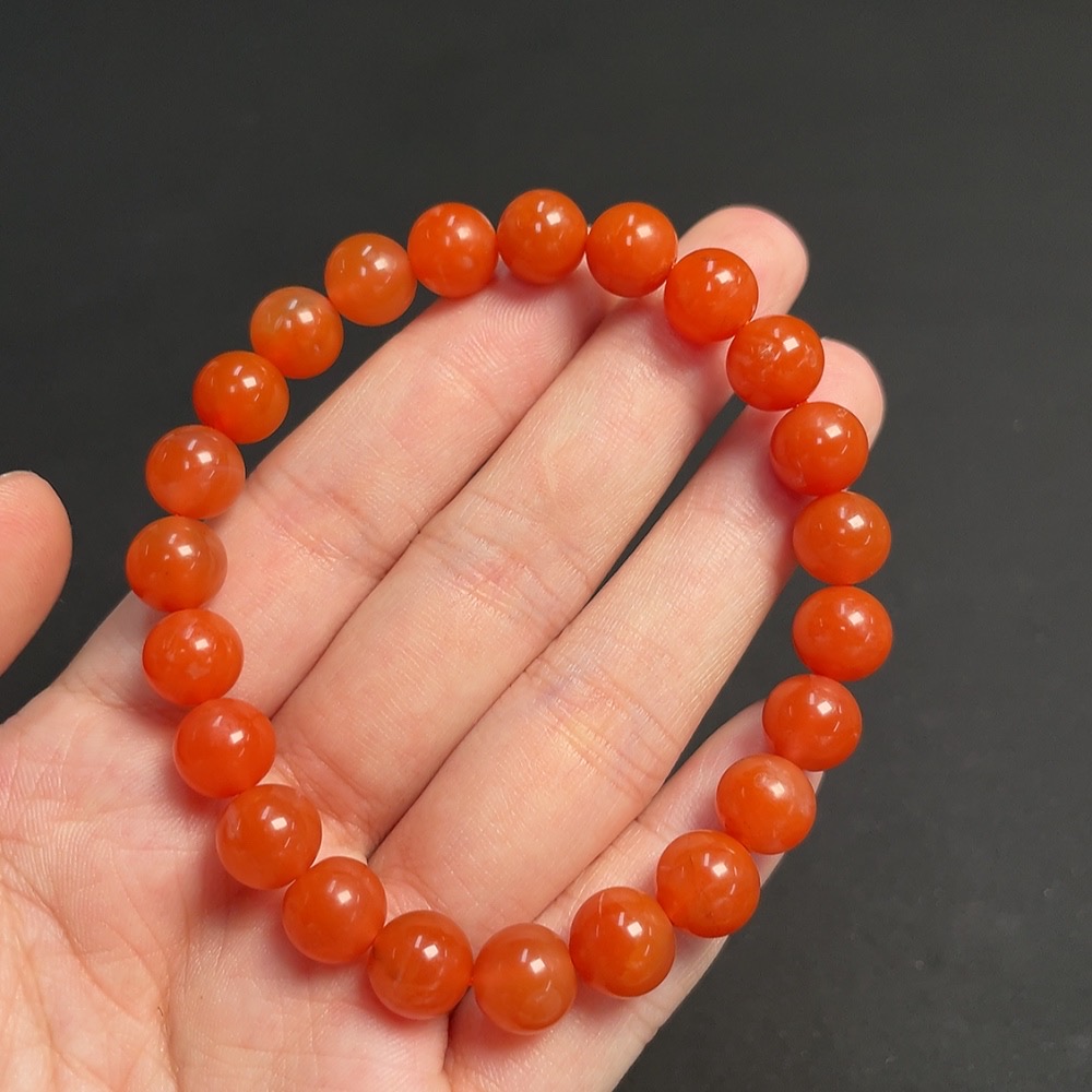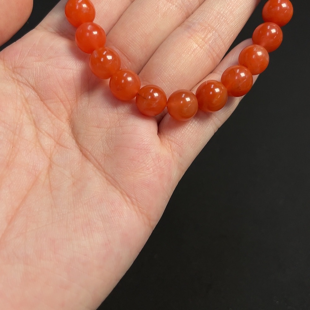 South Red Agate Bracelet, approx. 8.7mm beads, total weight approx. 21.15g, visible organic inclusions