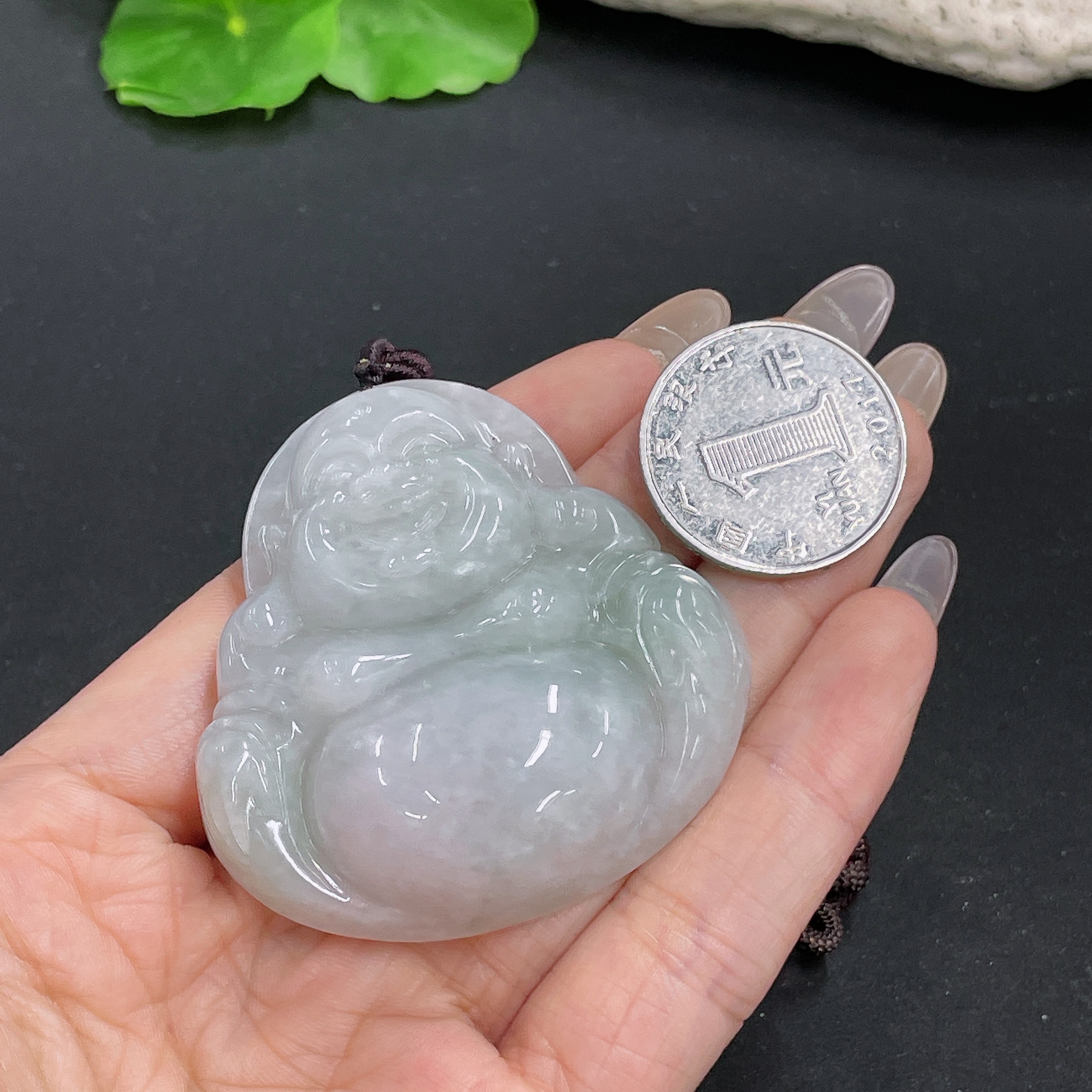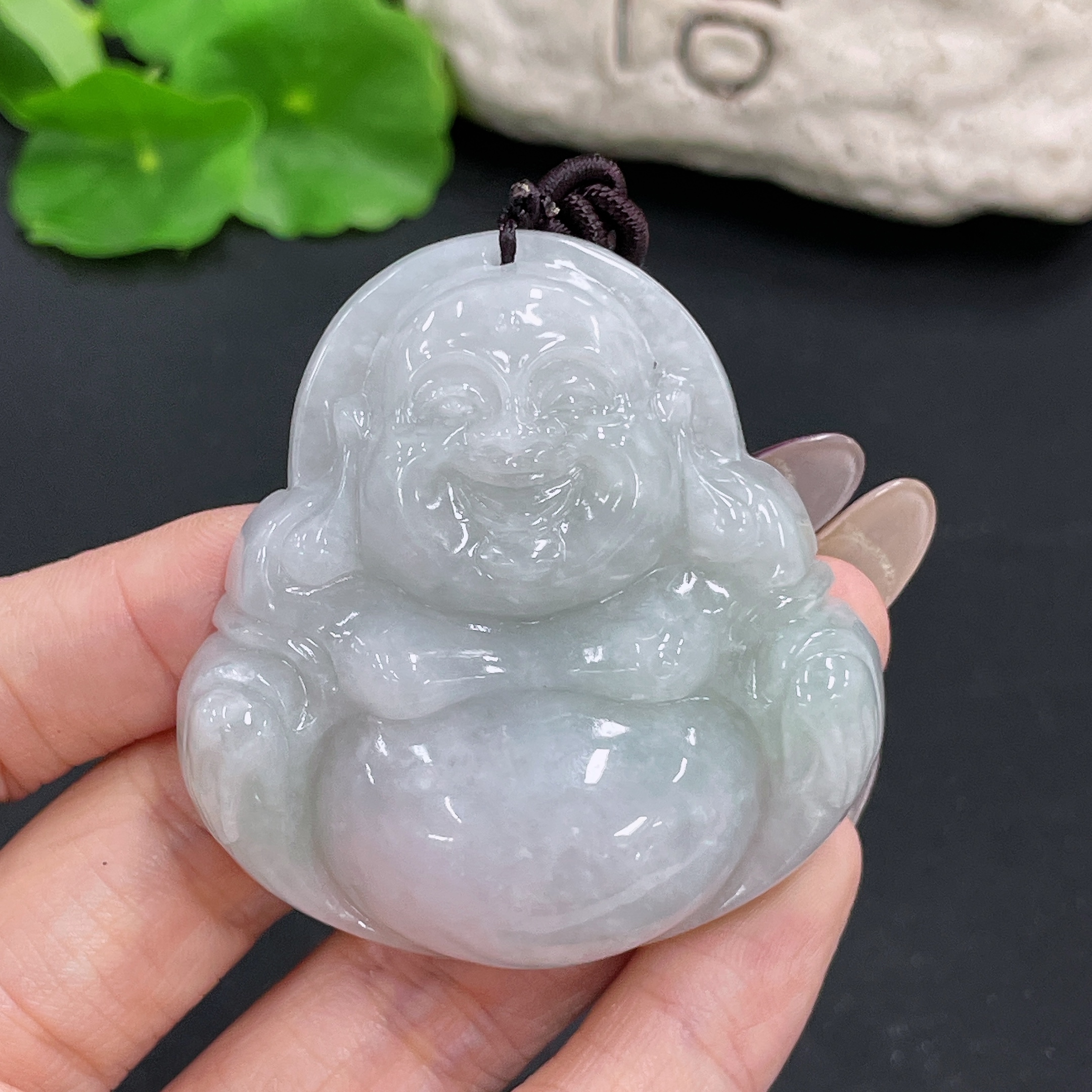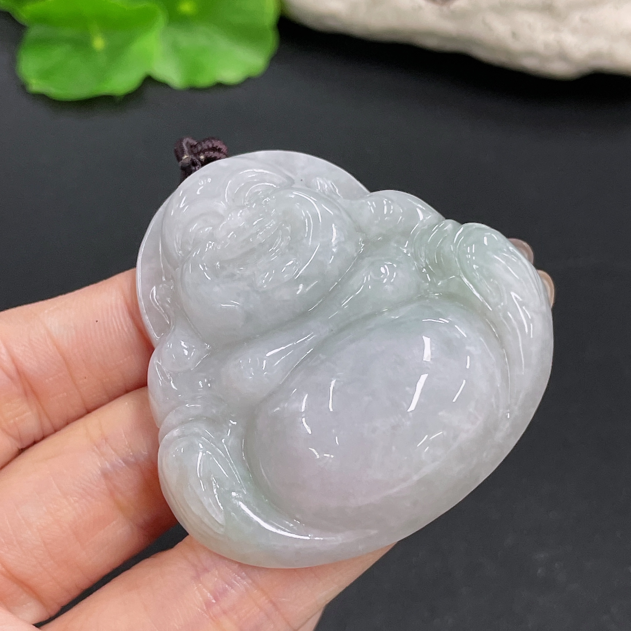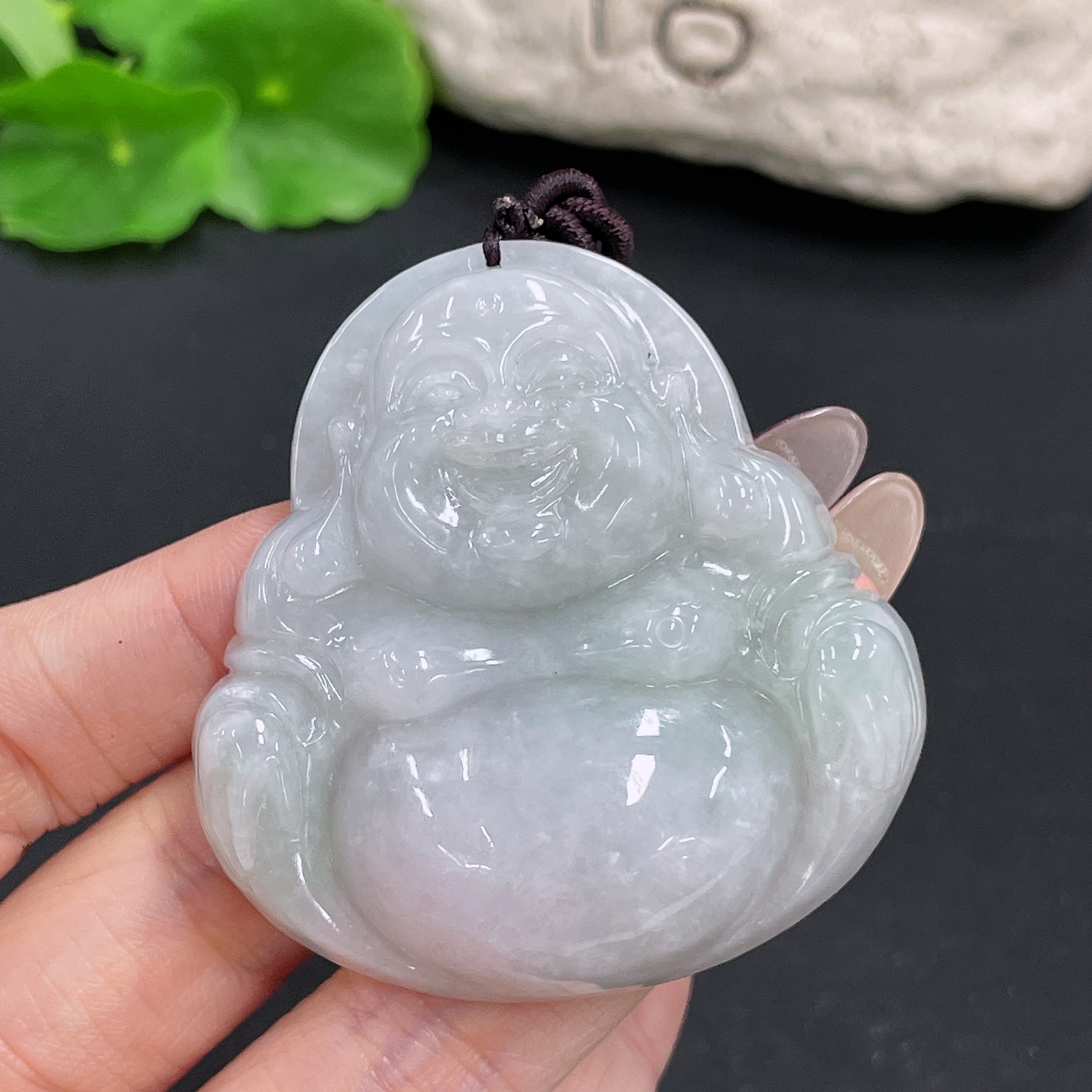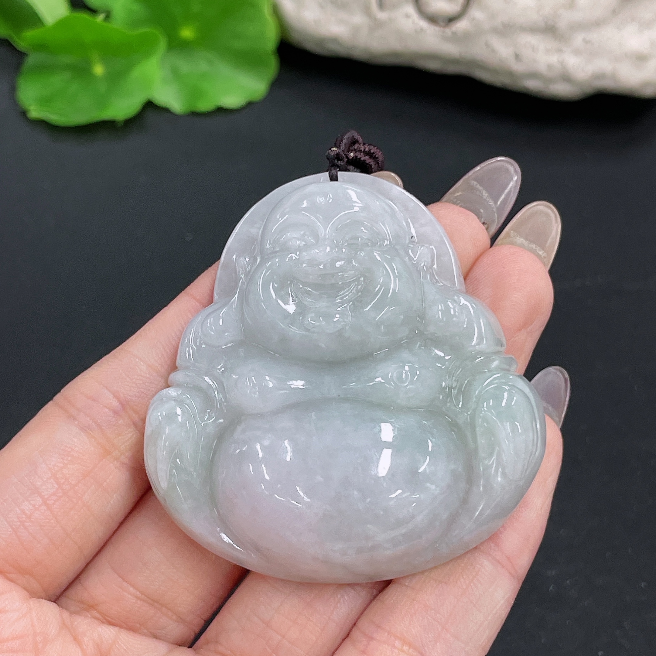 Jadeite Pendant Buddha with Non-A Grade Beads and Rope Total Weight Approx. 67.47g