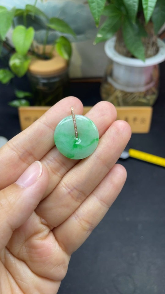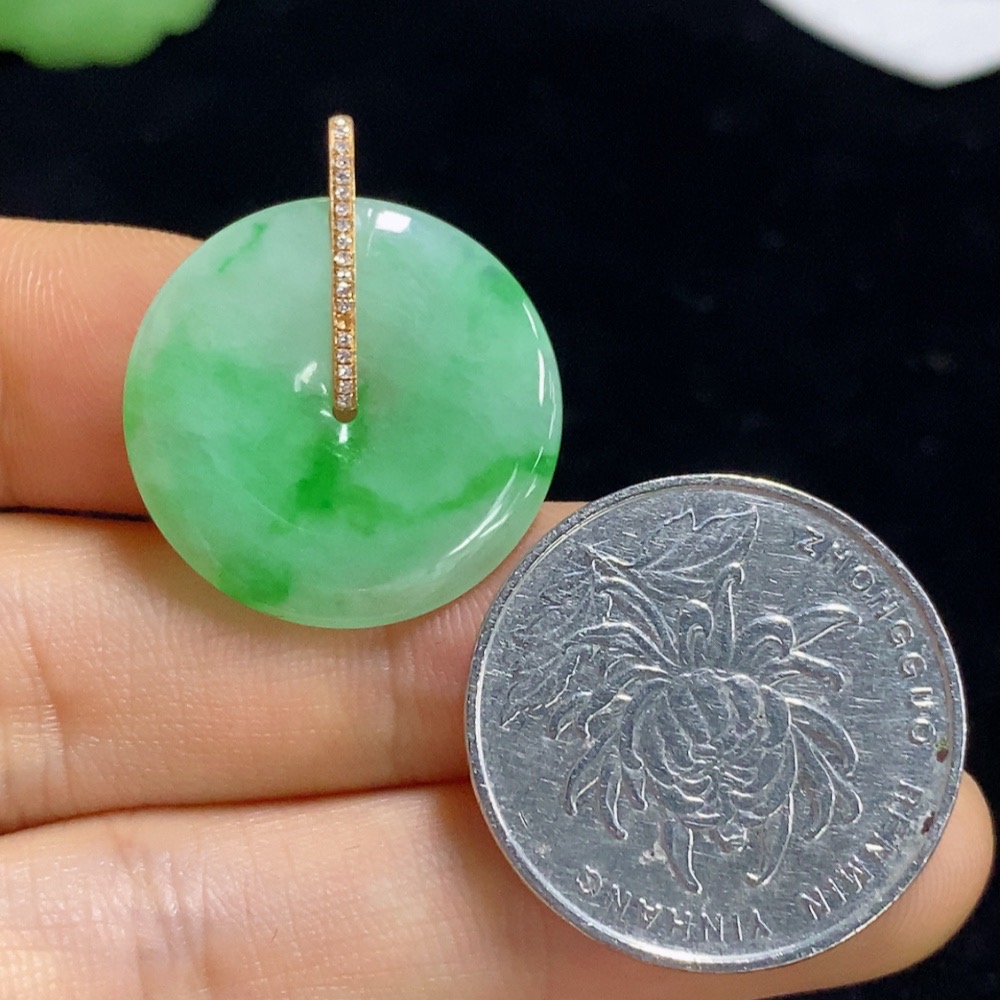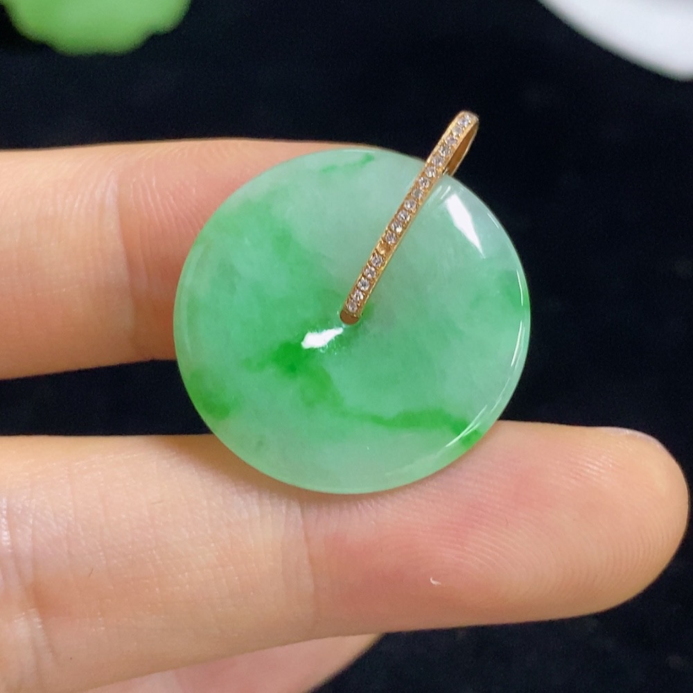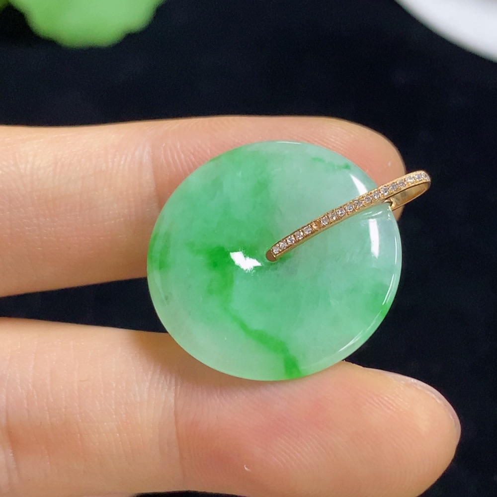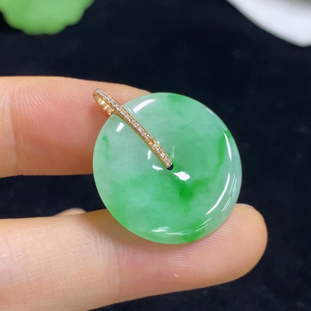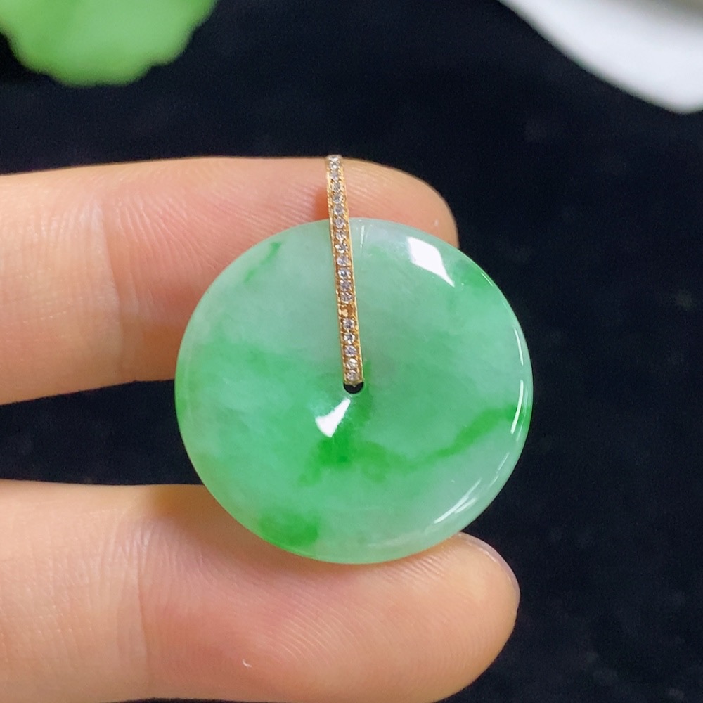 Jadeite Safety Buckle Pendant with 18K Diamond Accents, Total Weight Approximately 3.34g