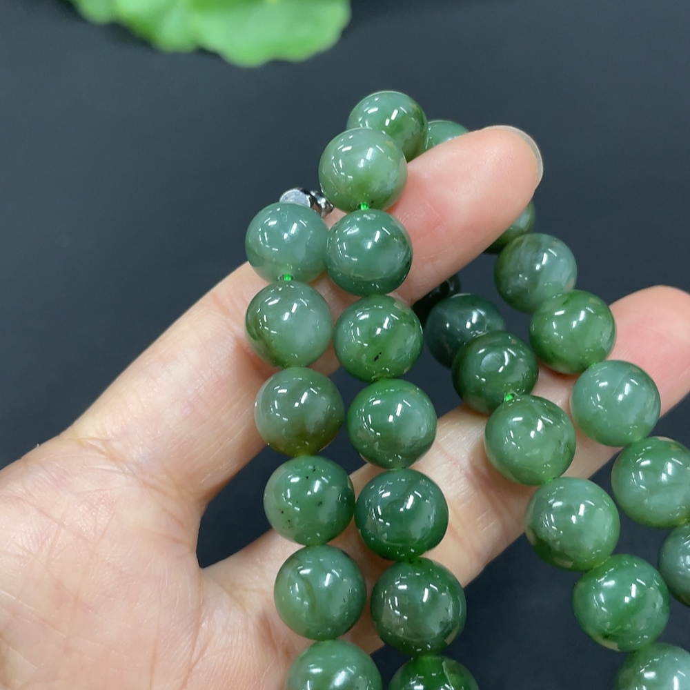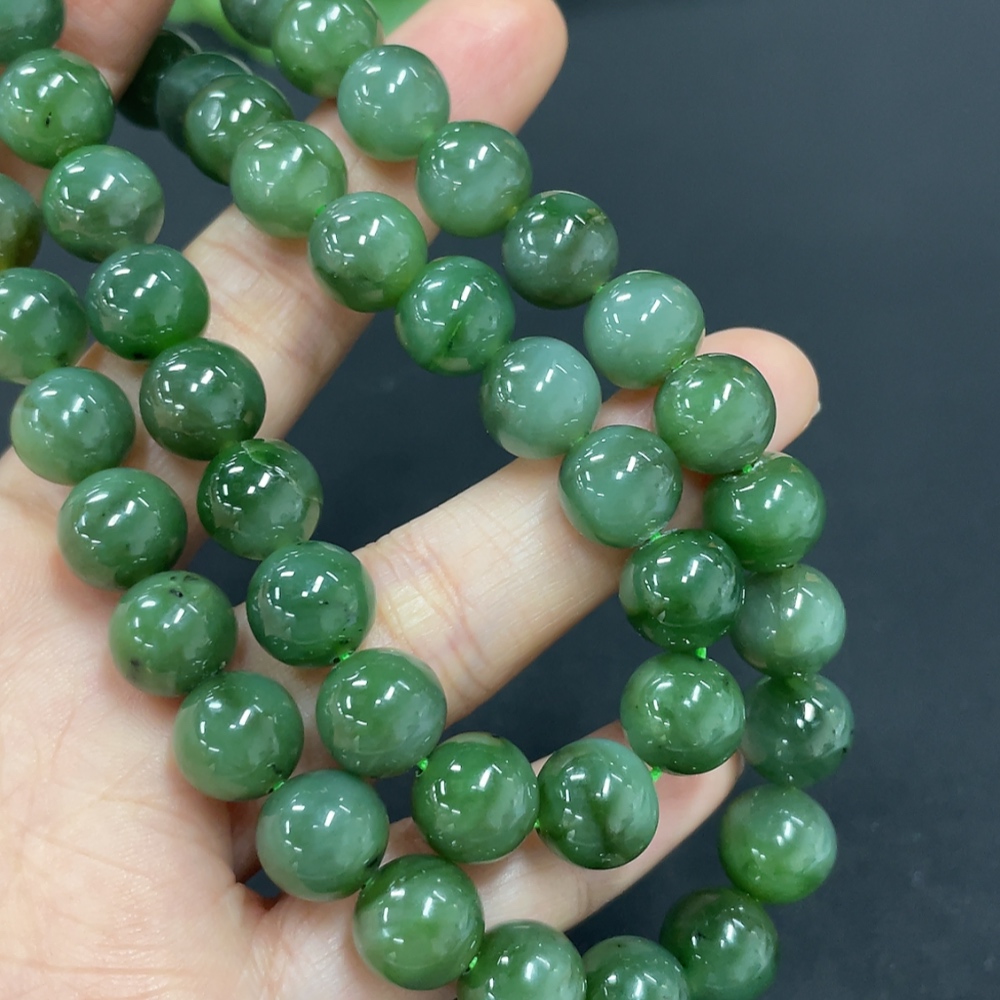 Hetian Jade Bead Necklace Approx. 9.4mm Total Weight Approx. 65.7g
