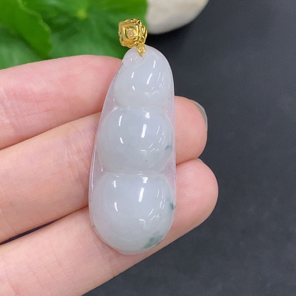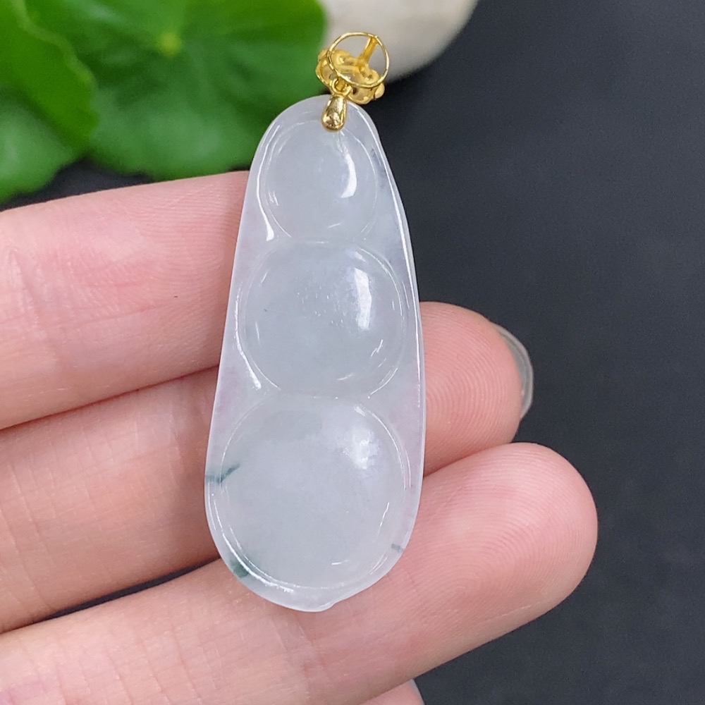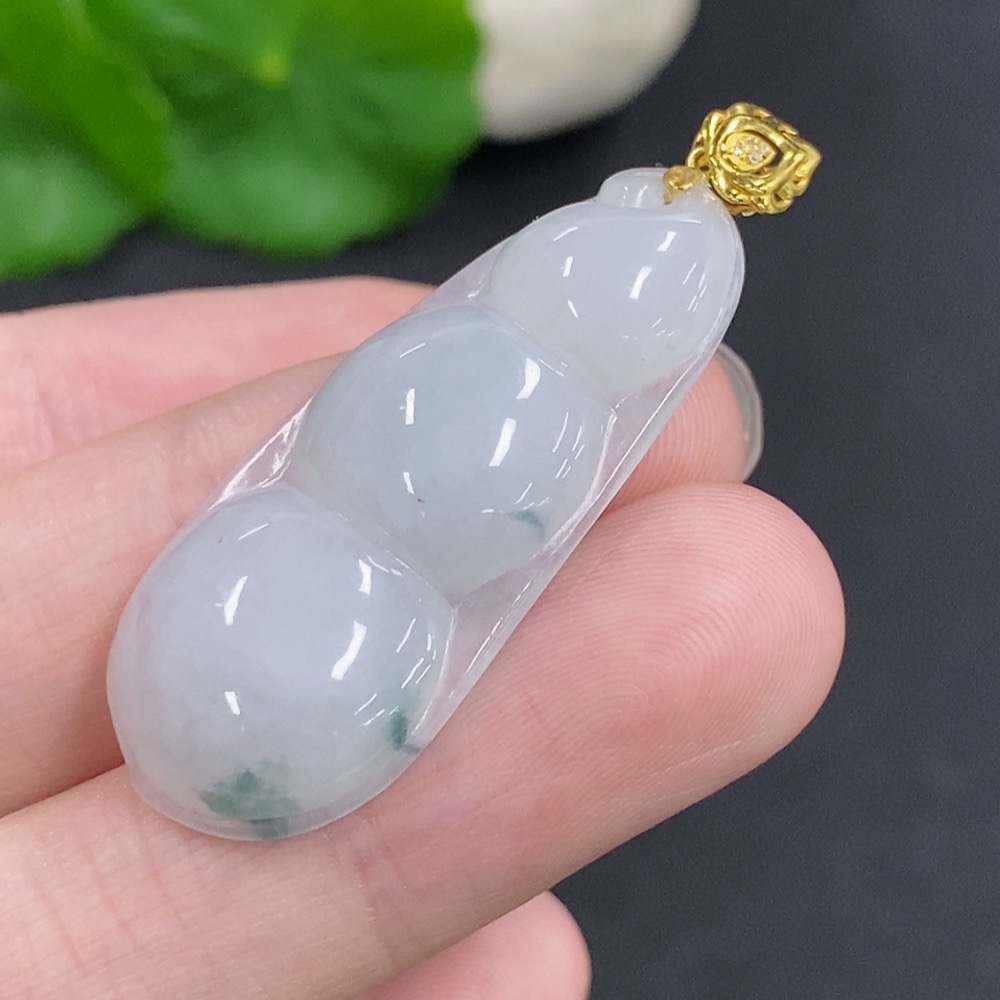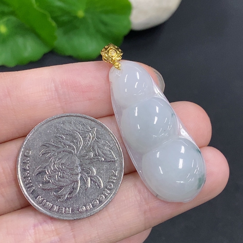 Jadeite Lucky Bean Pendant with 18K Gold Clasp, Total Weight Approximately 5.3g, Non-Diamond