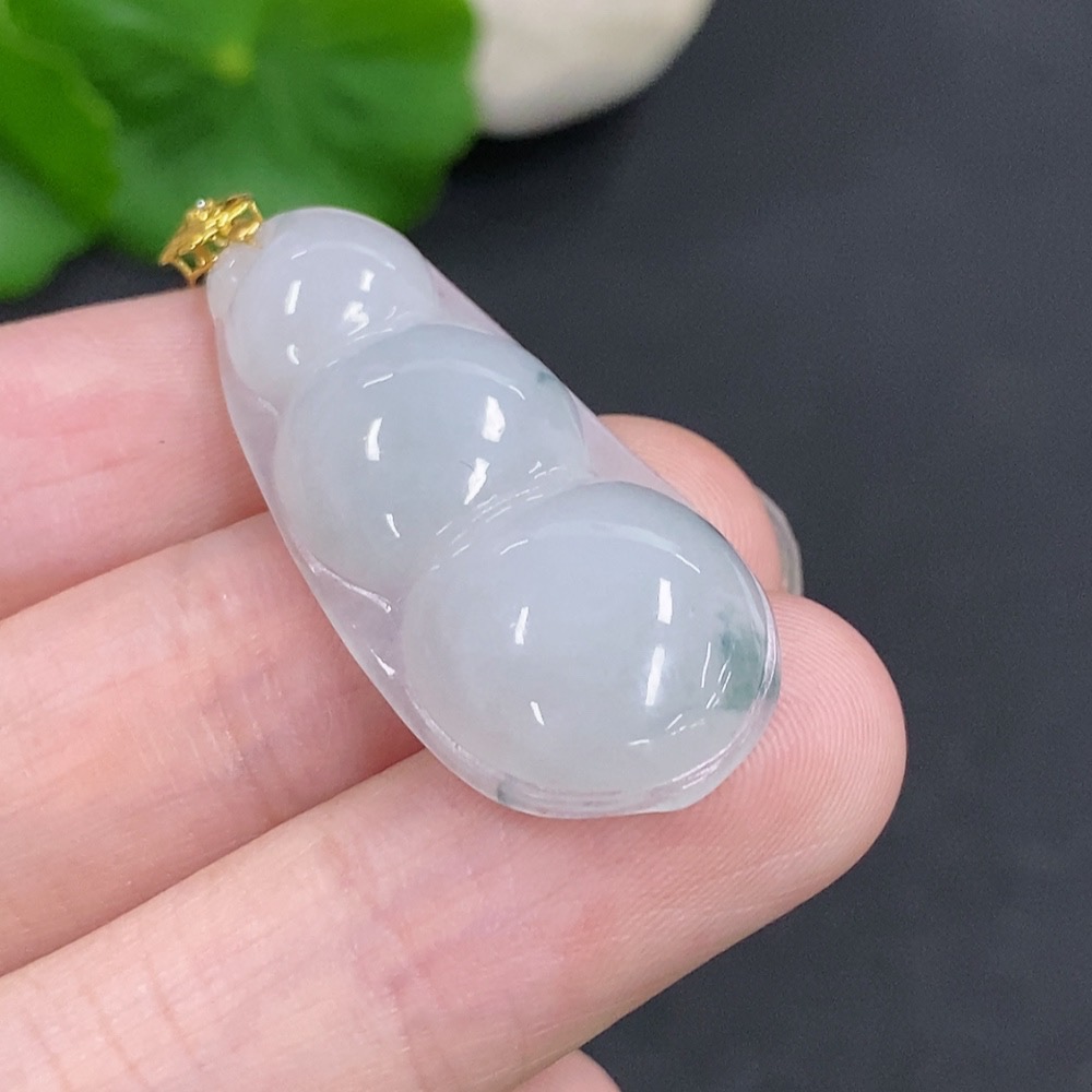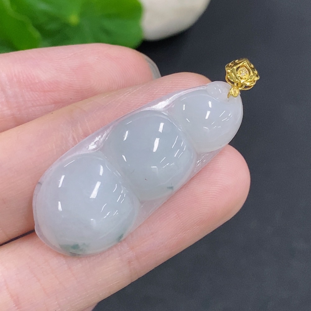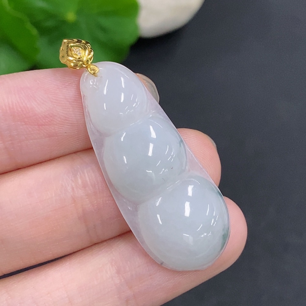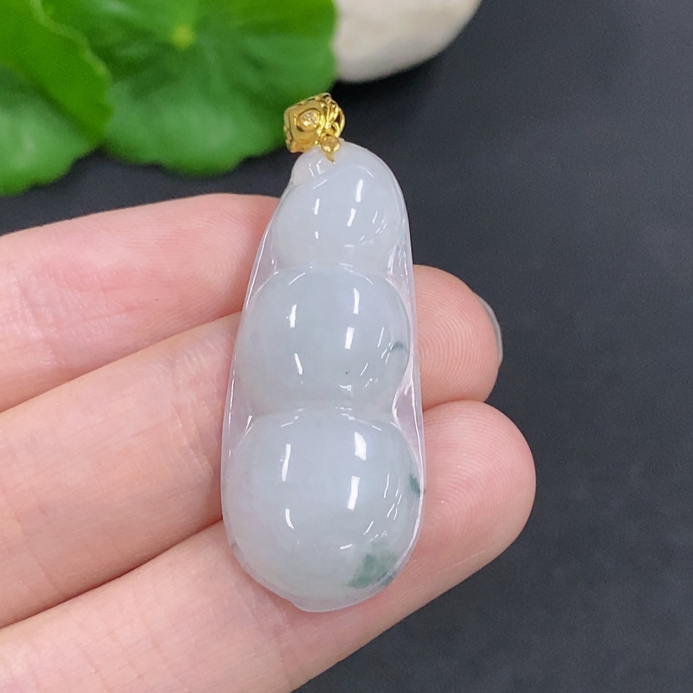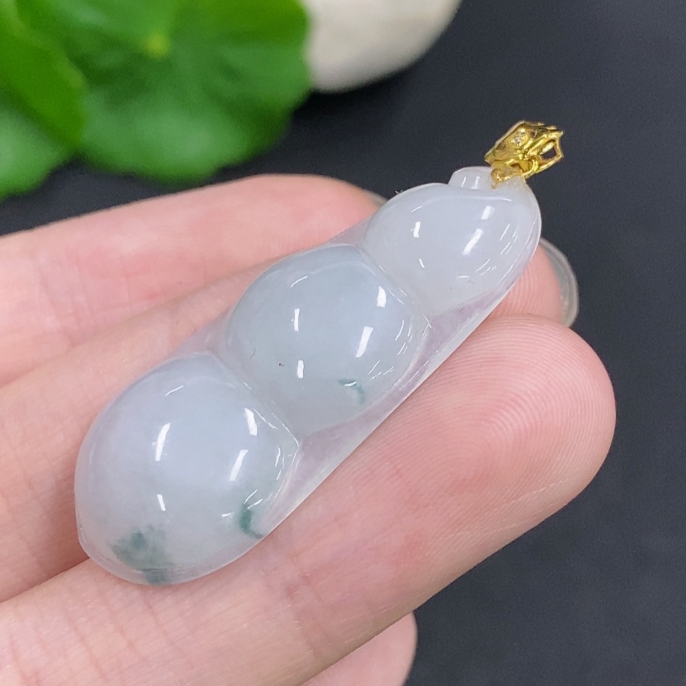Jadeite Lucky Bean Pendant with 18K Gold Clasp, Total Weight Approximately 5.3g, Non-Diamond