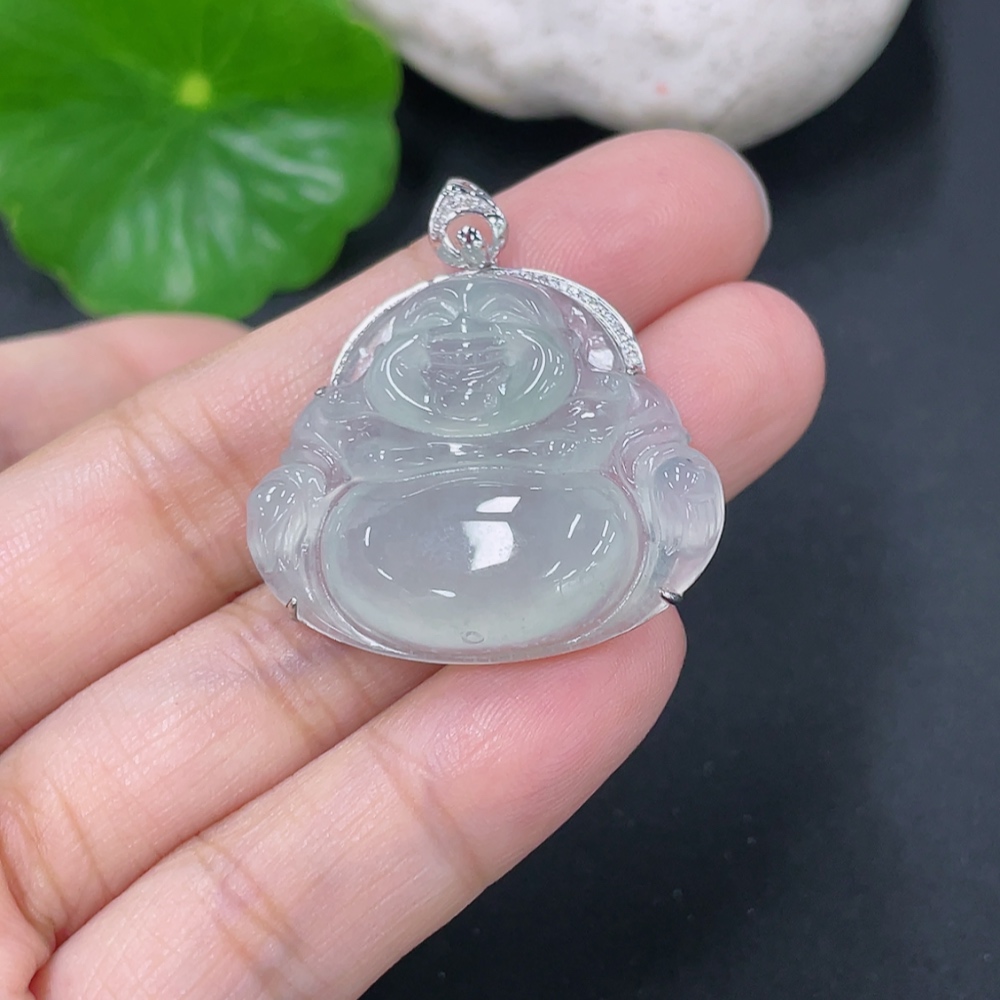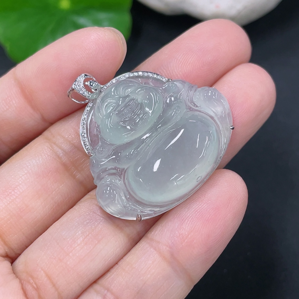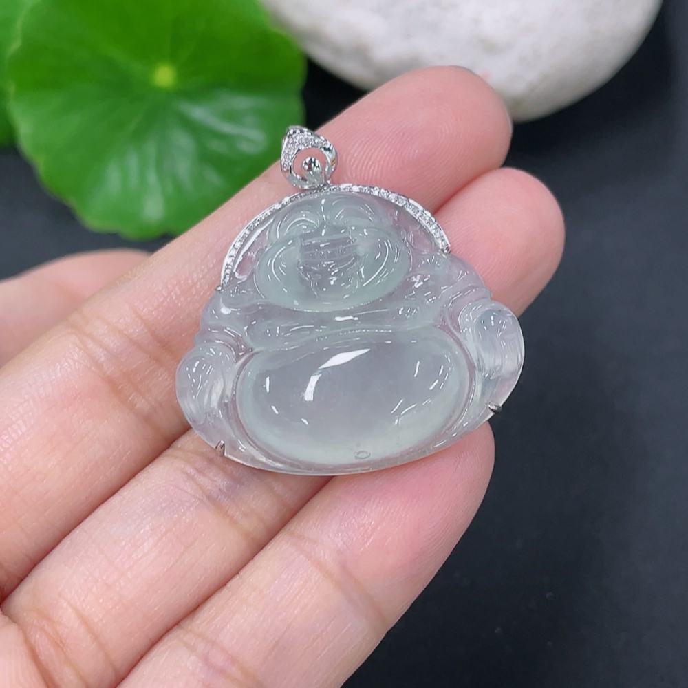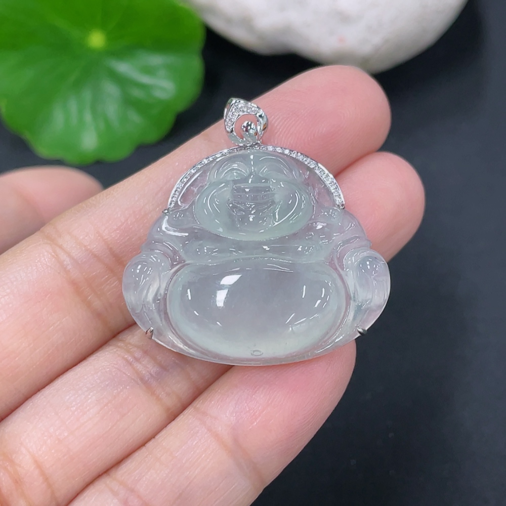 Jadeite Buddha Pendant, 18K Gold Setting with Diamond Accents, Total Weight Approx. 6.75g
