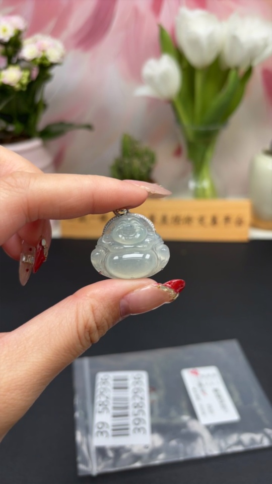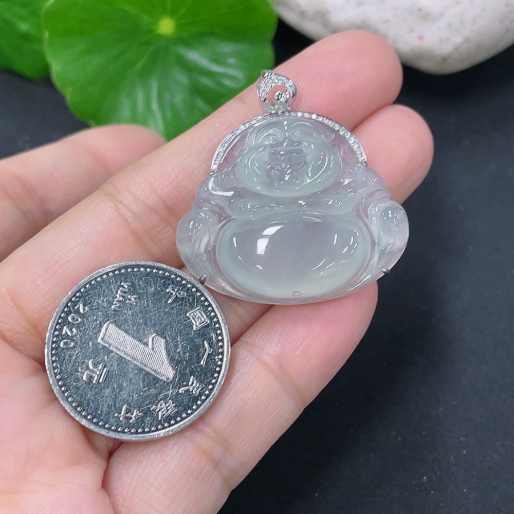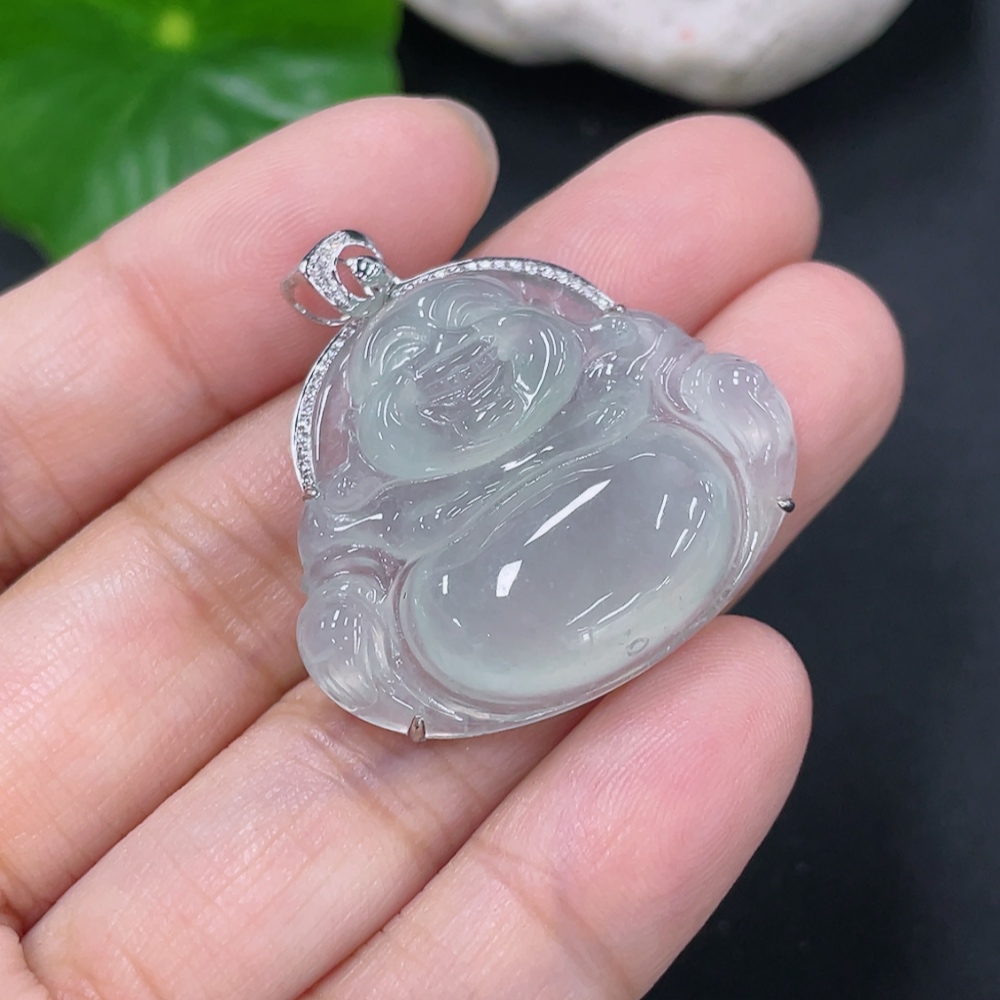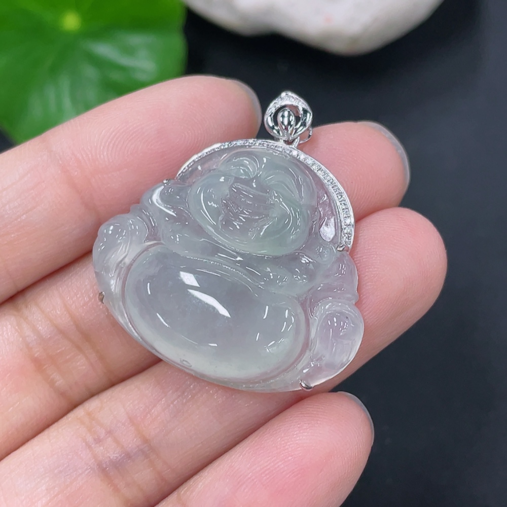 Jadeite Buddha Pendant, 18K Gold Setting with Diamond Accents, Total Weight Approx. 6.75g