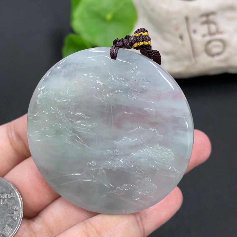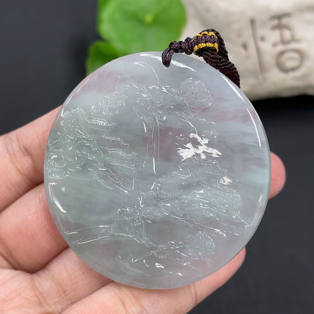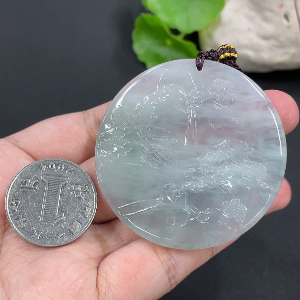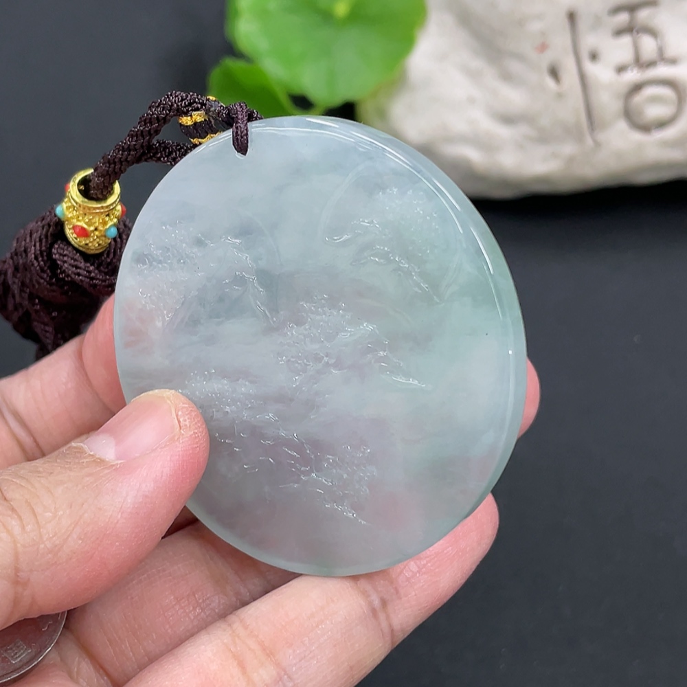 Jadeite Landscape Pendant, Total Weight Approximately 40g