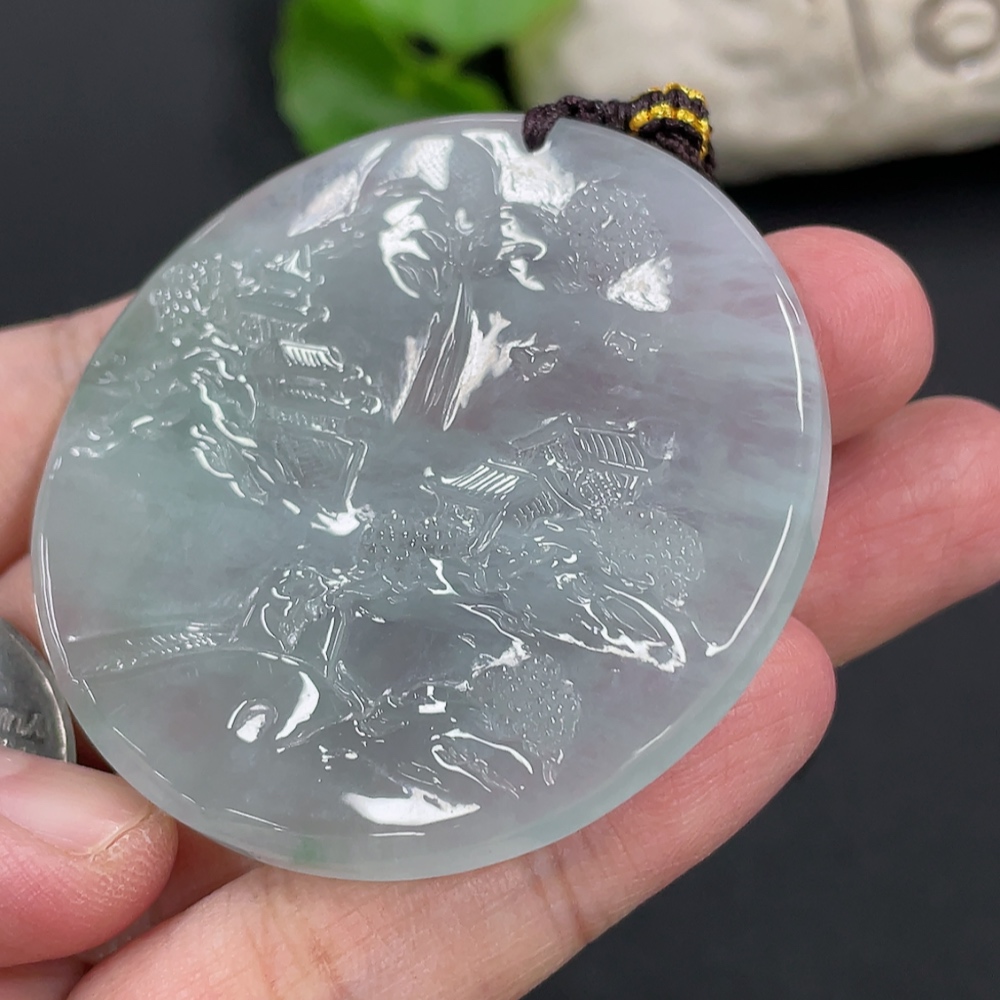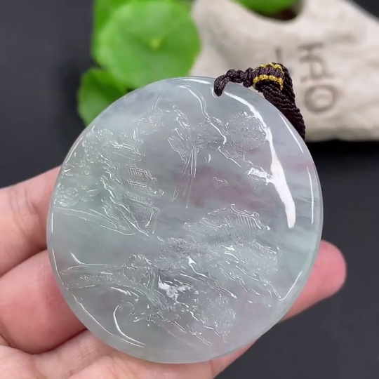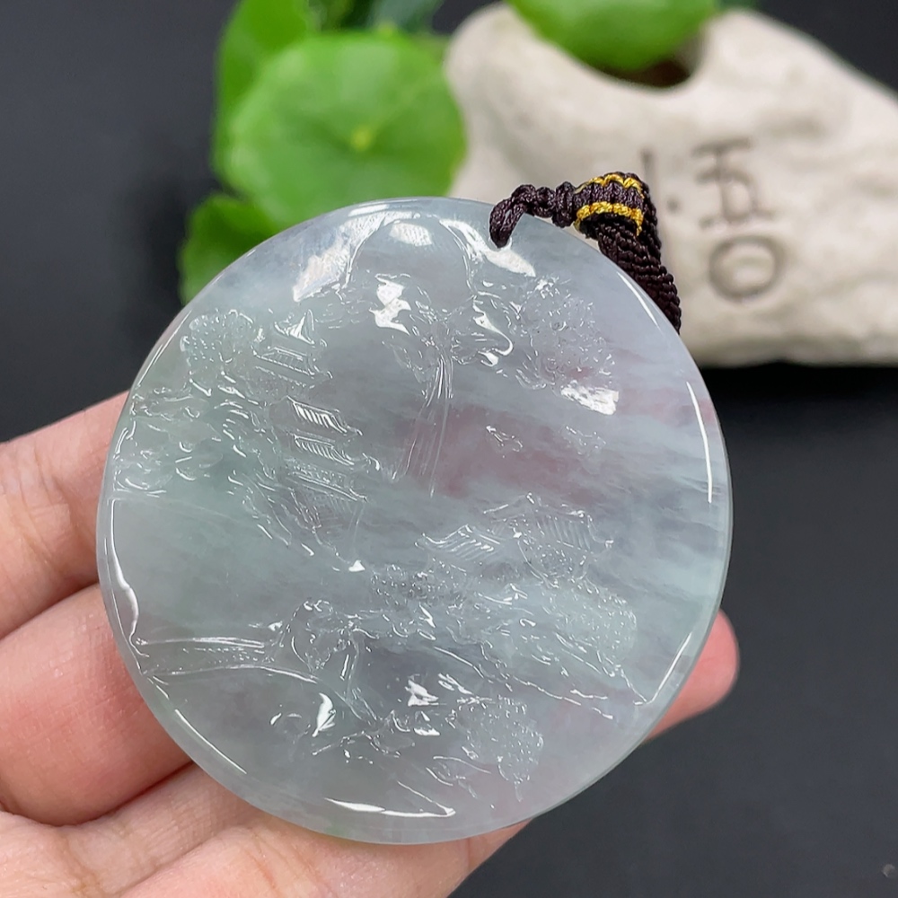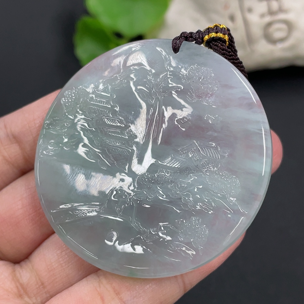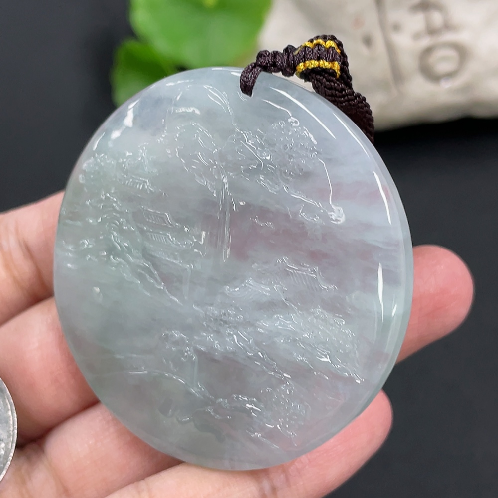 Jadeite Landscape Pendant, Total Weight Approximately 40g
