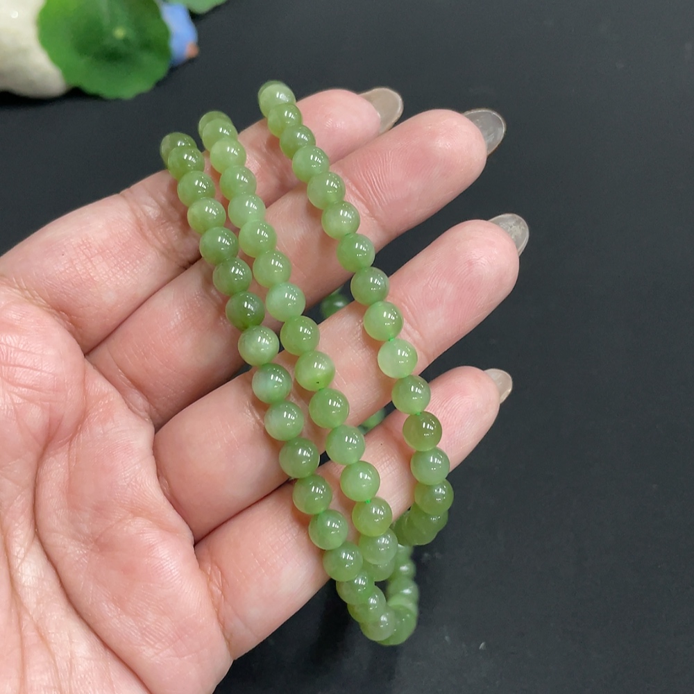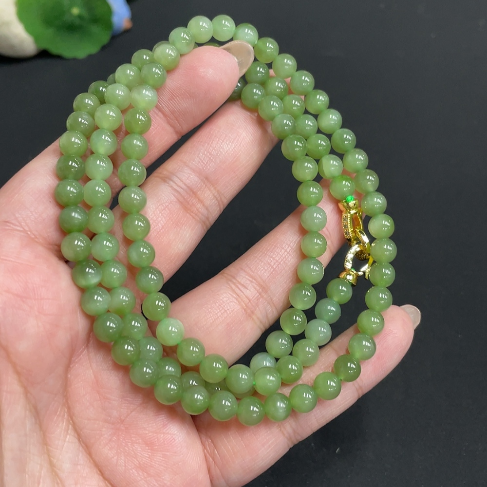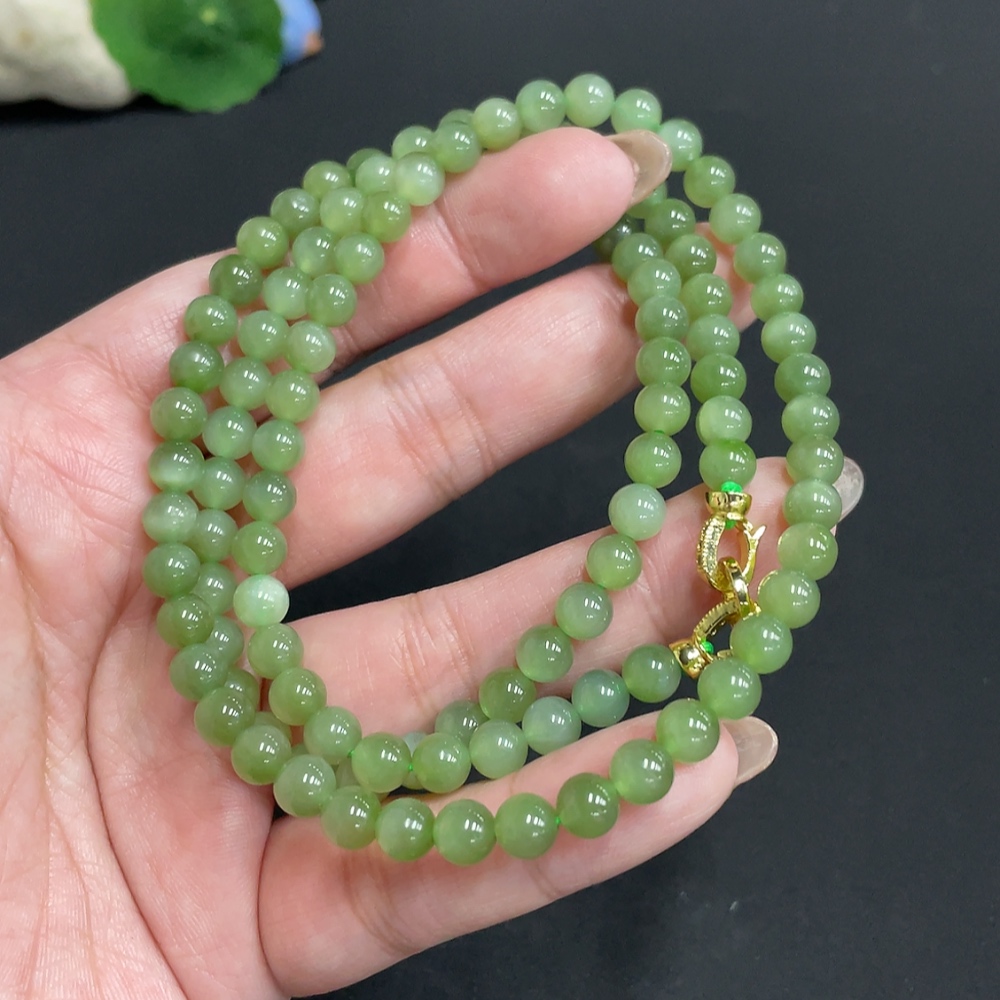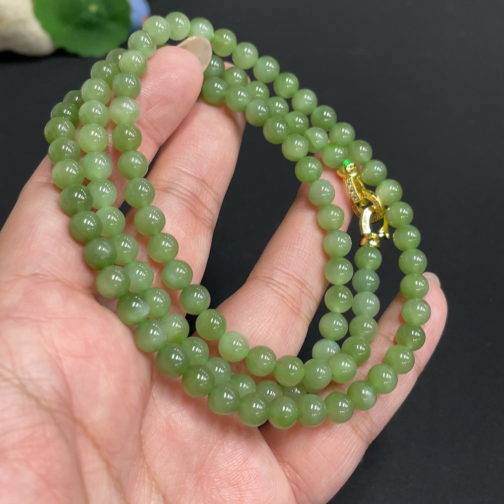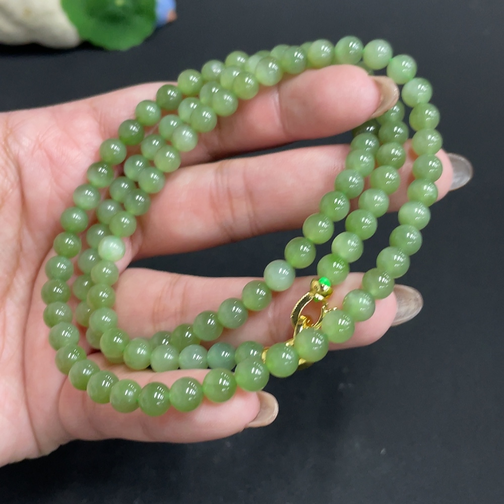 Hetian Jade Beaded Necklace 5.7mm approx. Non-gold Total Weight approx. 37.8g