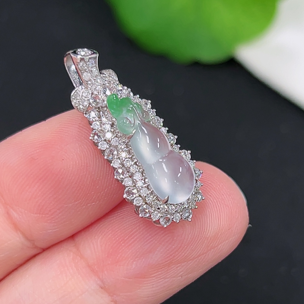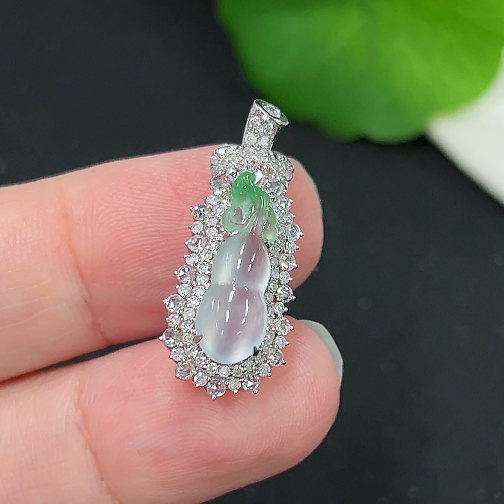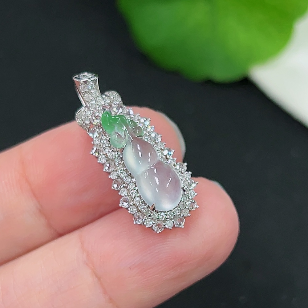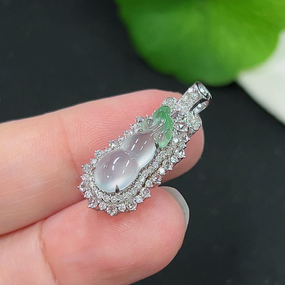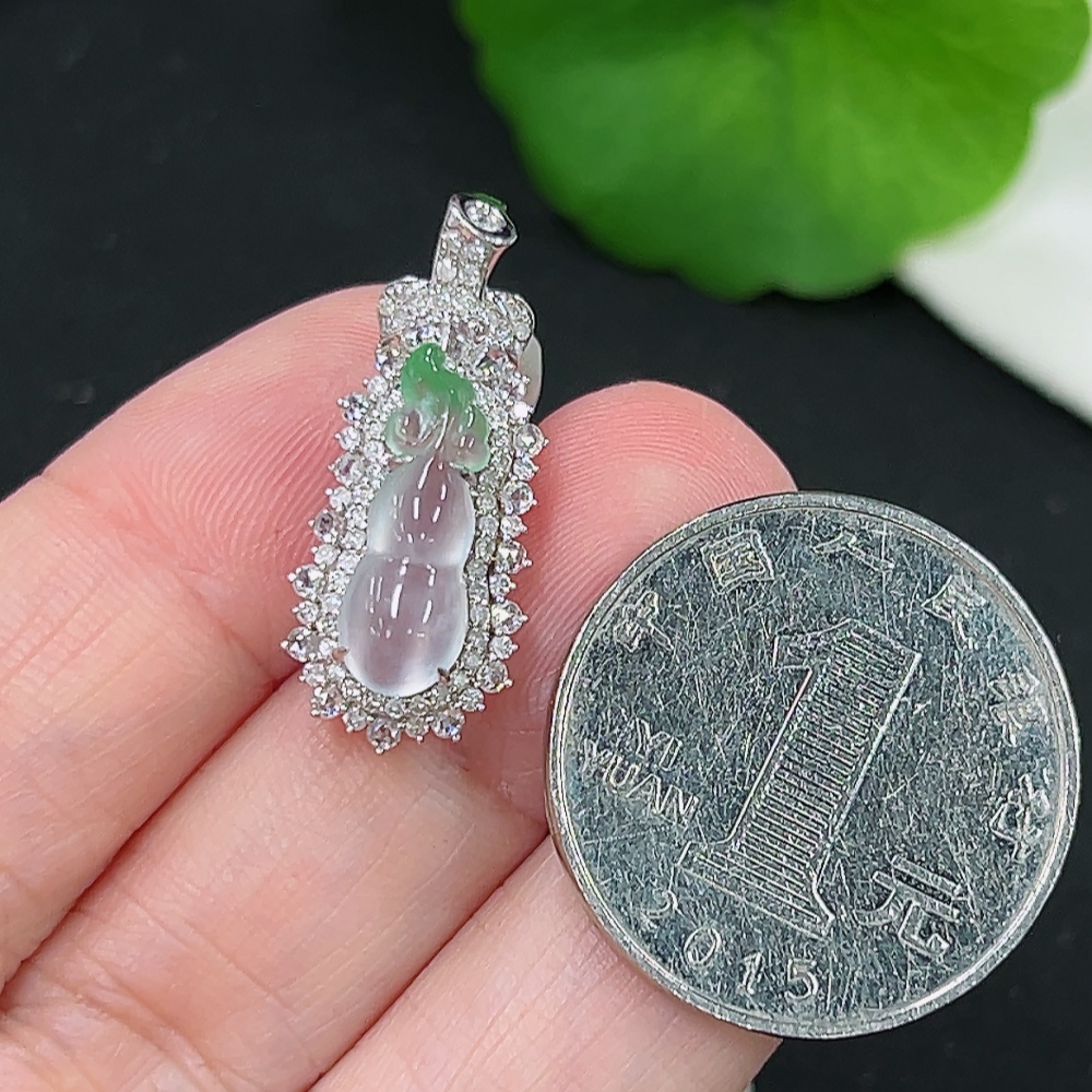 Jadeite gourd inlaid pendant 18K gold total weight about 2.4g (with diamond inlay)