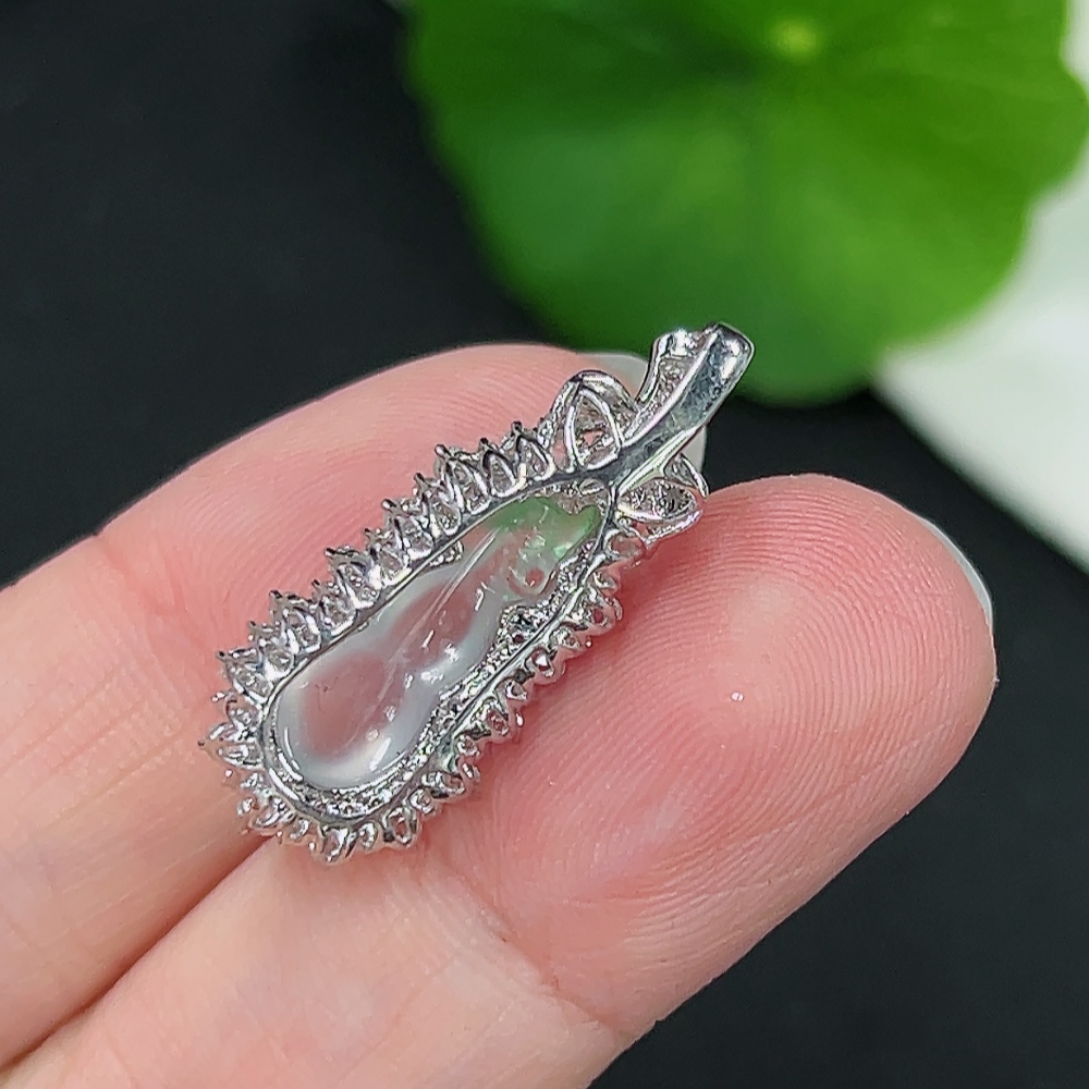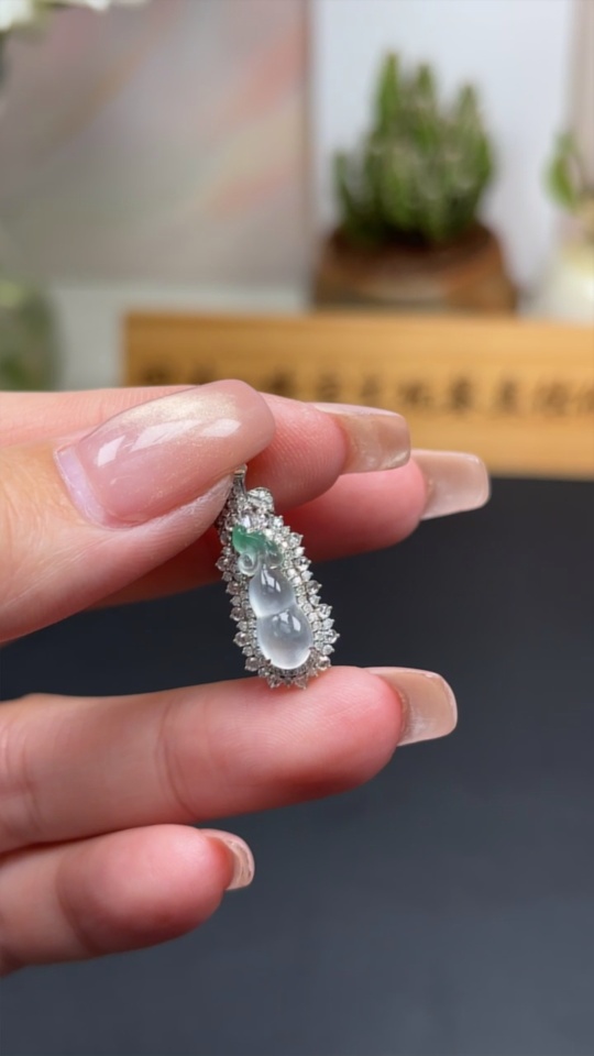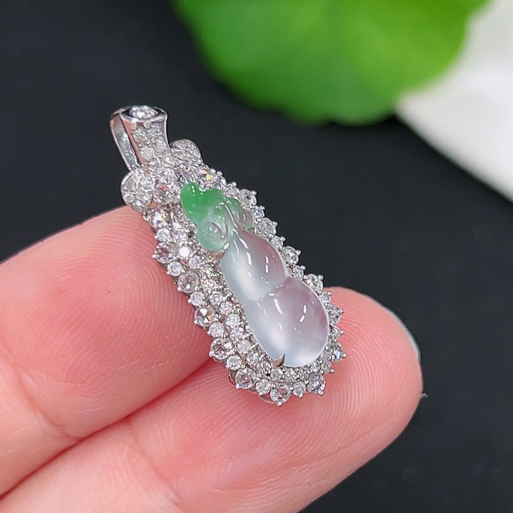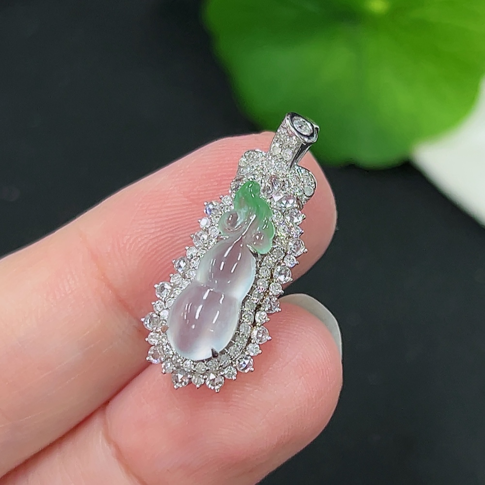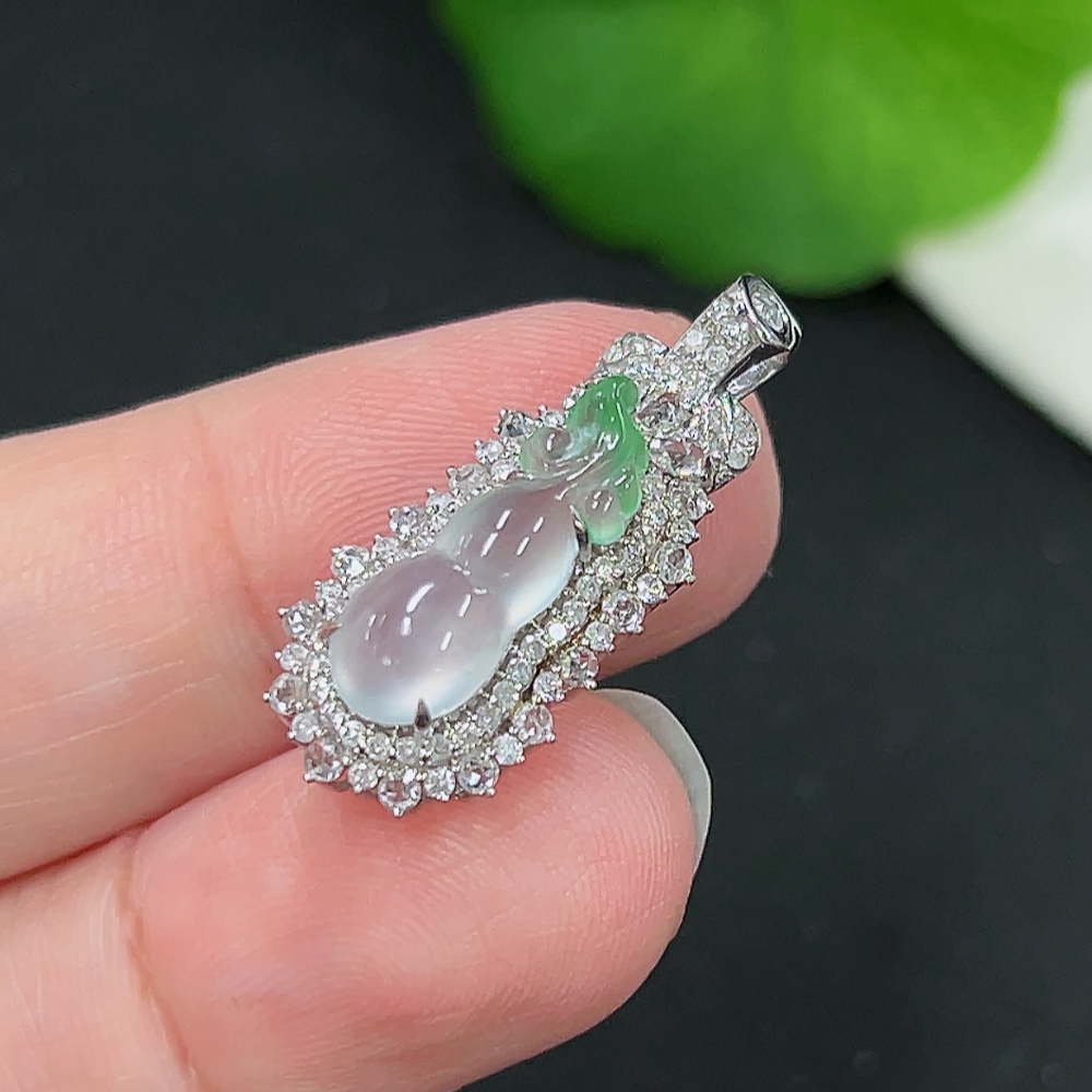 Jadeite gourd inlaid pendant 18K gold total weight about 2.4g (with diamond inlay)