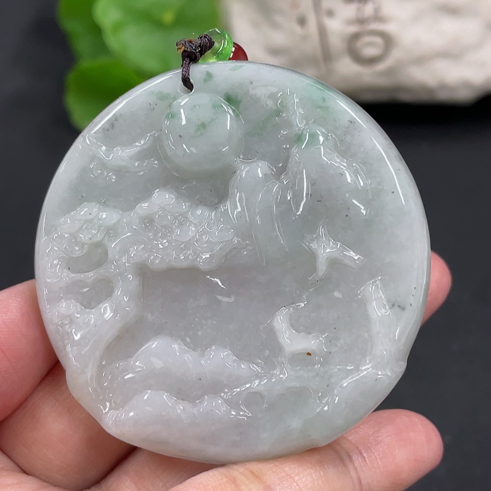Jadeite Landscape Pendant Total Weight Approx. 39.68g