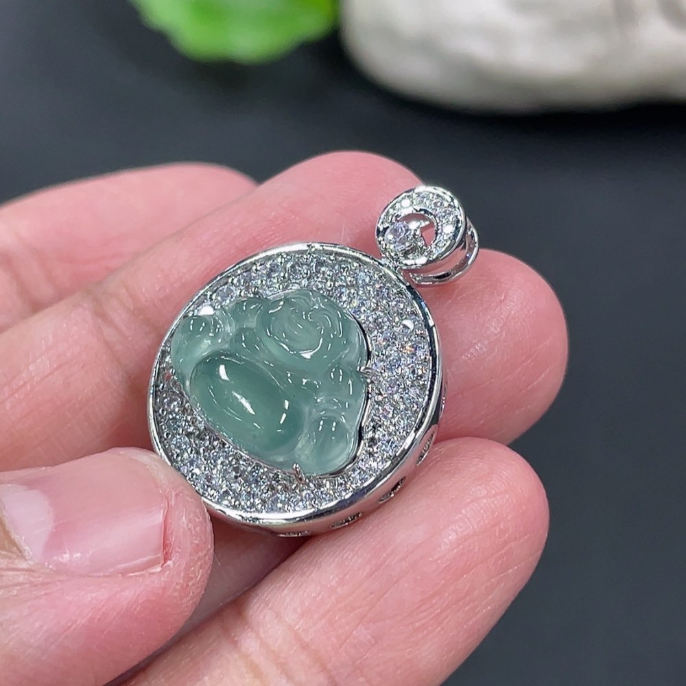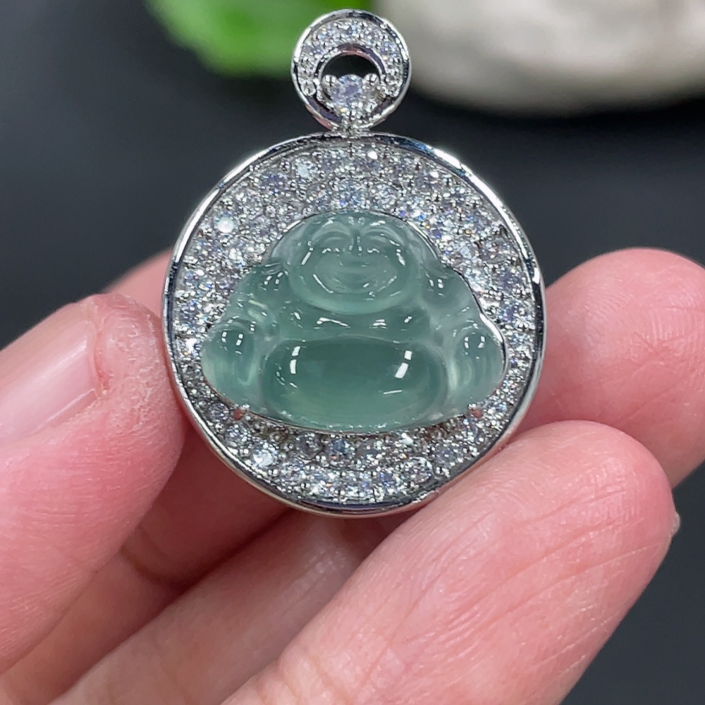 Jadeite Buddha Pendant Total Weight Approx. 5.5g (Non-Gold Inlaid)