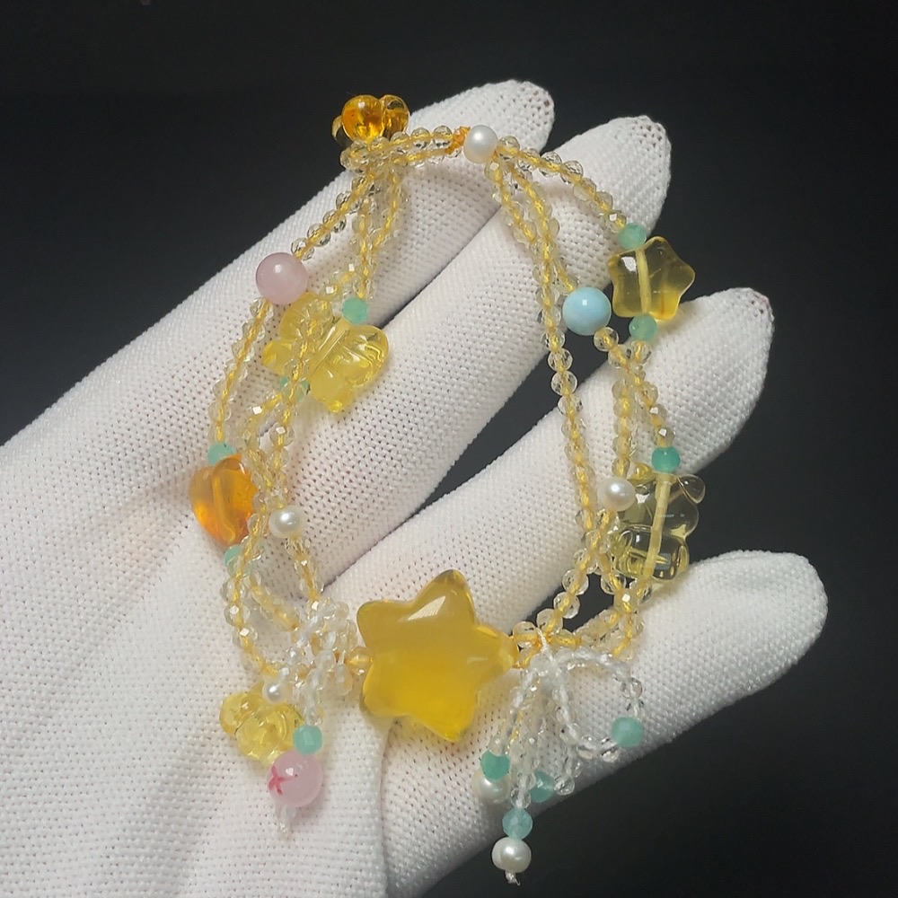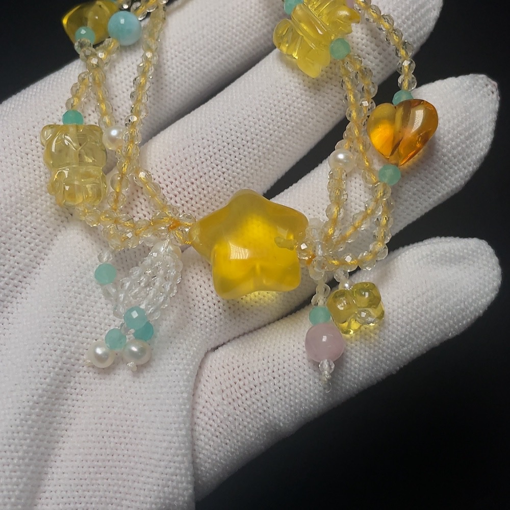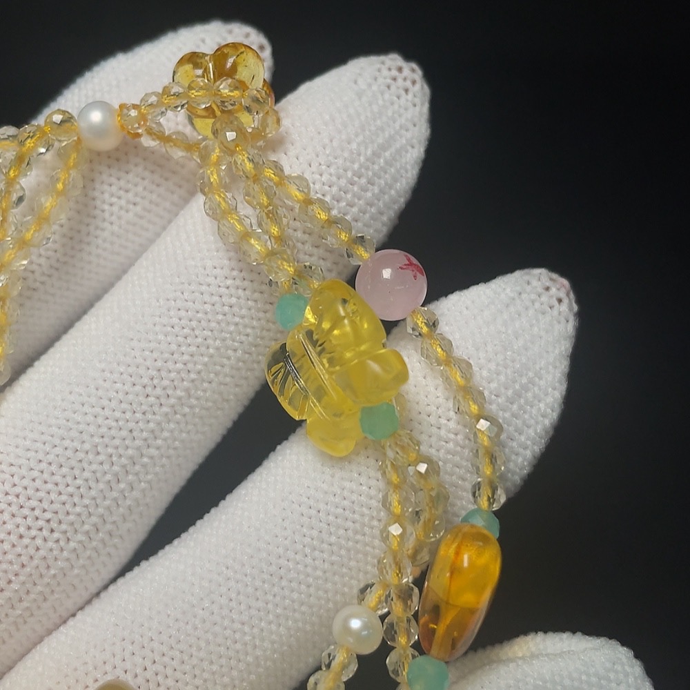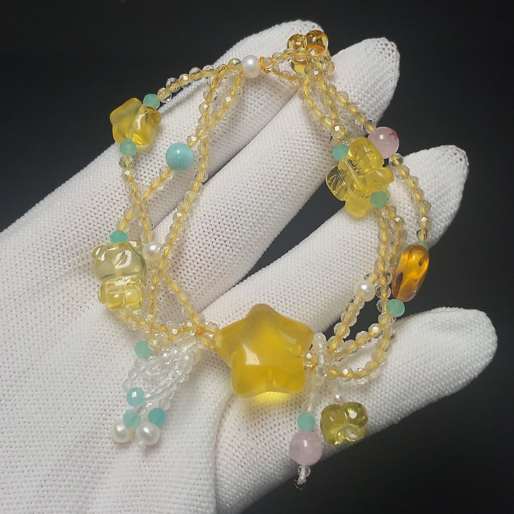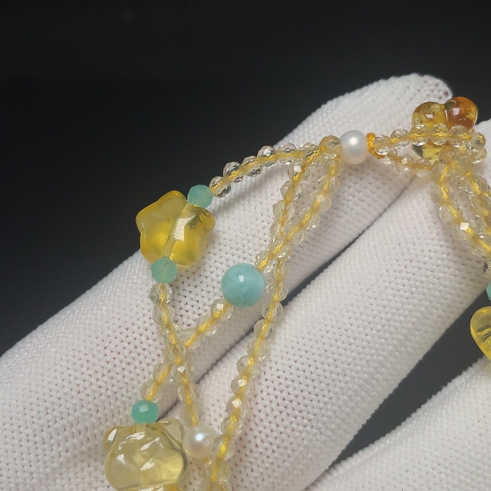 Amber Beeswax Bracelet with Pearl, Crystal, Larimar, Colorless Film Coating, Non-Natural Stones Considered, Total Weight Approx. 12g, Size 18.3mm