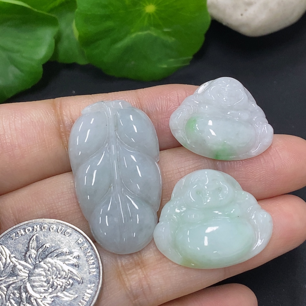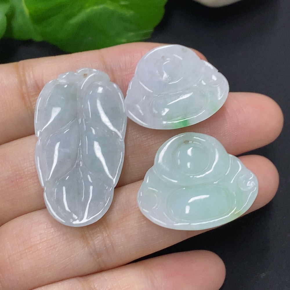 Jadeite Buddha with Leaf Pendant Sell as a Lot
