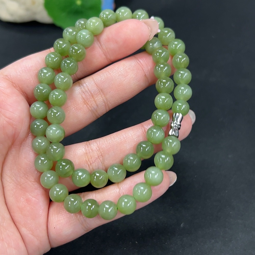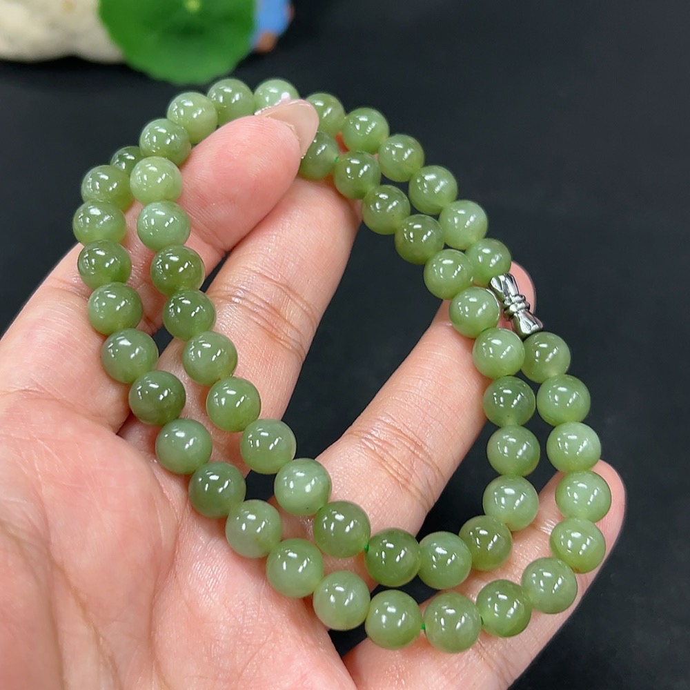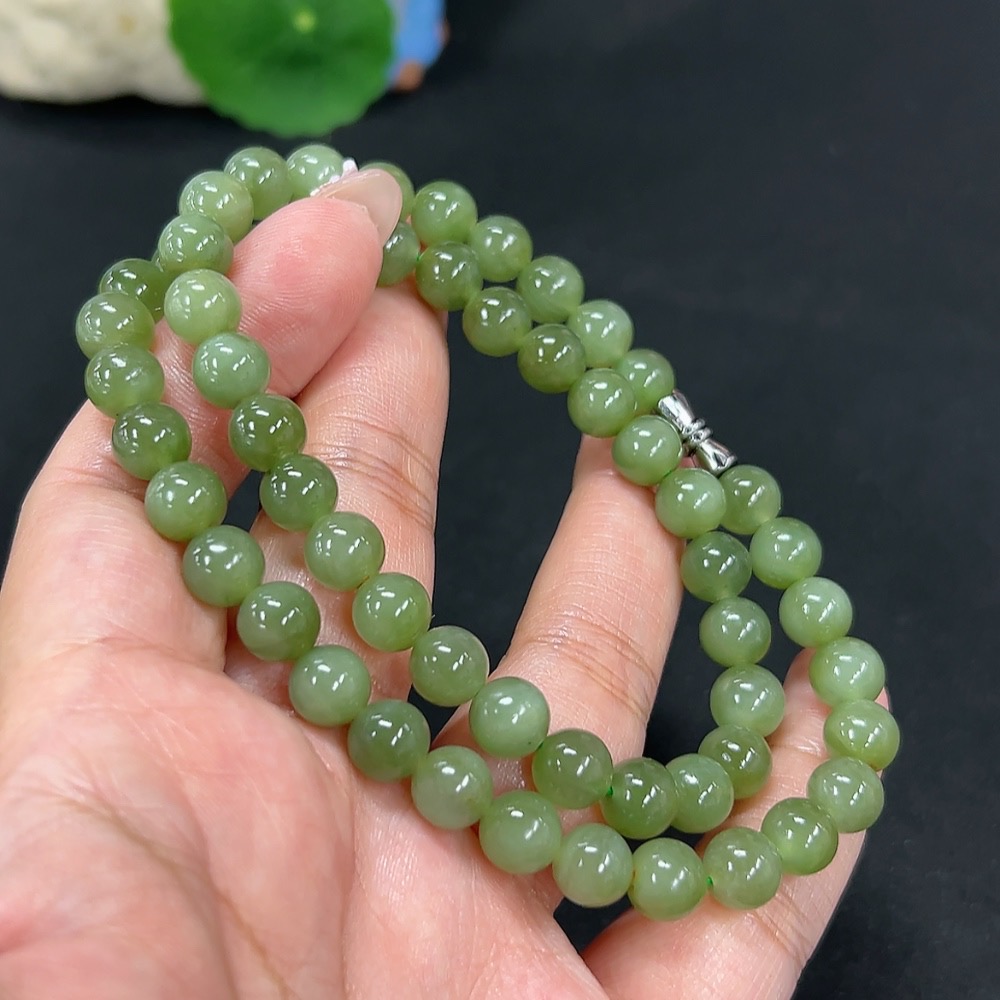 Hetian Jade Bead Strand, approximately 7.7mm, total weight about 42.6g