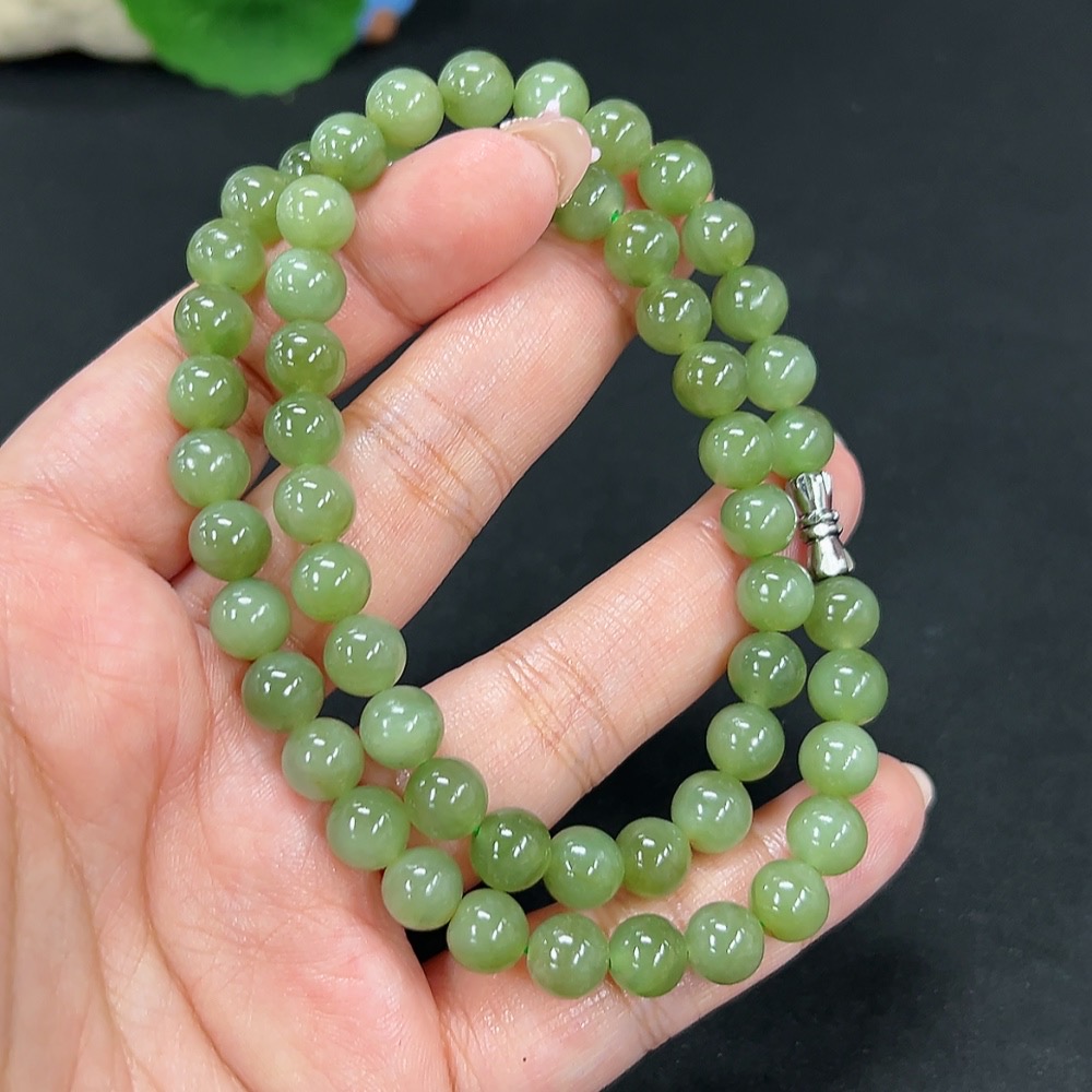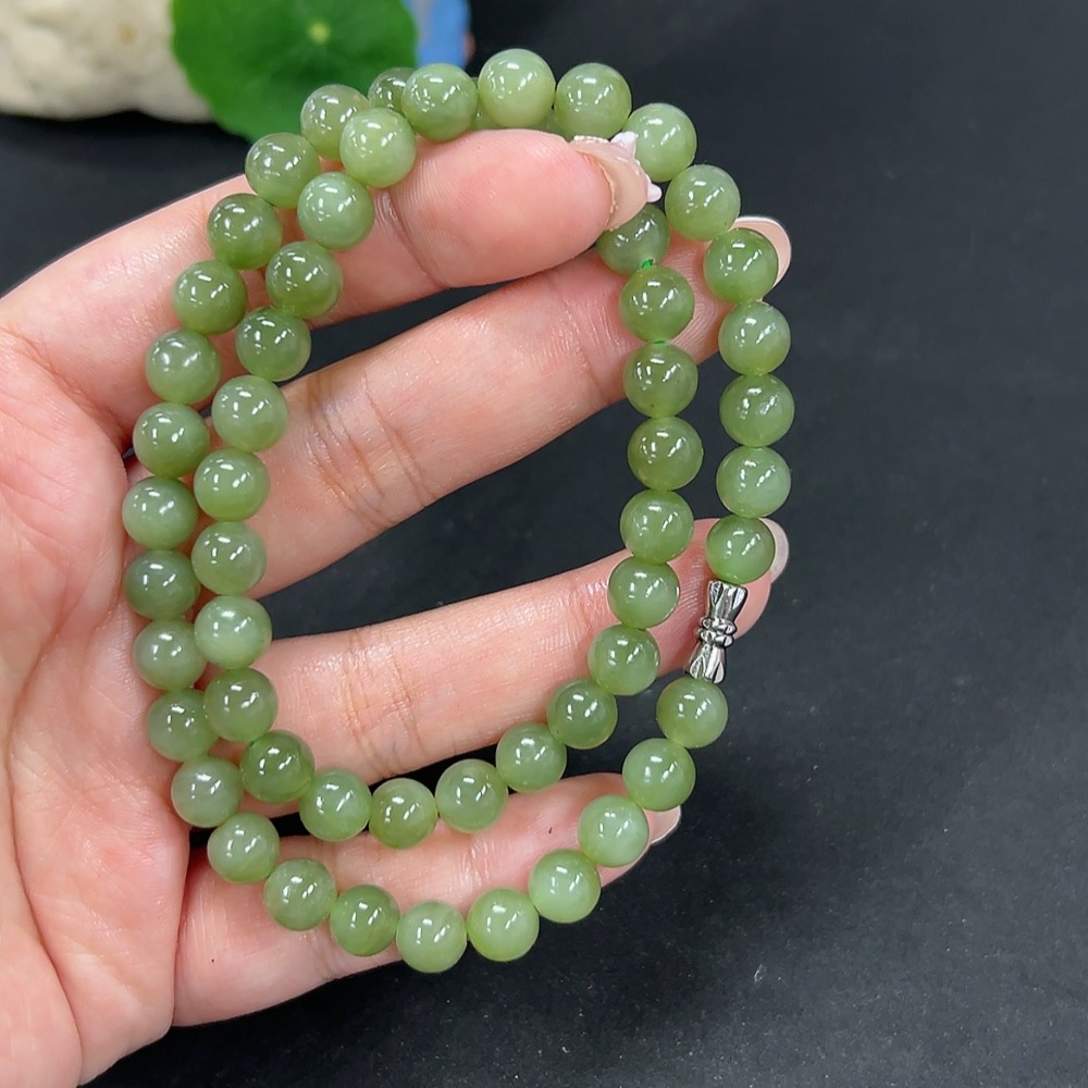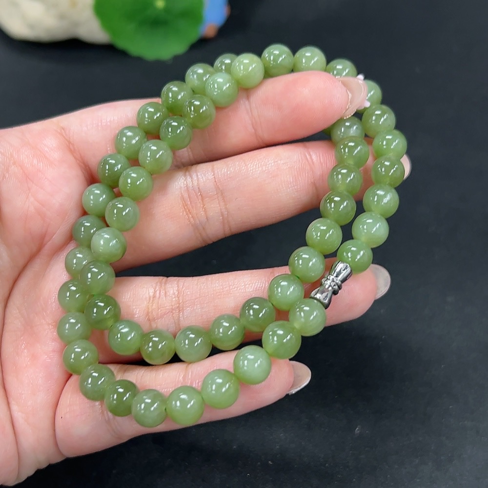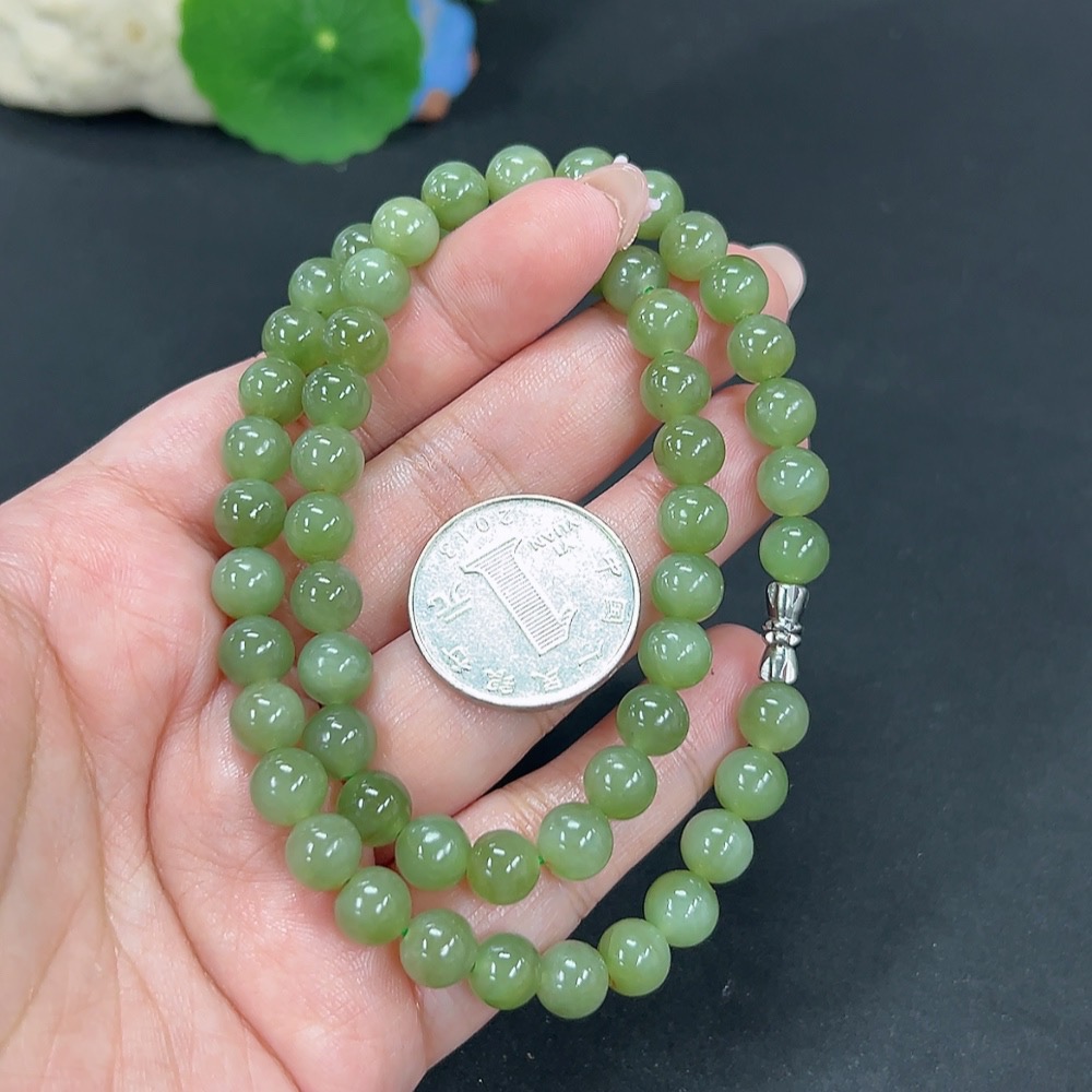 Hetian Jade Bead Strand, approximately 7.7mm, total weight about 42.6g