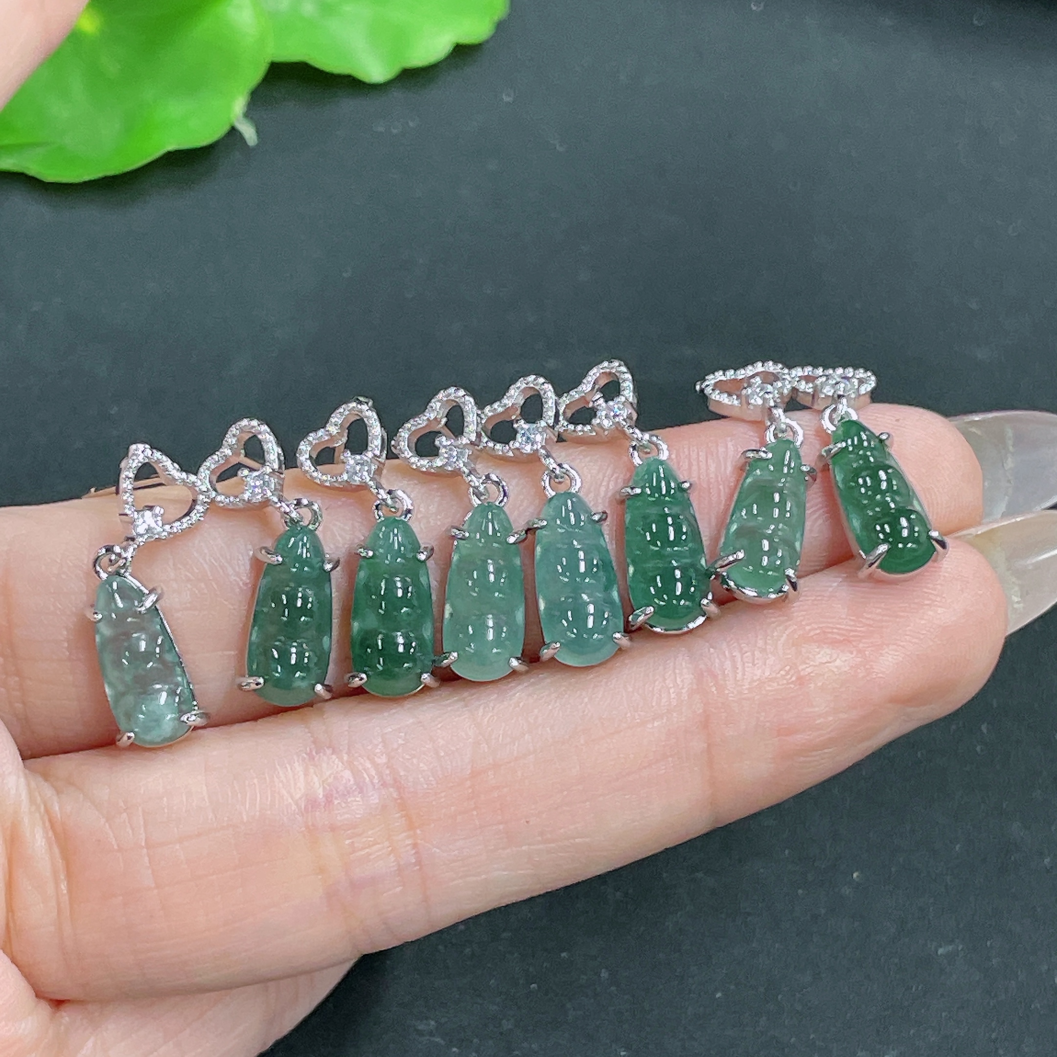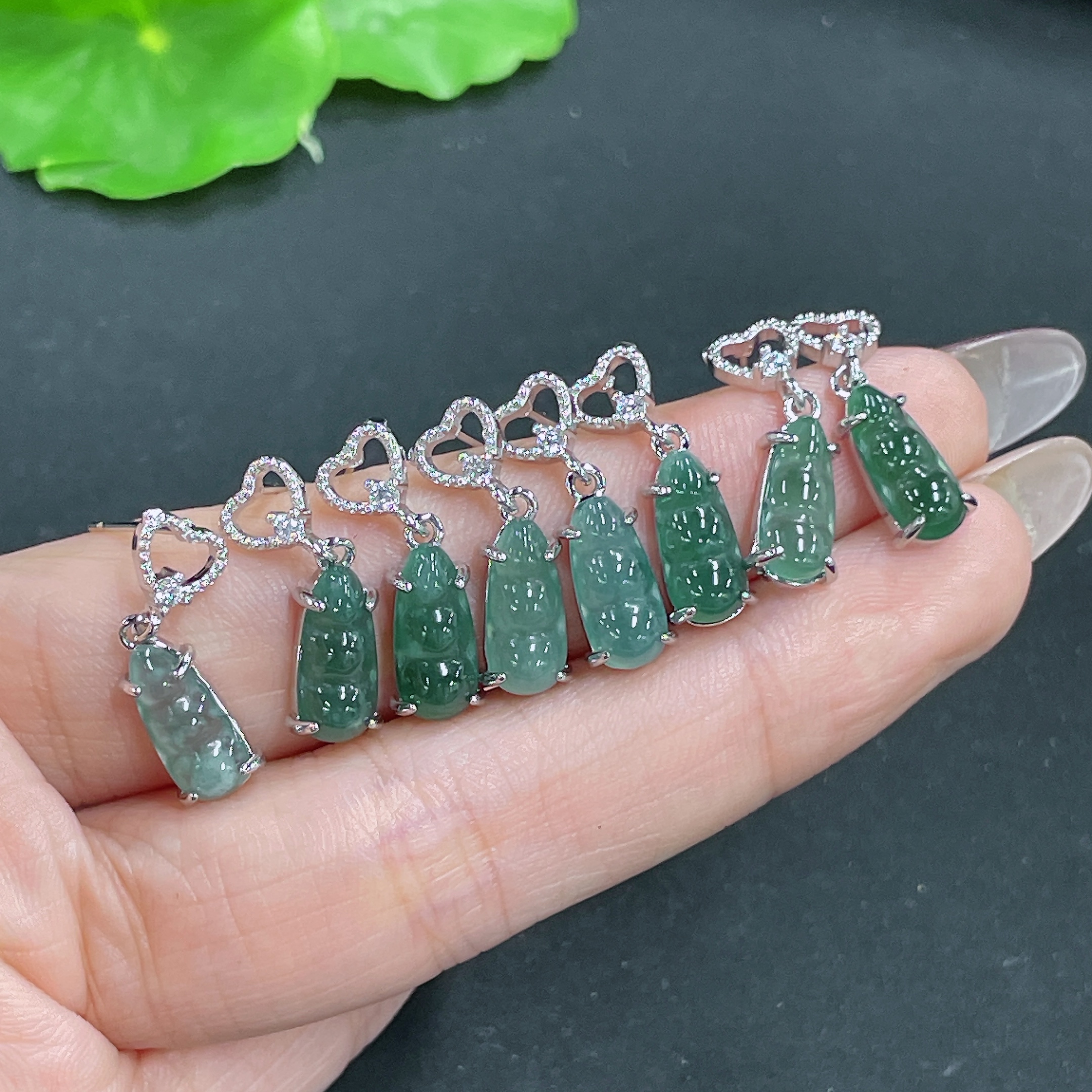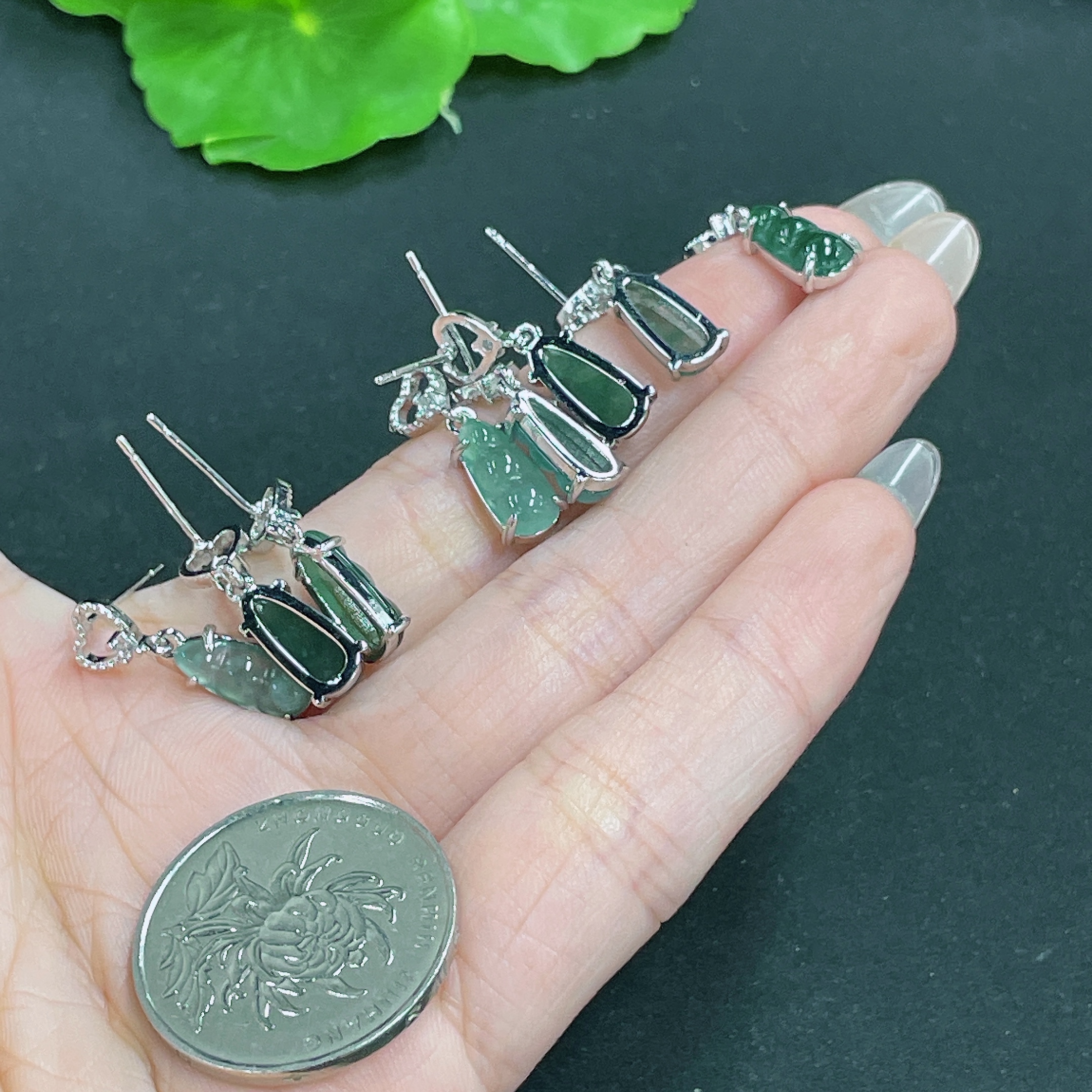 Jadeite Inlaid Earrings Non-Gold Sell as a Lot Total Weight Approx. 7.45g