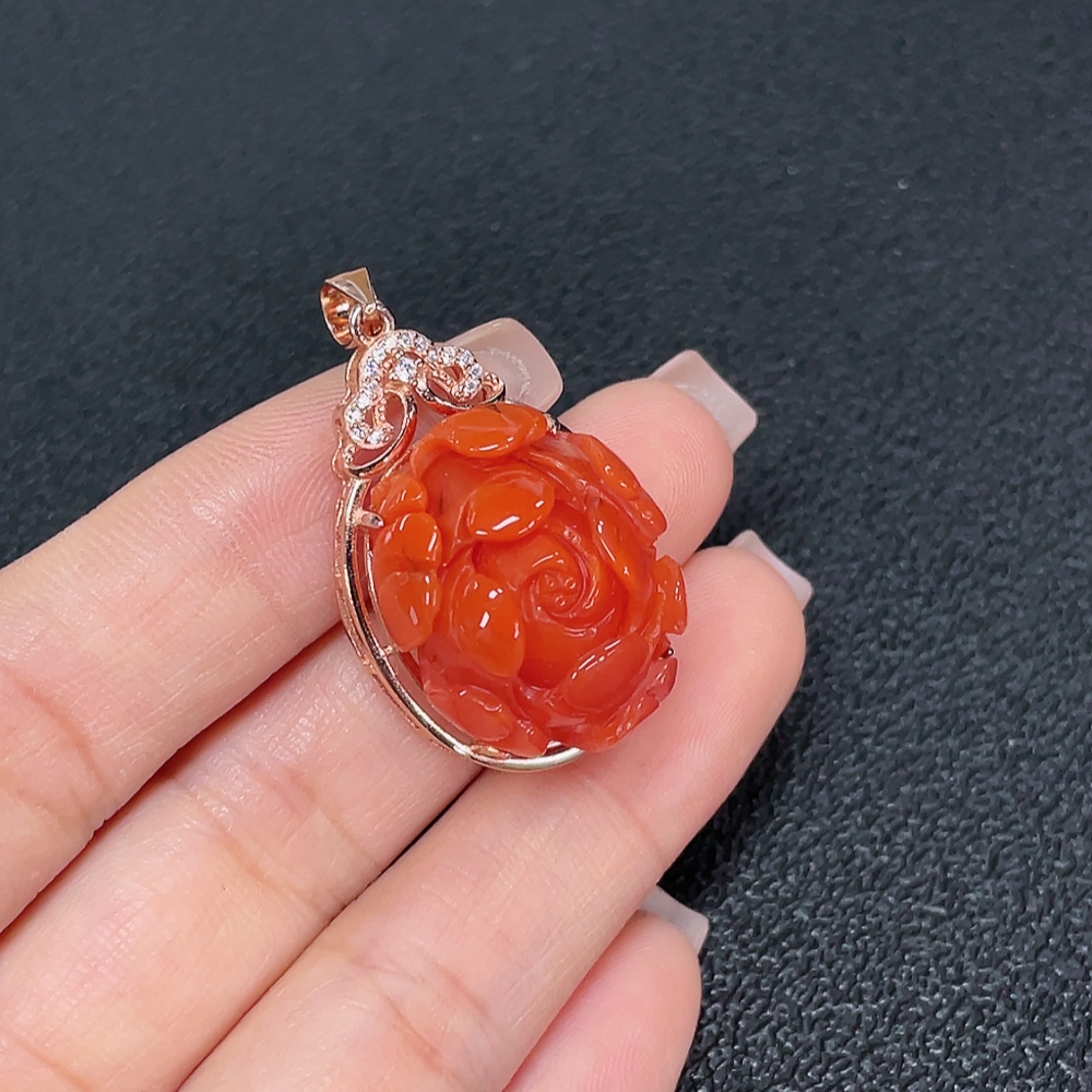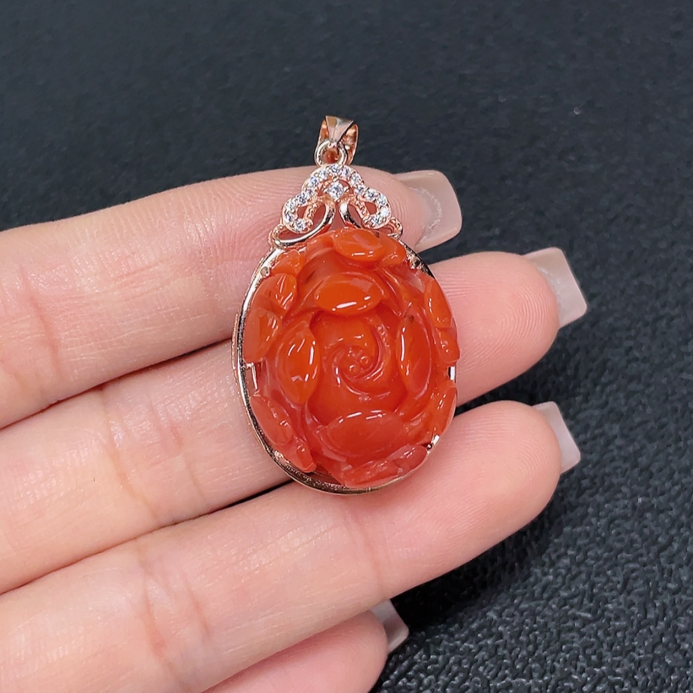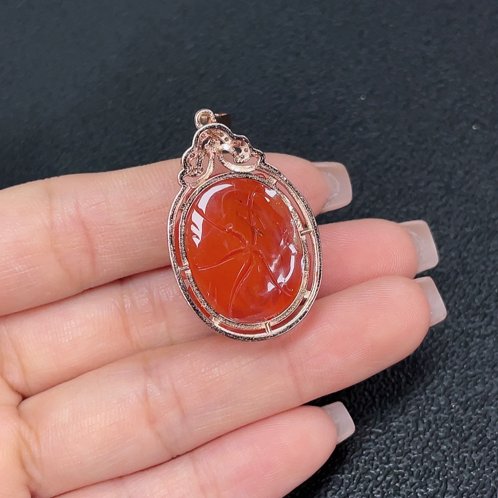 South Red Agate Pendant with Visible Organic Matter, Non-Gold, Total Weight Approximately 8.95g
