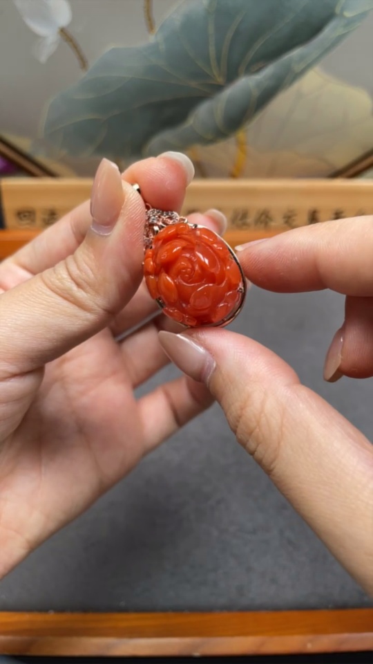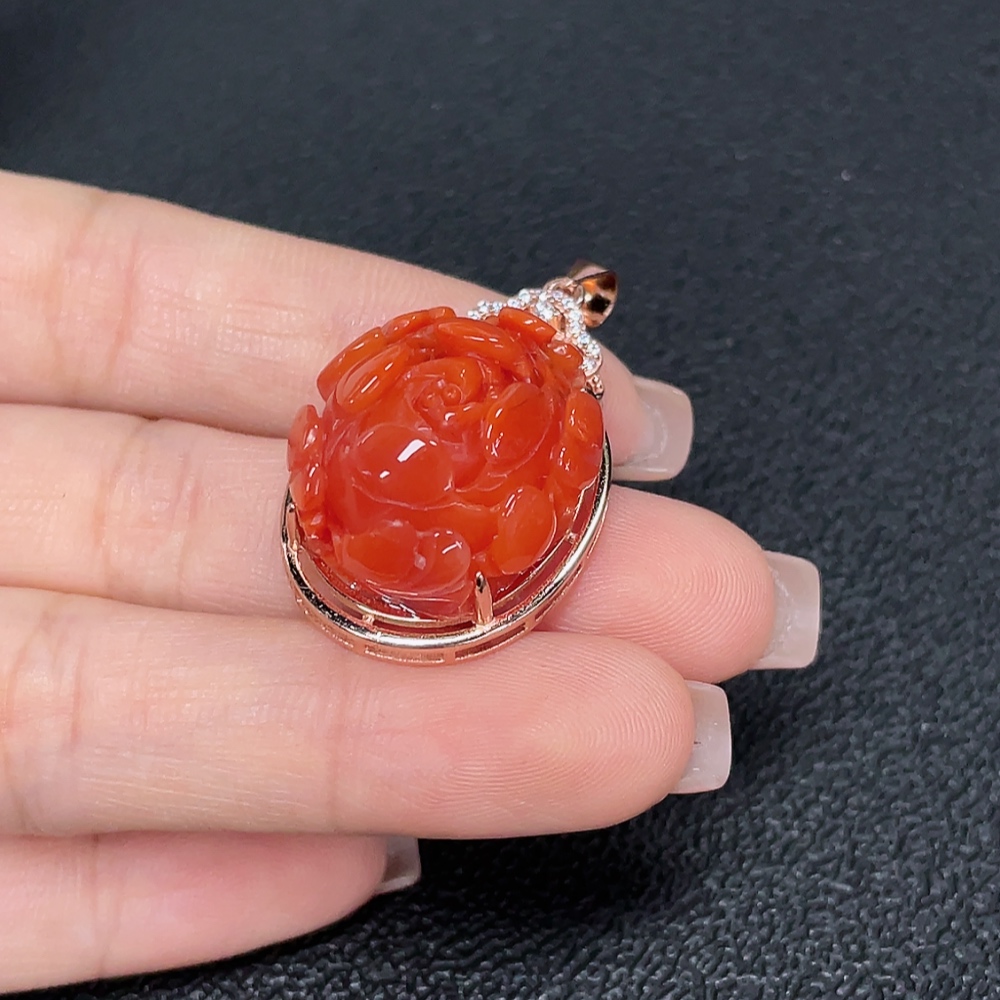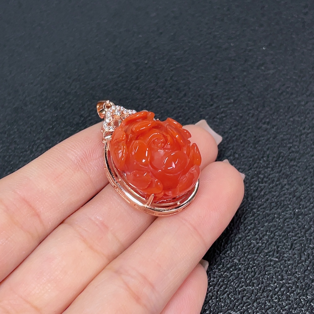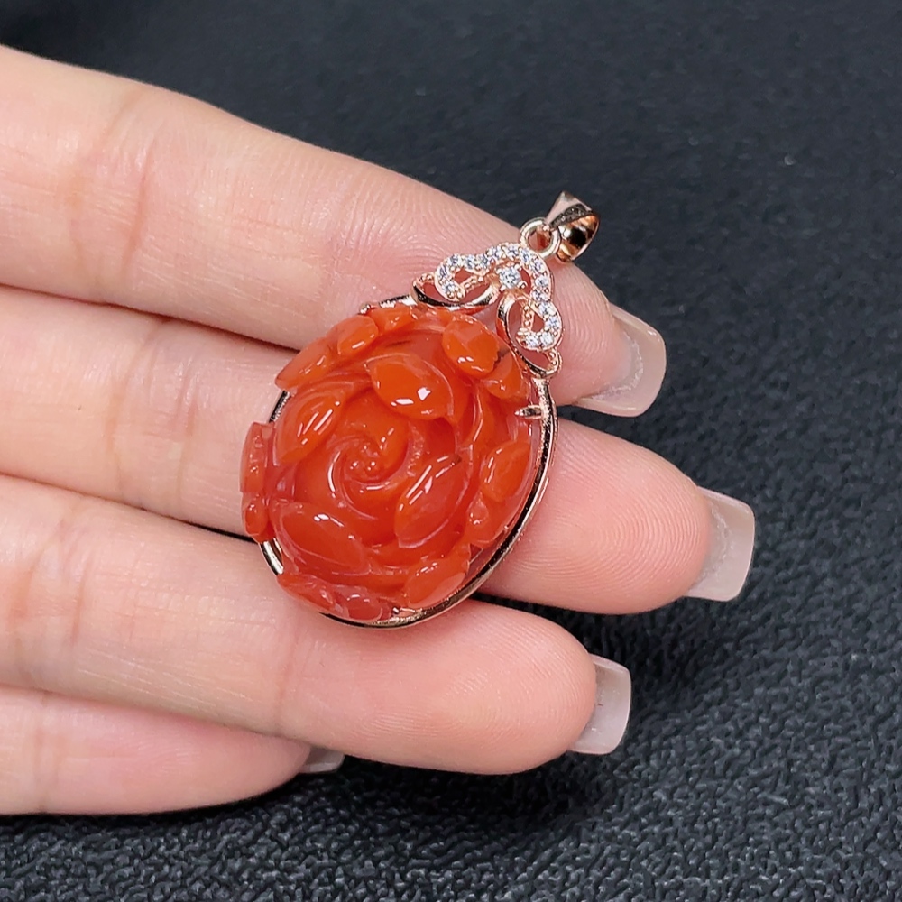 South Red Agate Pendant with Visible Organic Matter, Non-Gold, Total Weight Approximately 8.95g
