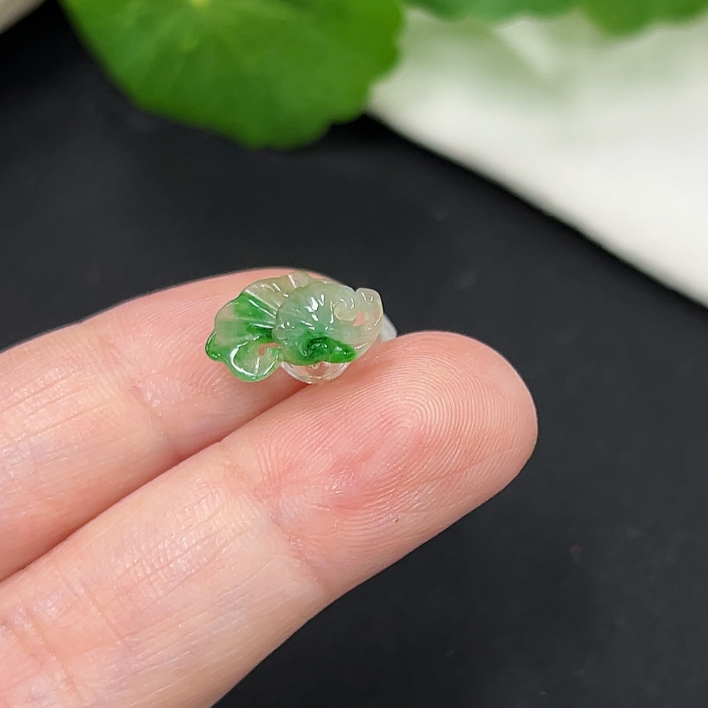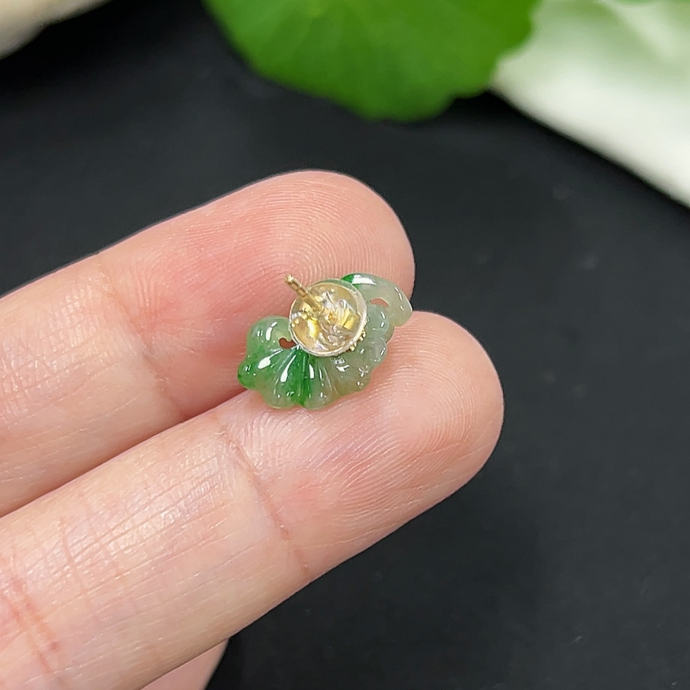 Jadeite earring with 18K gold mounting, total weight approximately 0.5g (including ear stopper weight)