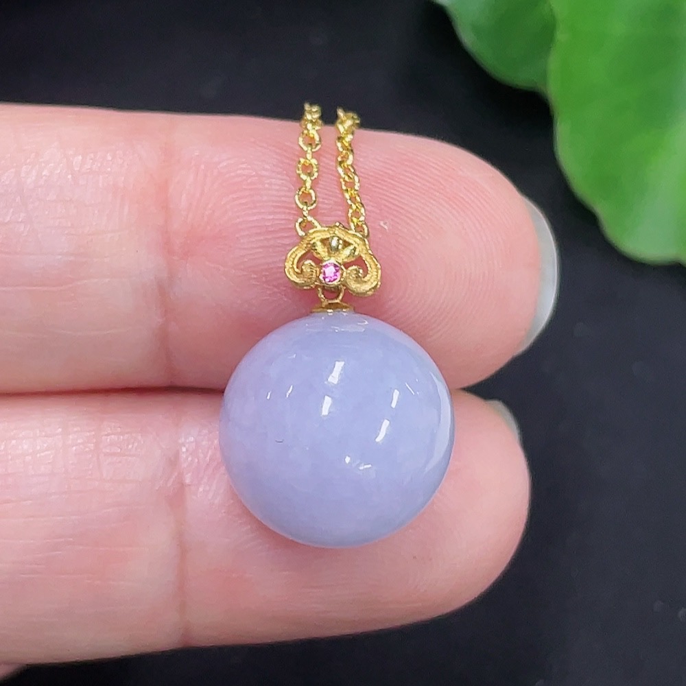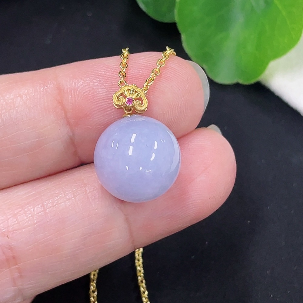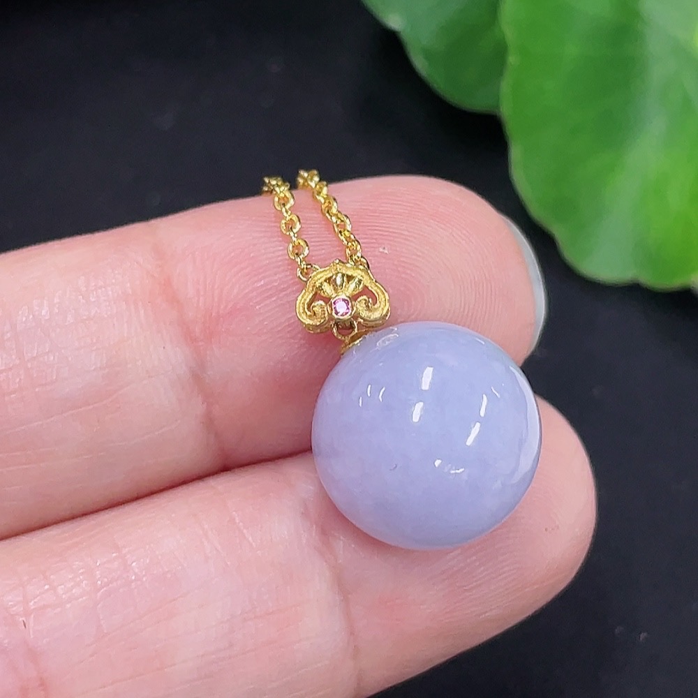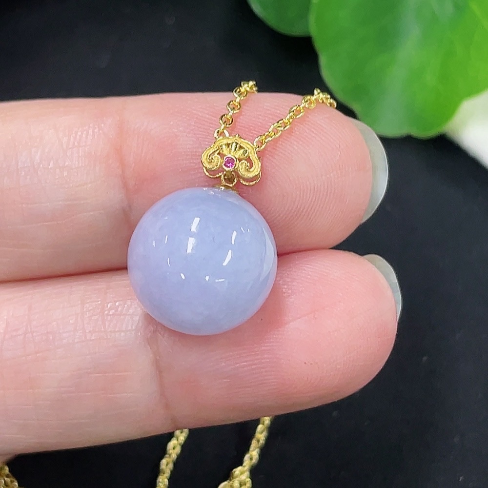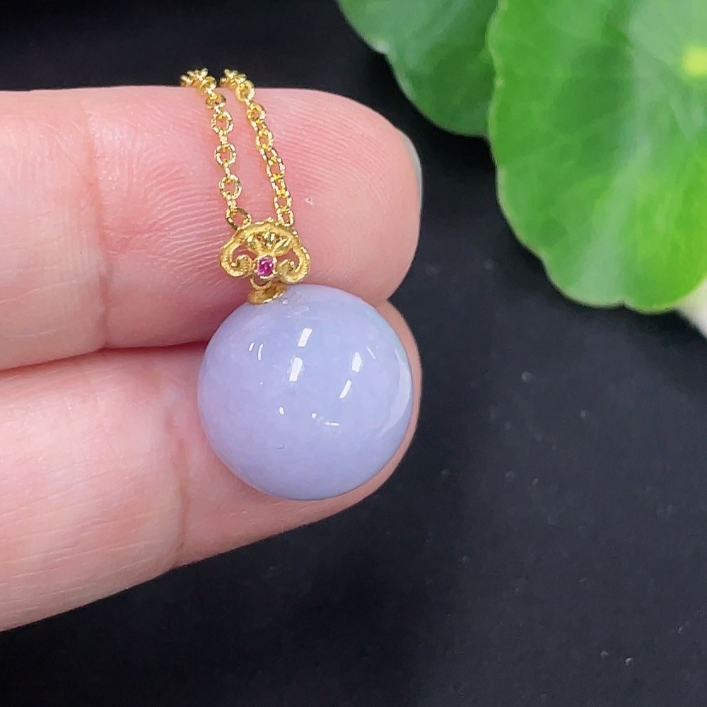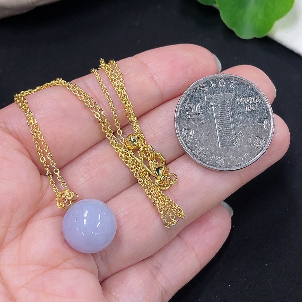 Jadeite Beads Approx. 12.4mm Pendant 18K Gold Chain Non-Gold Total Weight Approx. 5.1g (Including Chain)