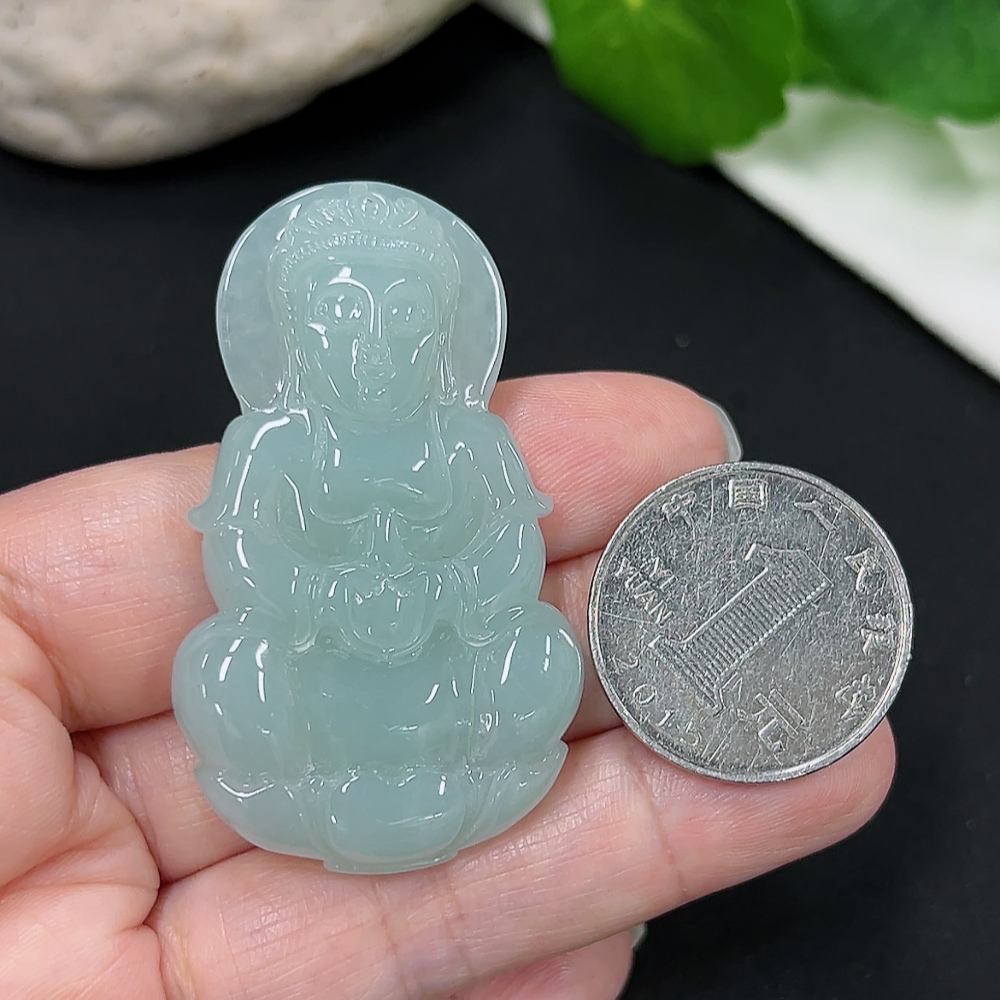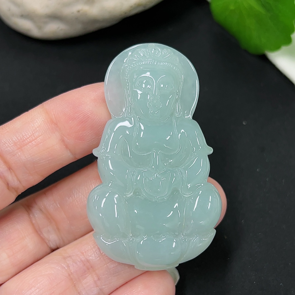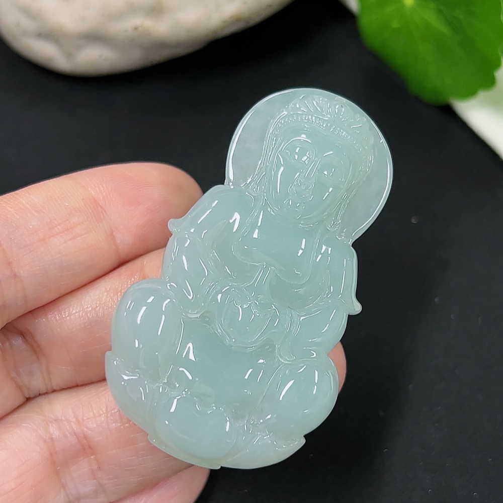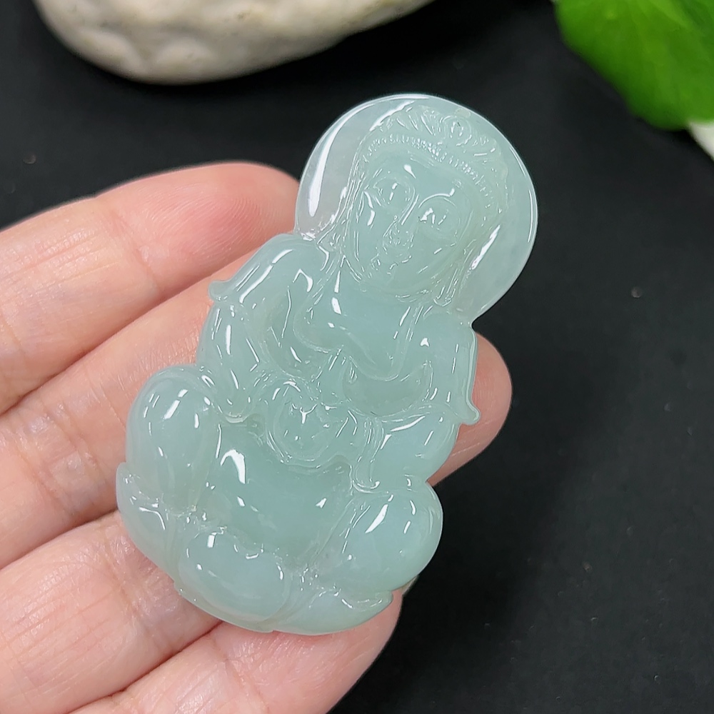 Jadeite Guanyin Pendant Total Weight Approx. 22.21g