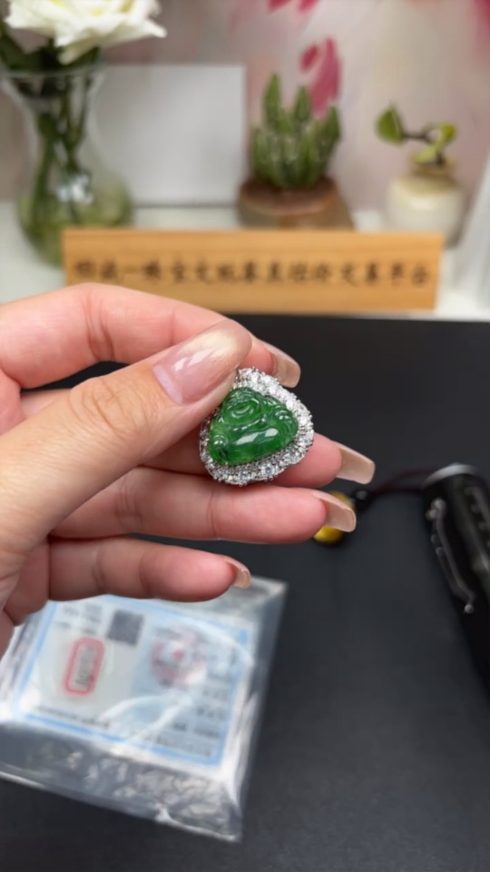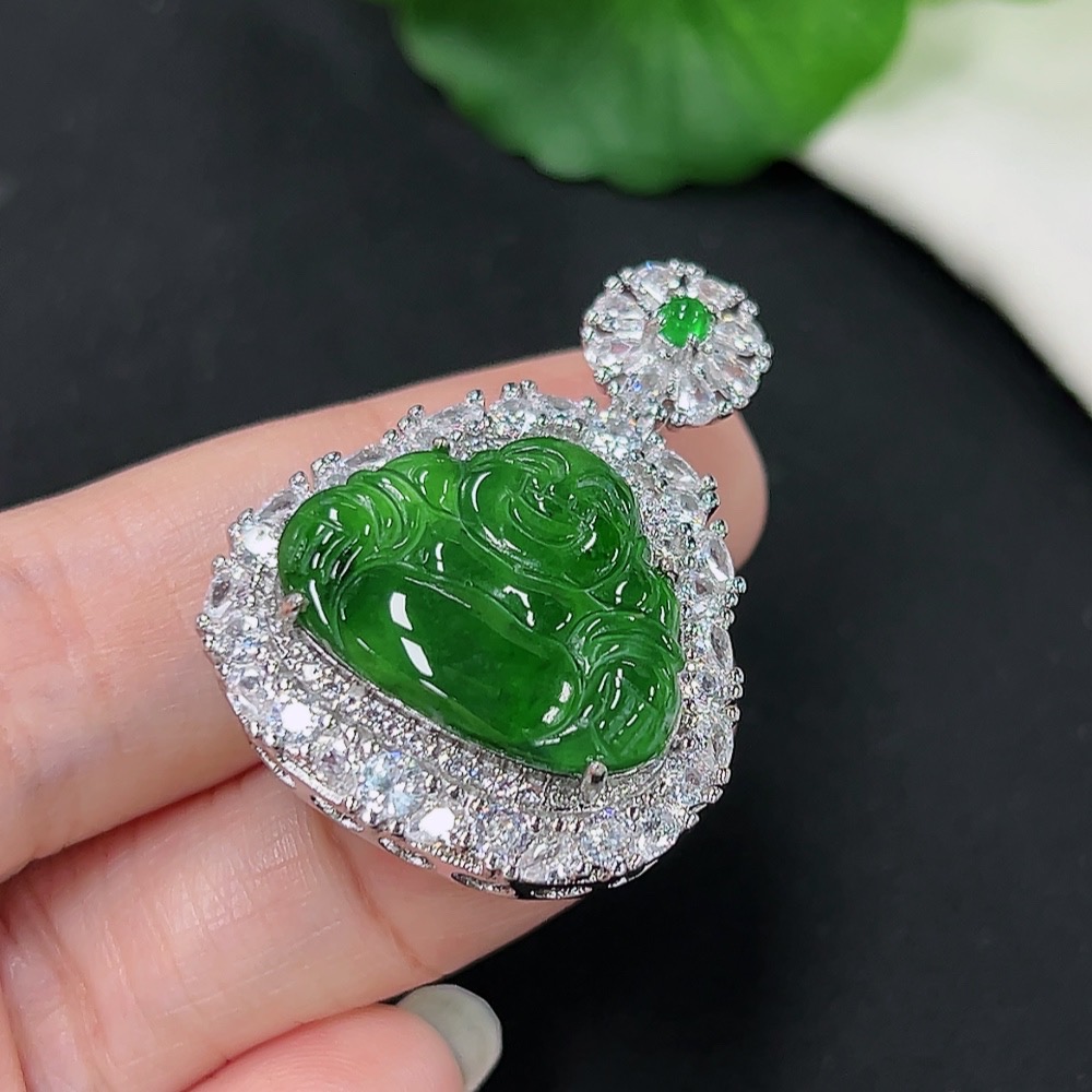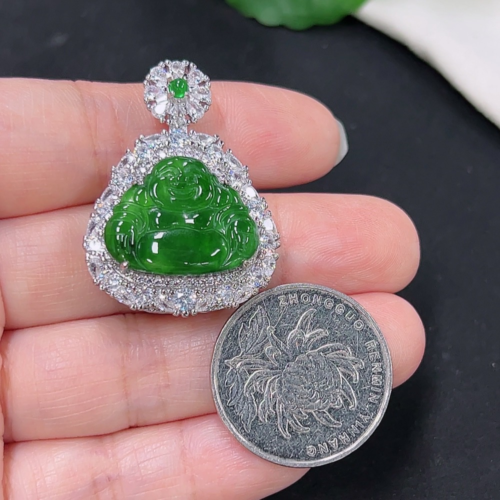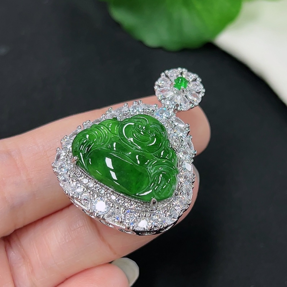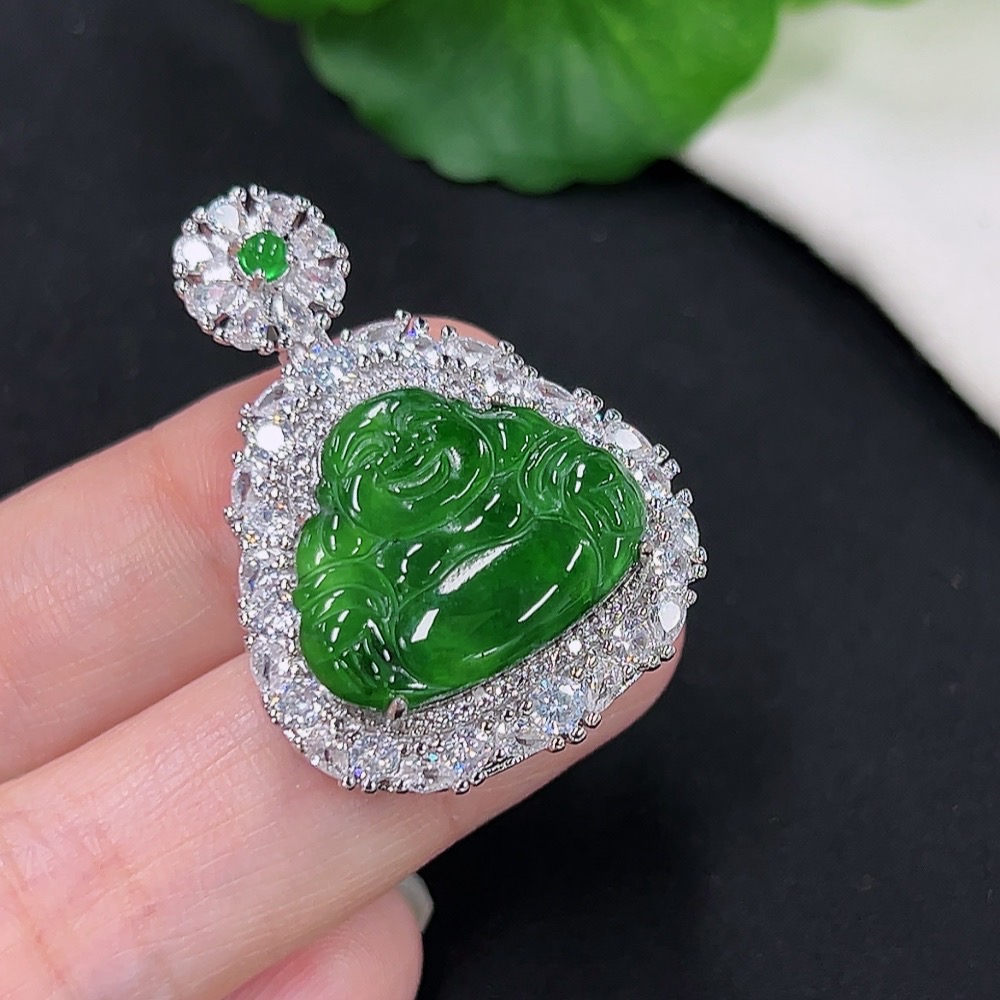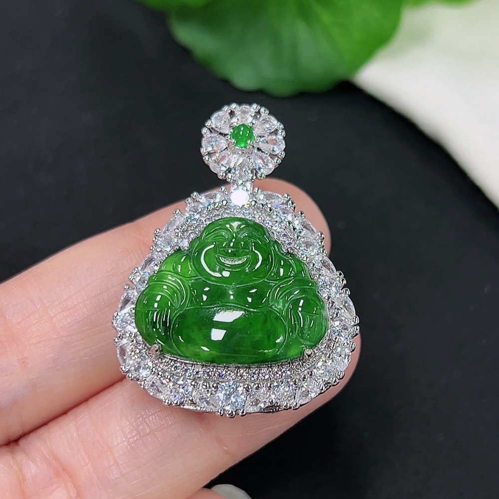 Jadeite Buddha Pendant with Inlay Setting, Non-Gold Inlay, Total Weight Approx. 9.49g