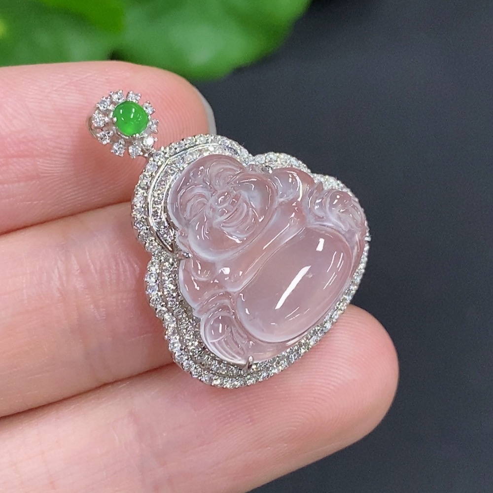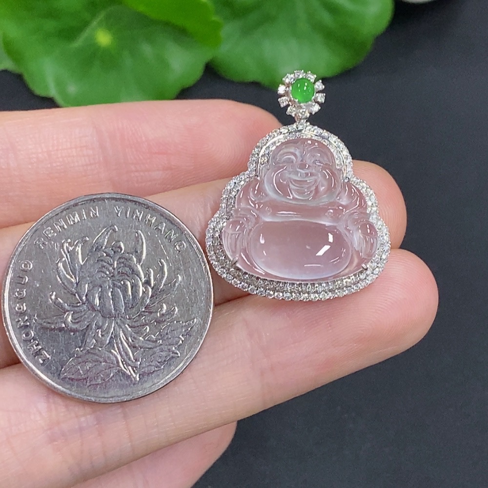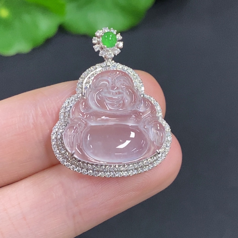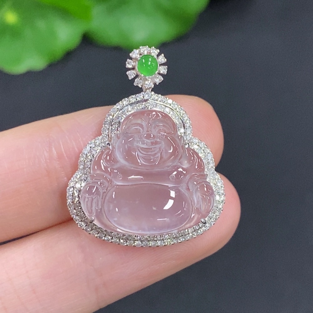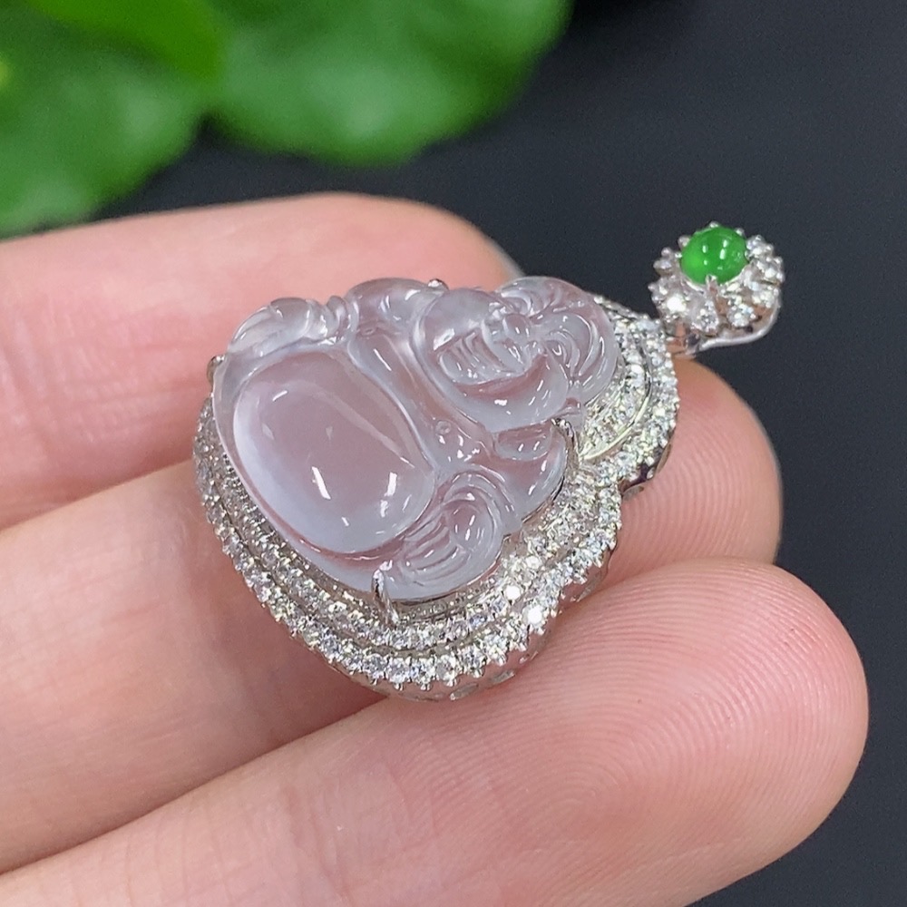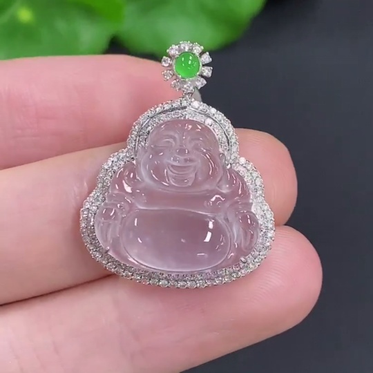 Jadeite Buddha Pendant 18k Gold Total Weight Approx. 3.6g with Diamond Accents