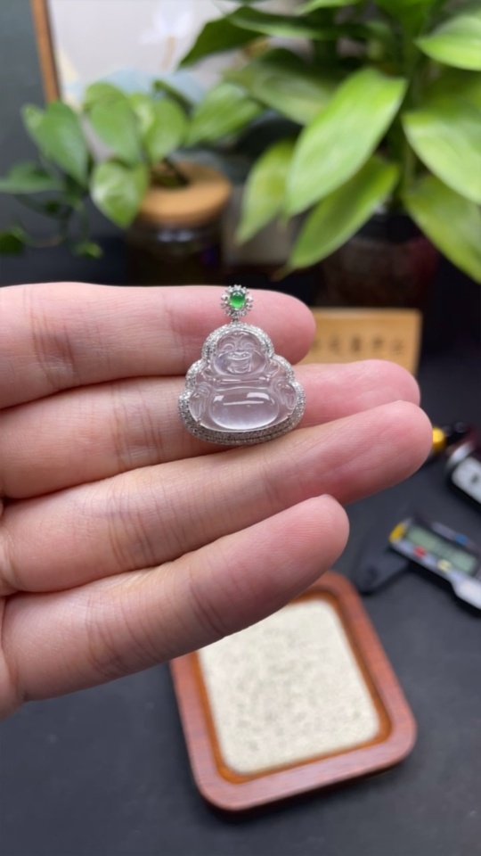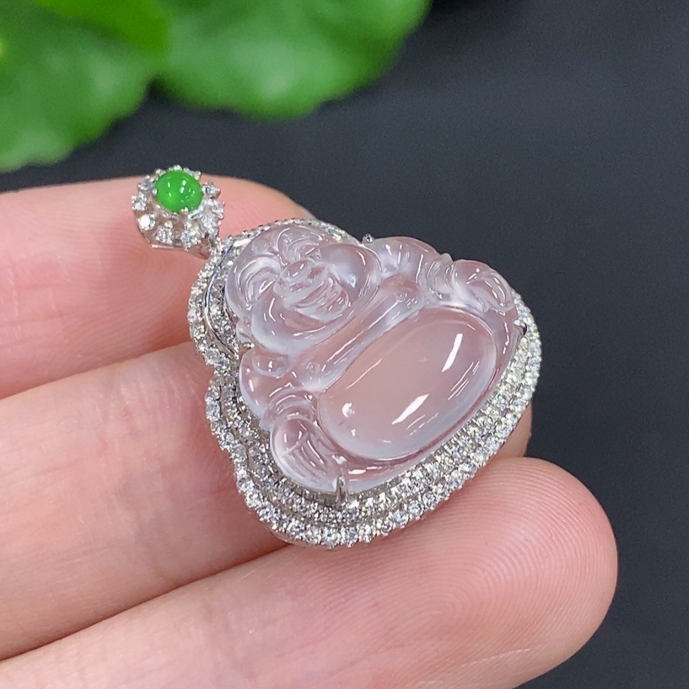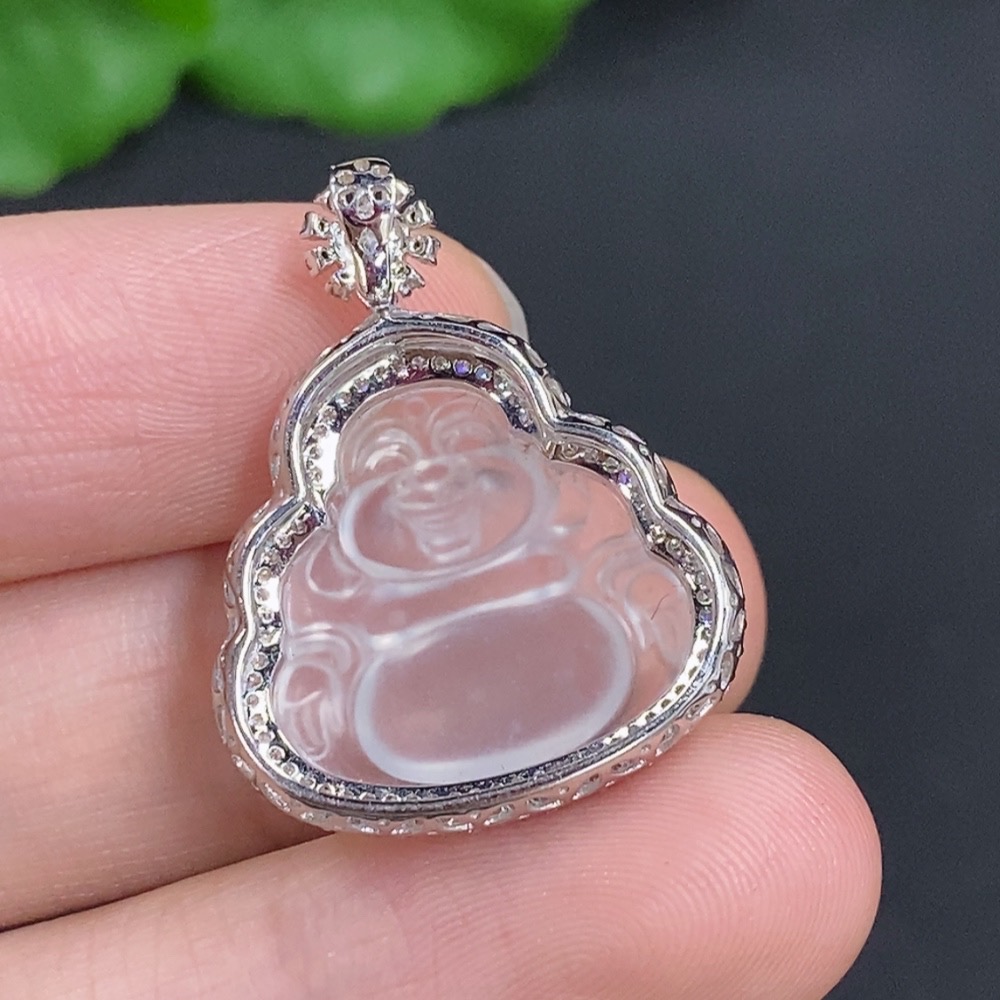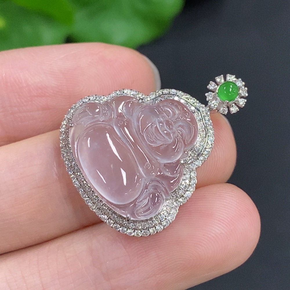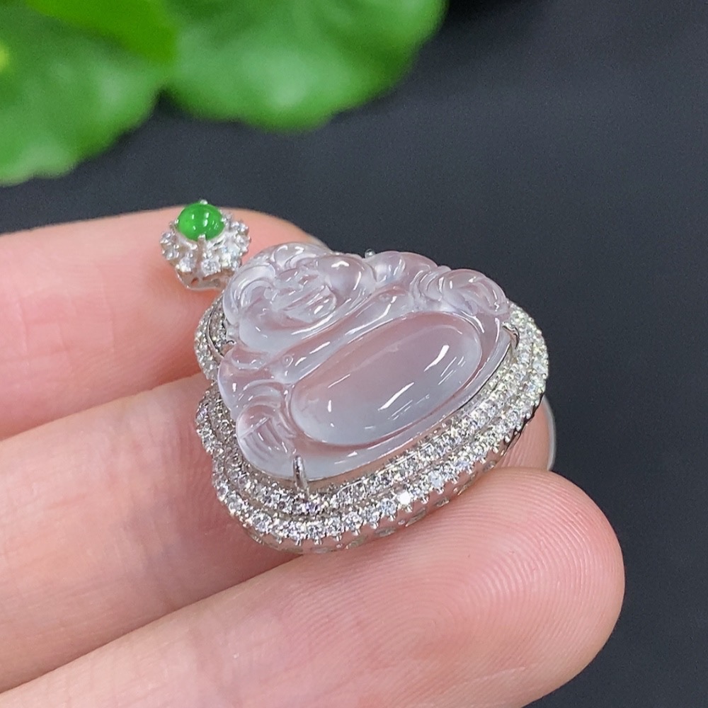 Jadeite Buddha Pendant 18k Gold Total Weight Approx. 3.6g with Diamond Accents