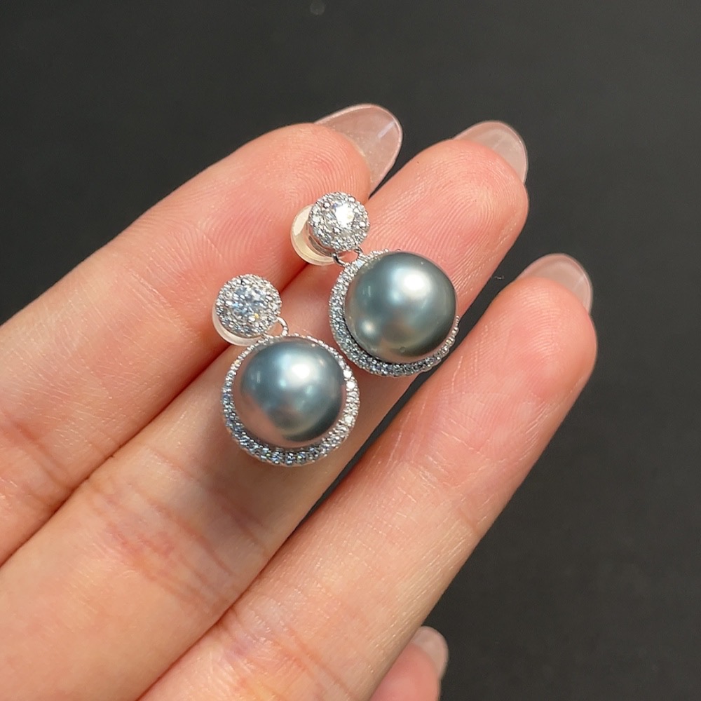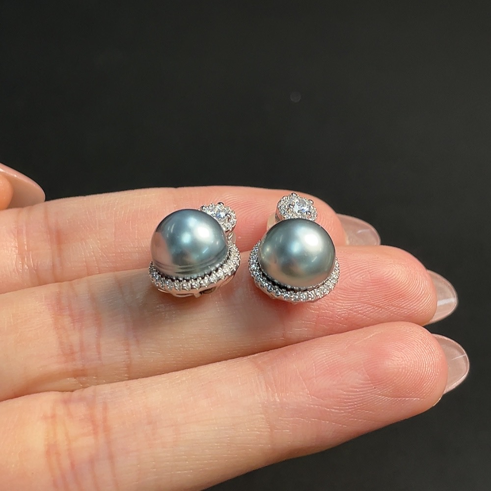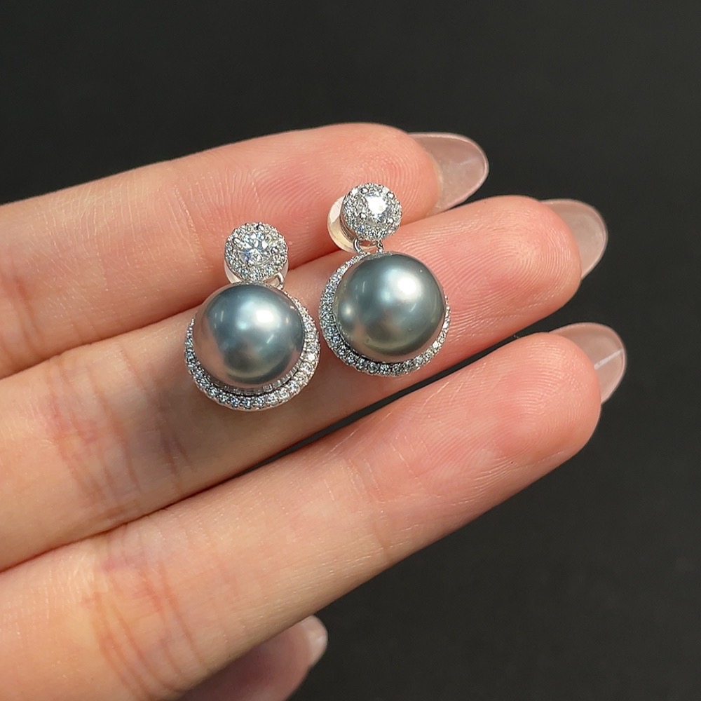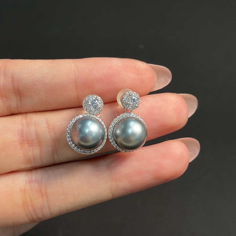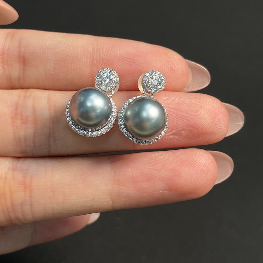 Seawater pearl earrings, non-gold setting, approx. 9.5mm, total weight about 4.76g