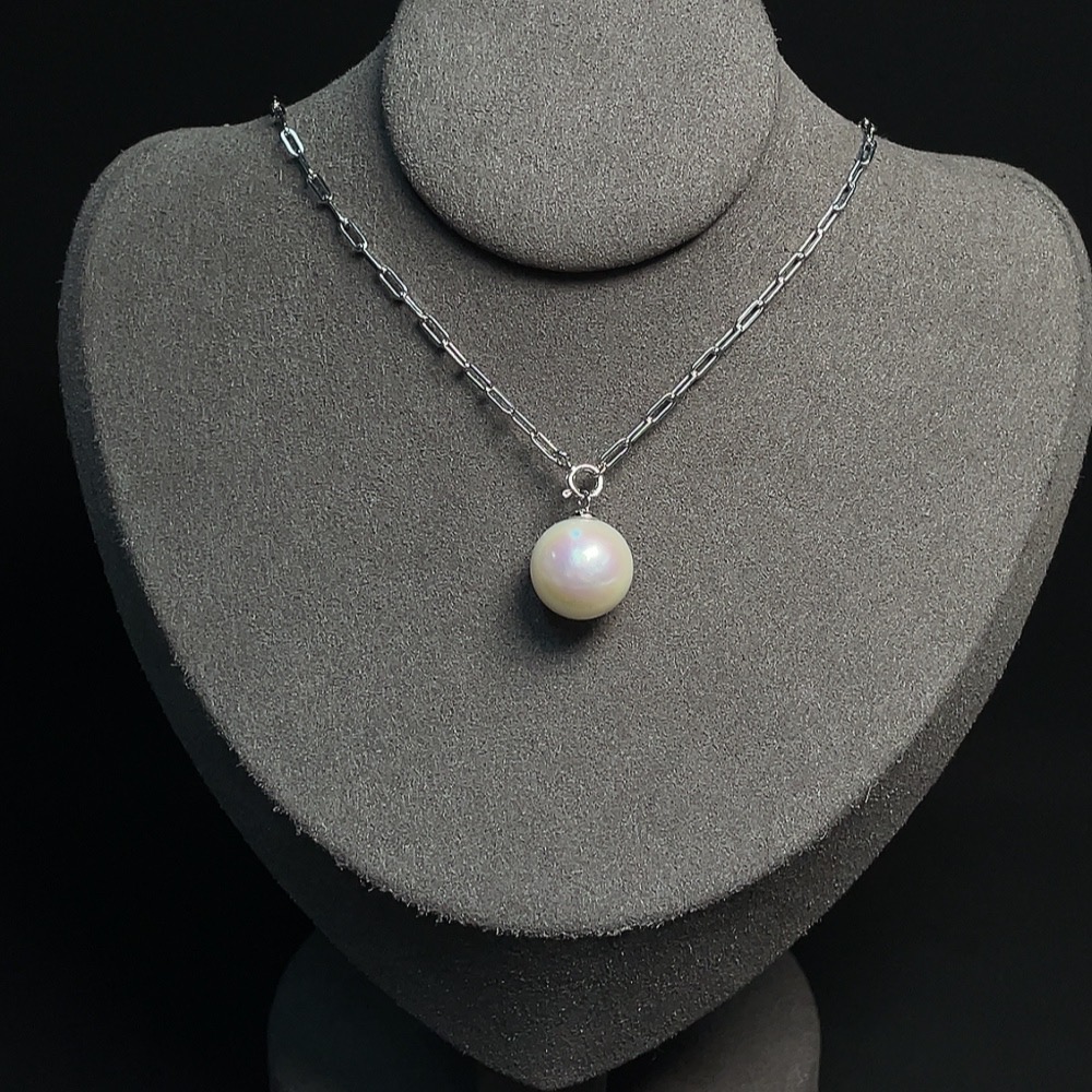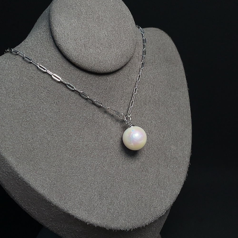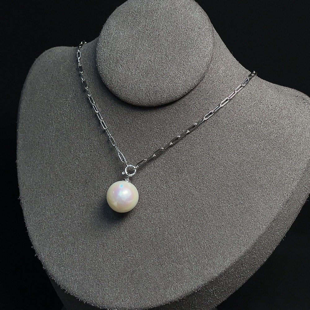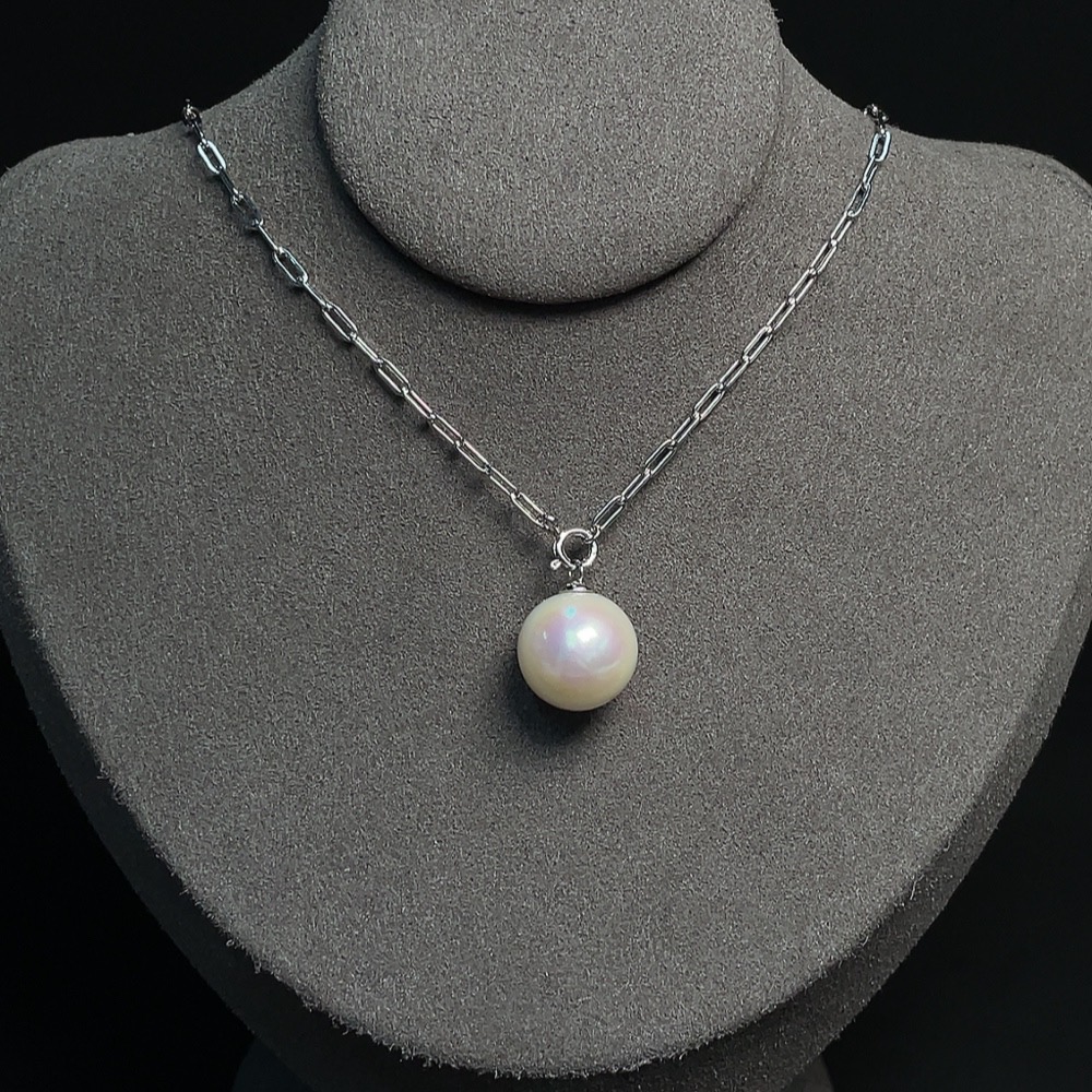 Pearl Inlaid Necklace Non-Gold Setting Approx. 13.1mm Total Weight Including Chain Approx. 6.95g