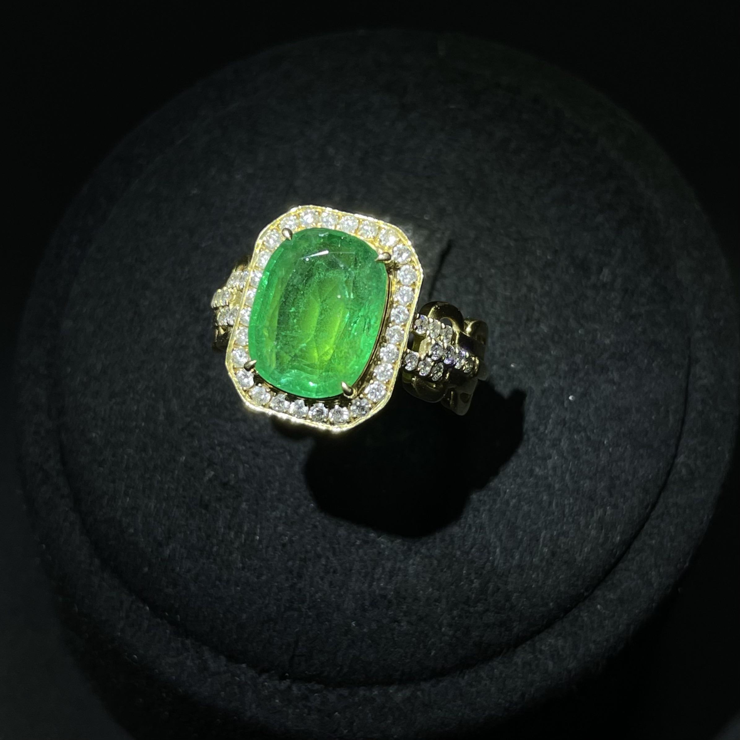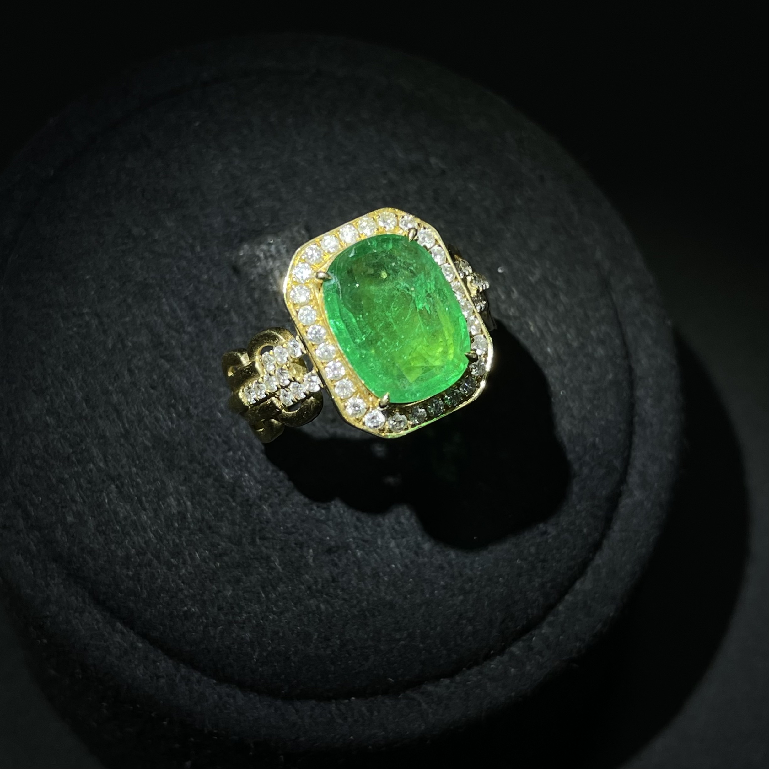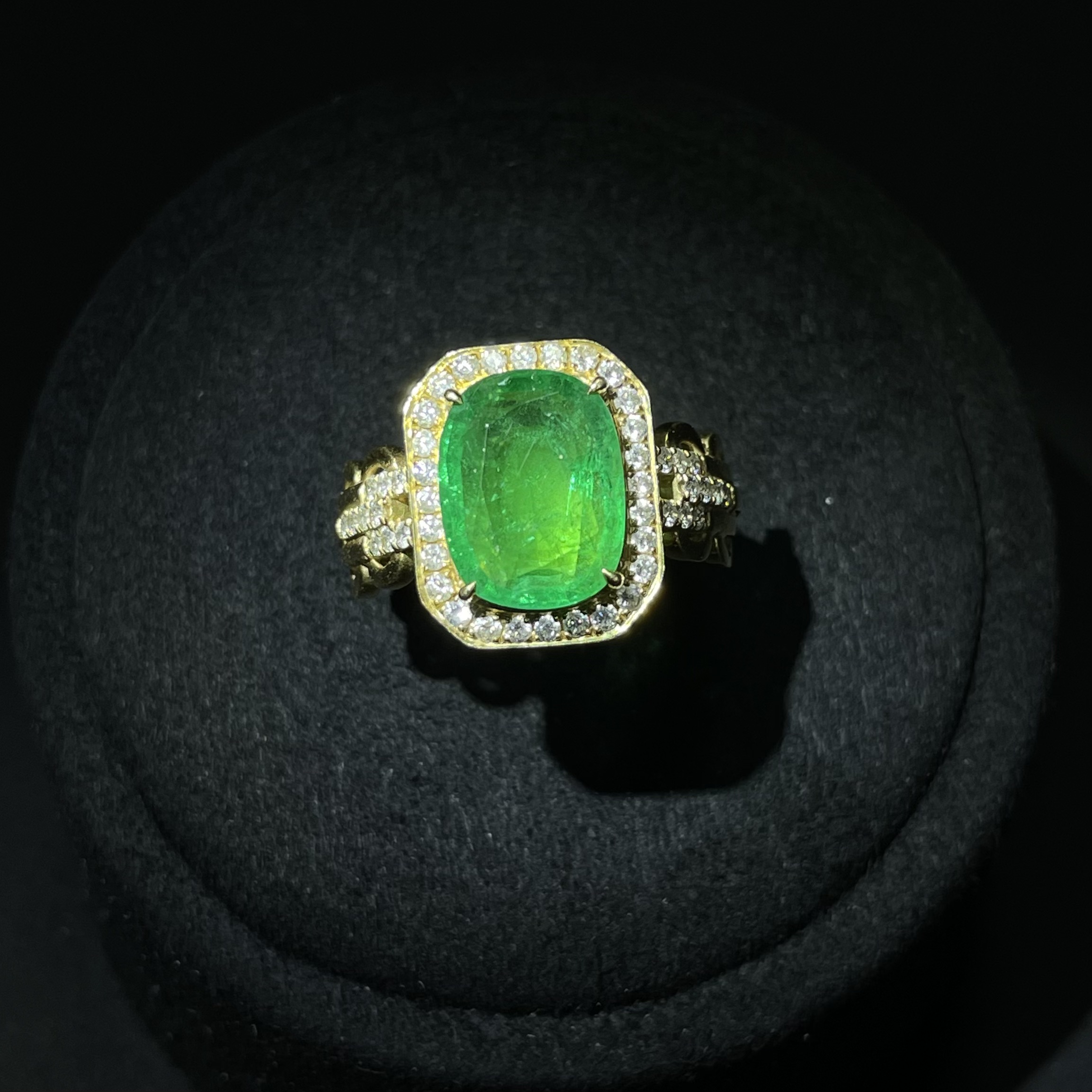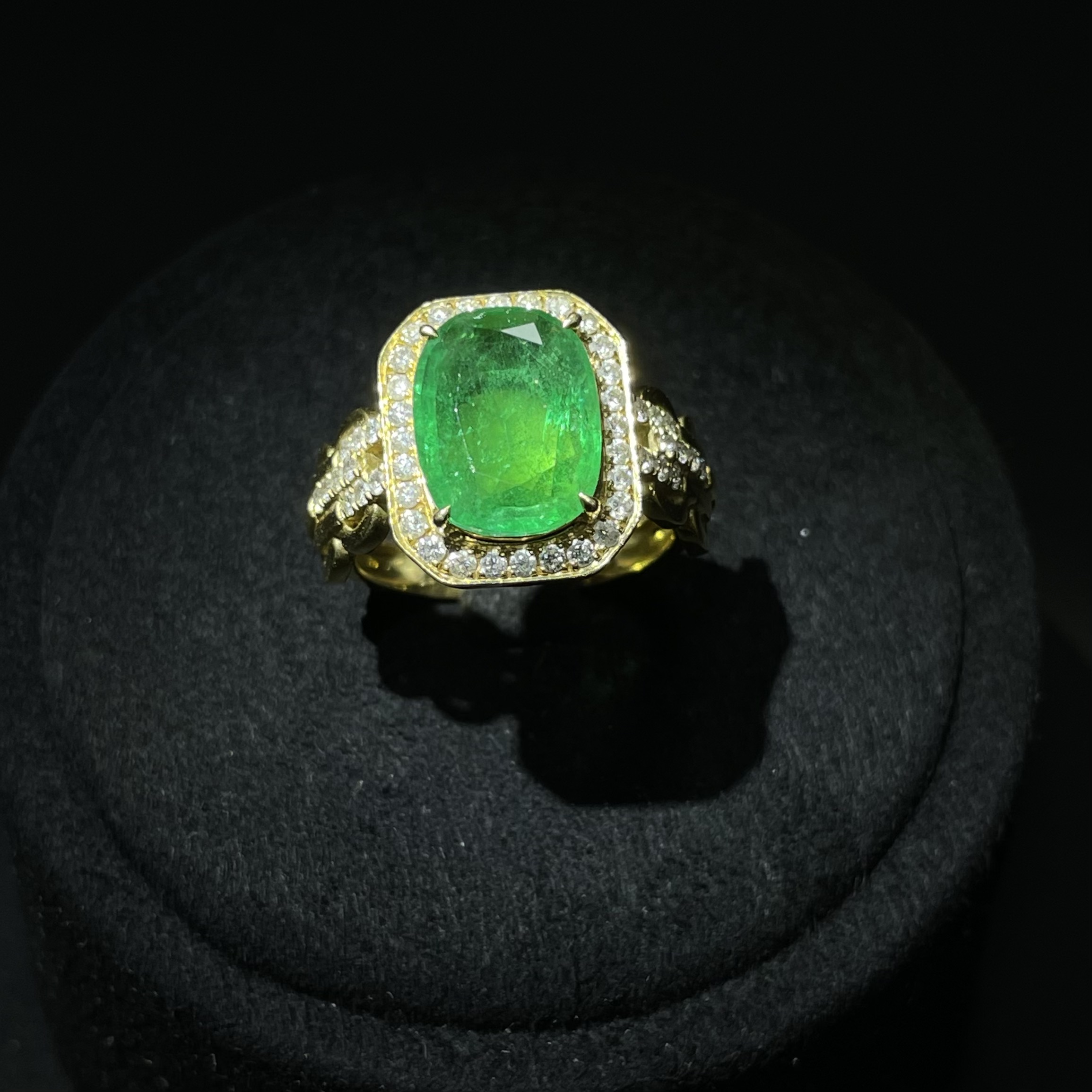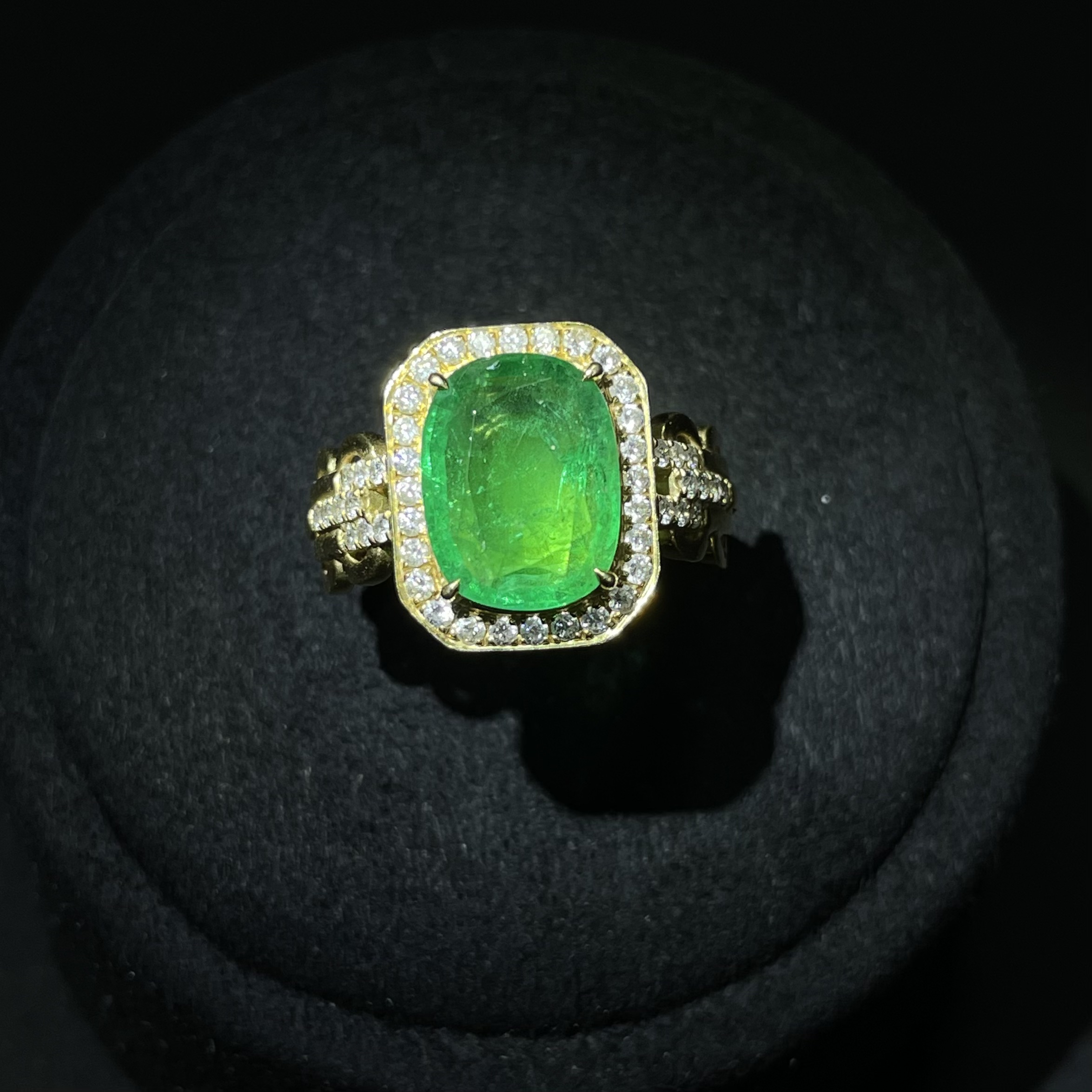Emerald Ring in 18K Gold, Size 17, Total Weight Approx. 6.98g, Clarity Enhanced, Accented with Diamonds