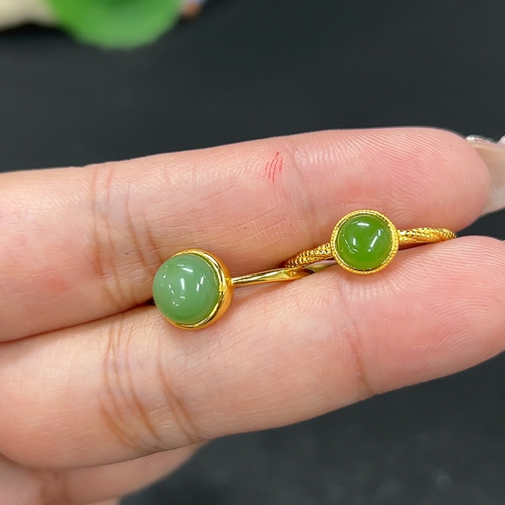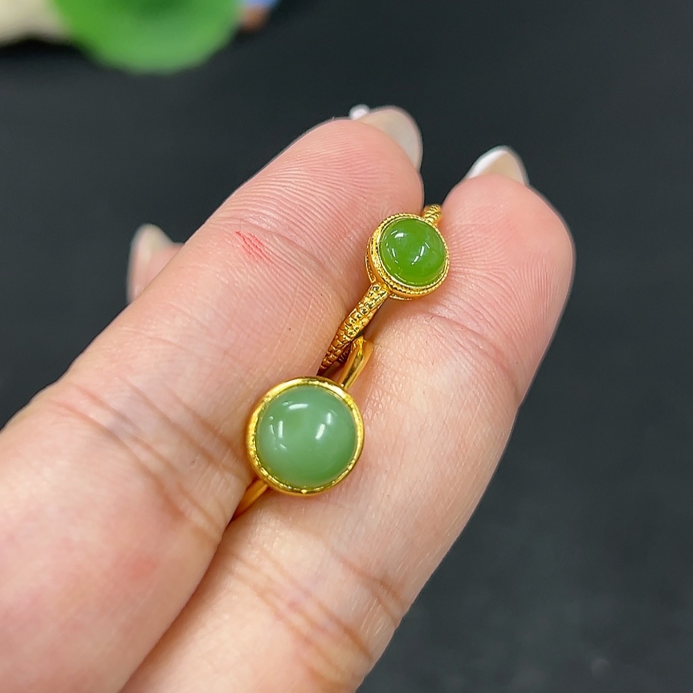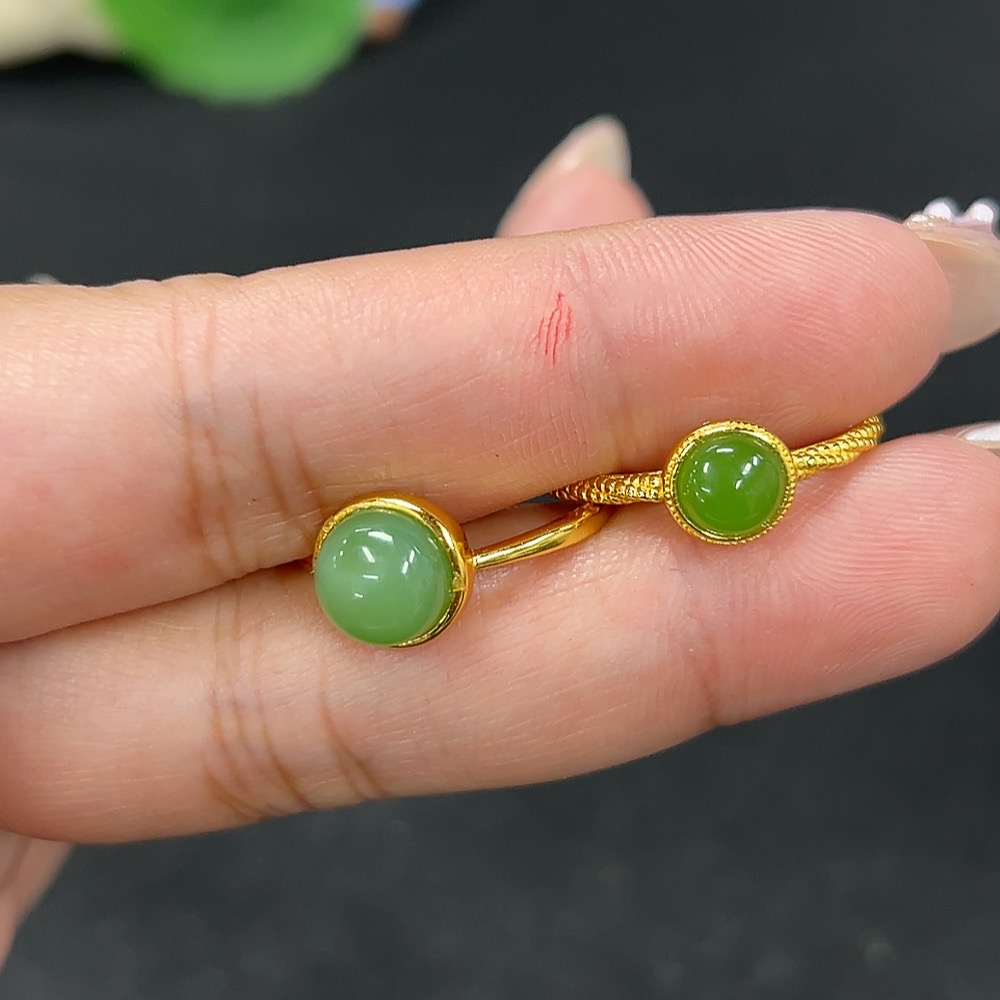 Hetian Jade Inlaid Adjustable Ring Total Weight Approx. 3.2g Non-Gold