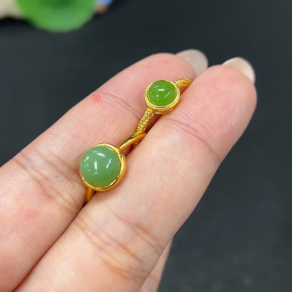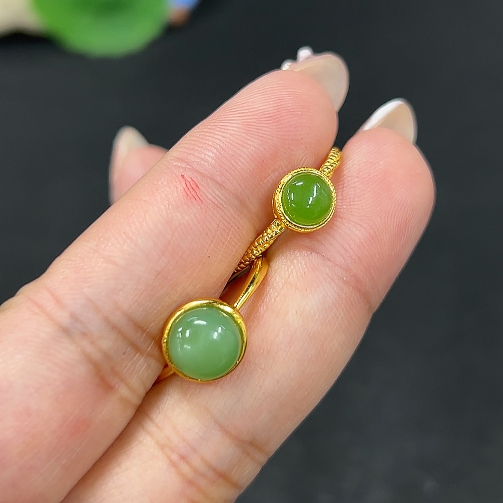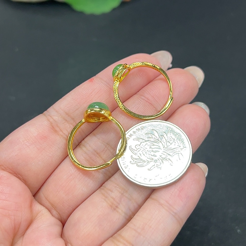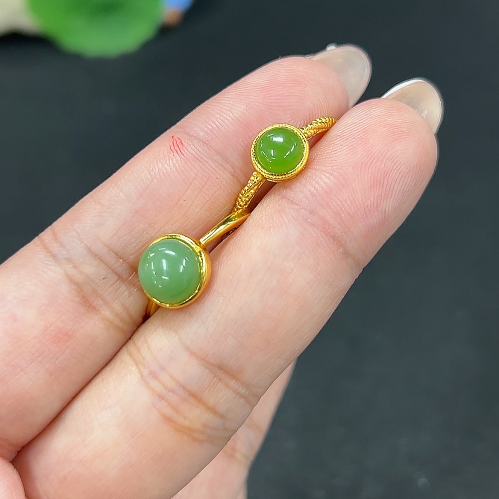Hetian Jade Inlaid Adjustable Ring Total Weight Approx. 3.2g Non-Gold