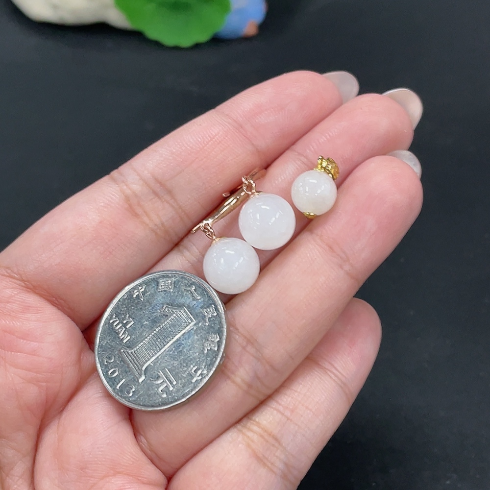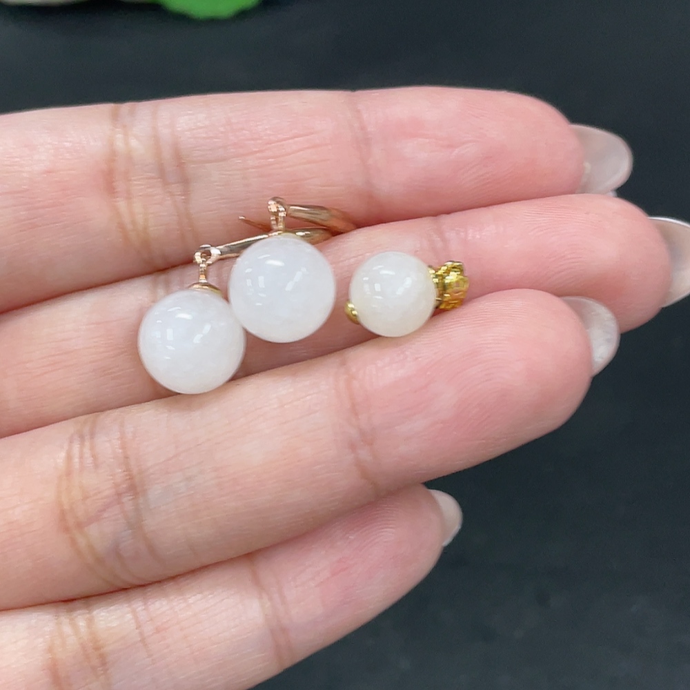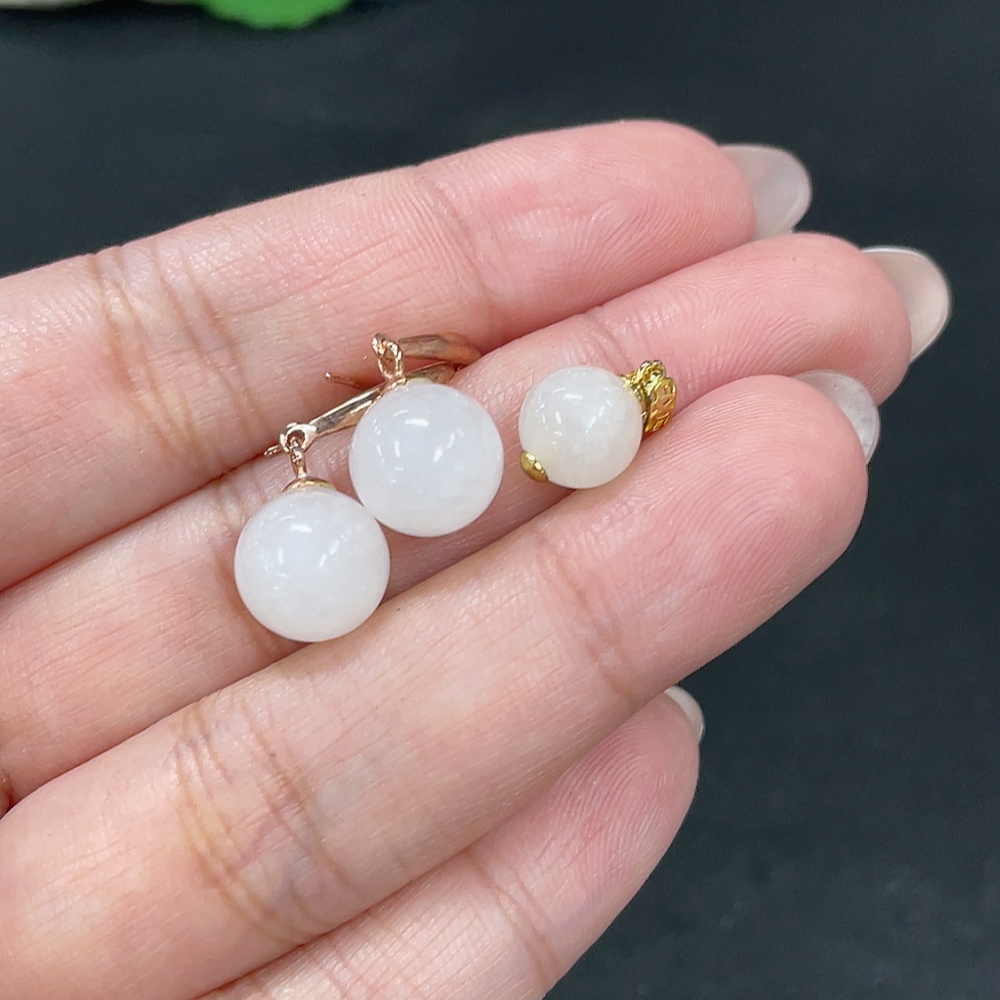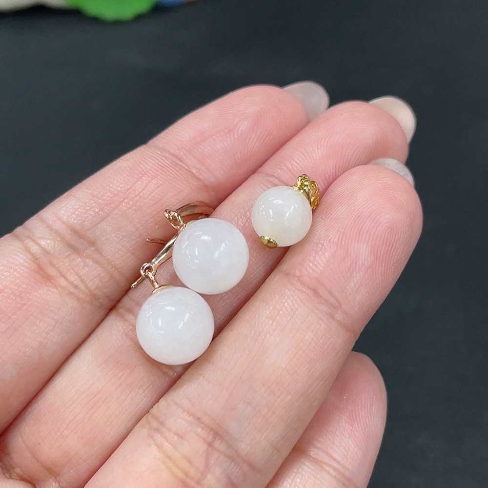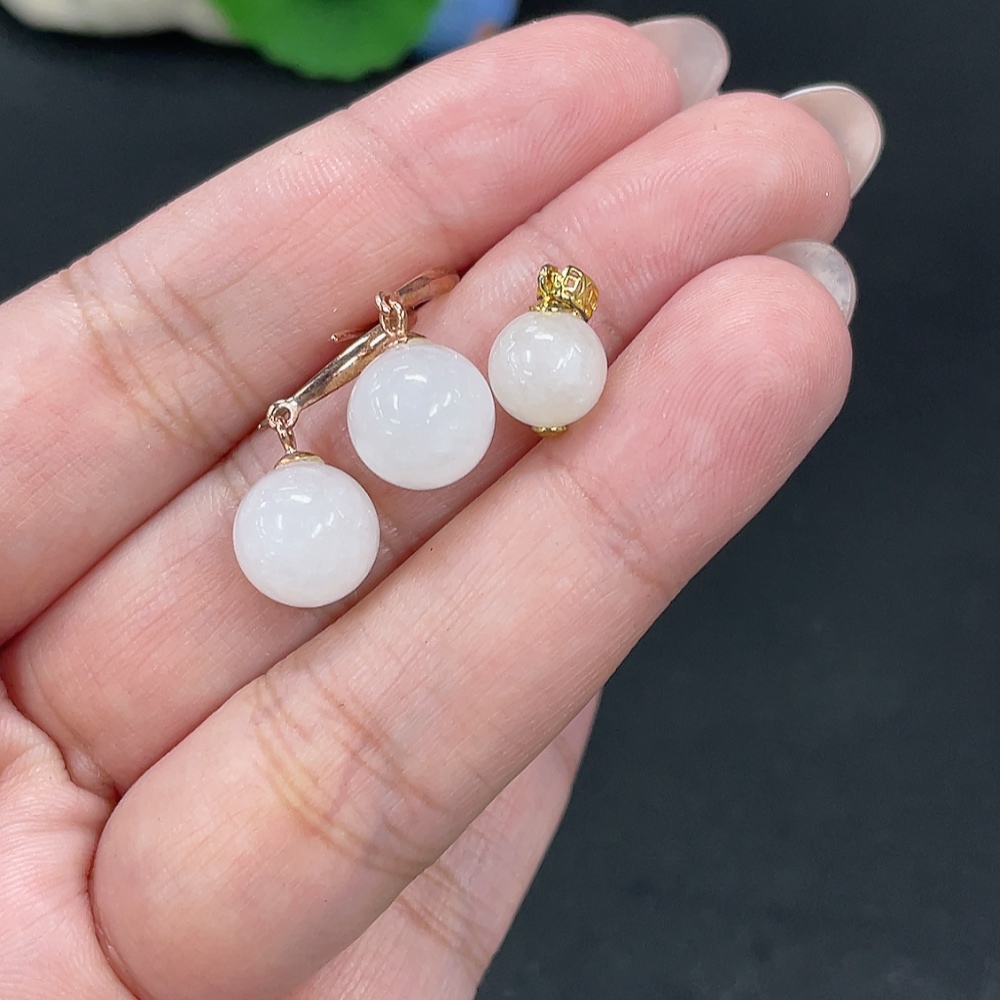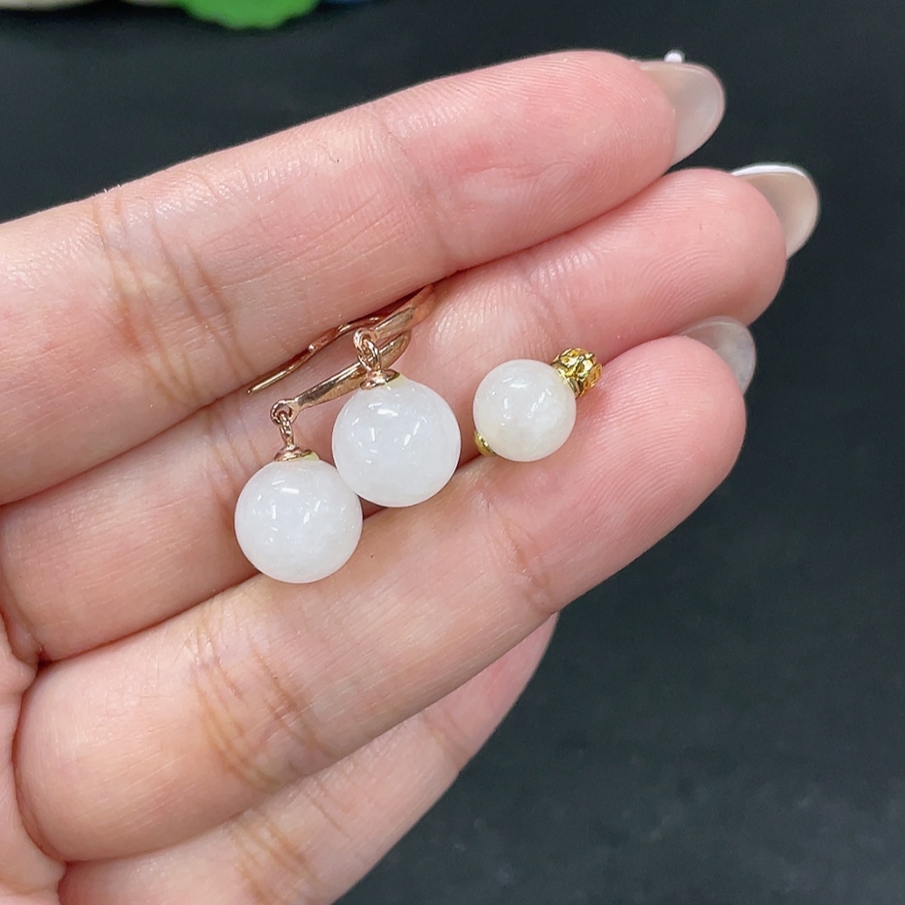 Hetian Jade Inlaid Pendant + Earrings Total Weight Approx. 4.4g Non-Gold Contains Other Mineral Components
