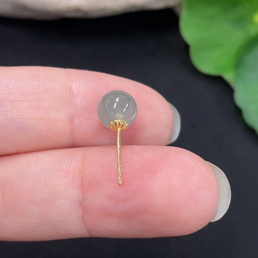 Jadeite inlaid earring one piece approx. 6.7mm 18K gold total weight about 0.5g (single piece)