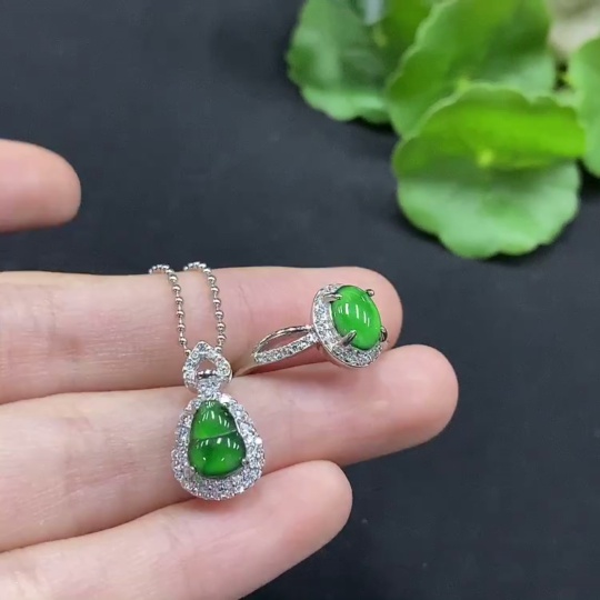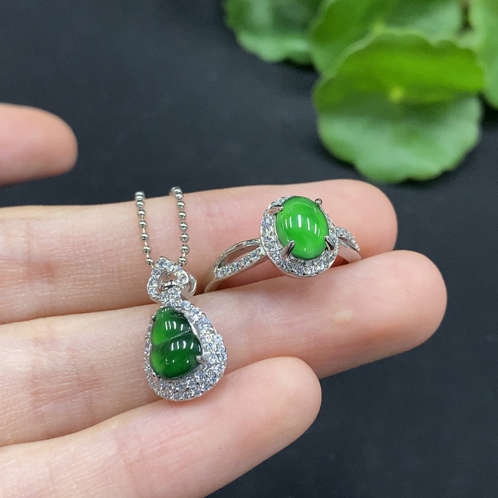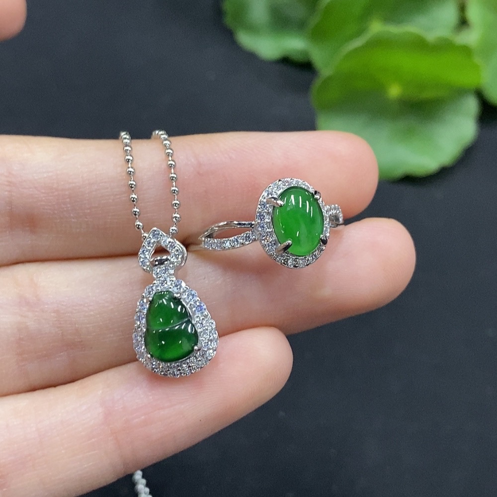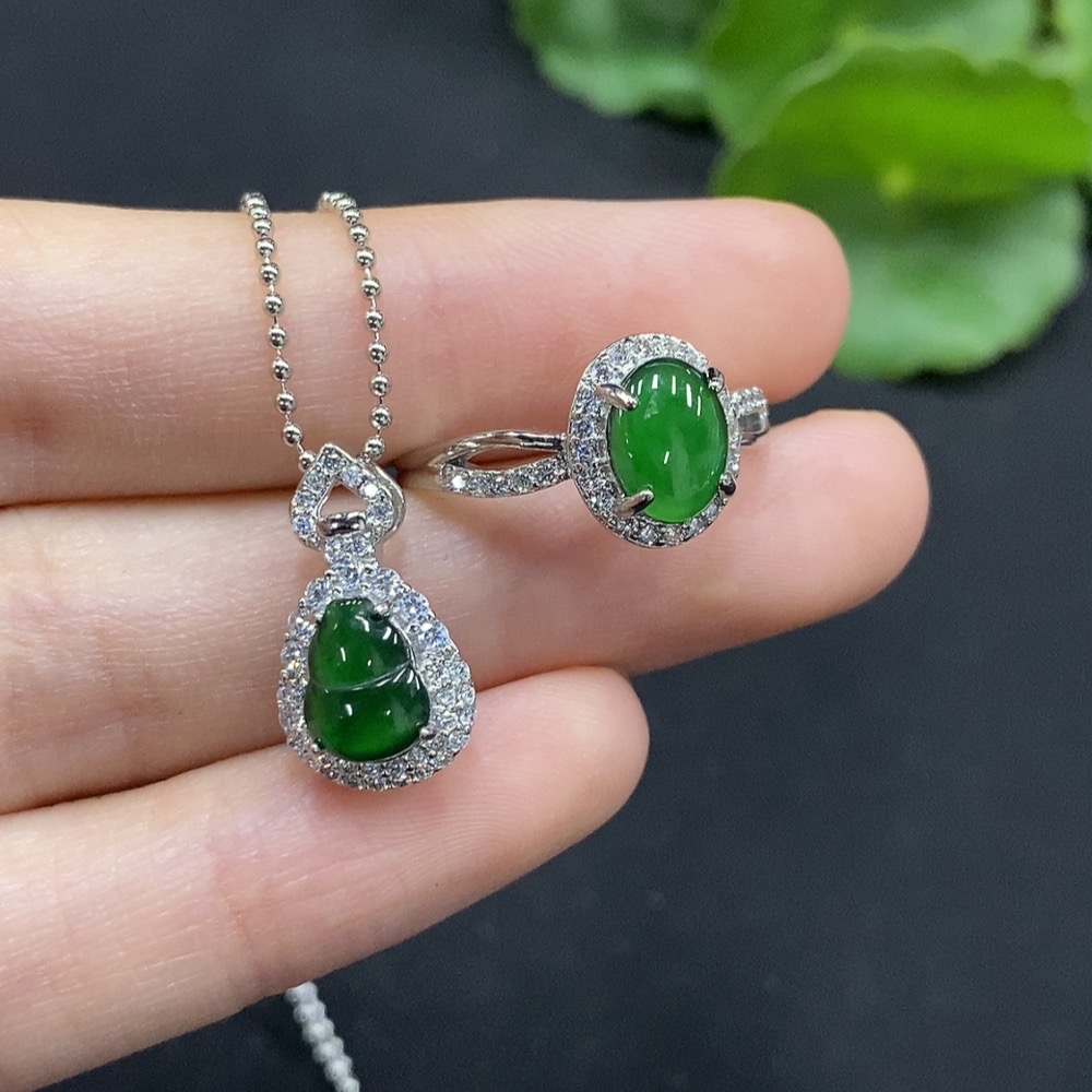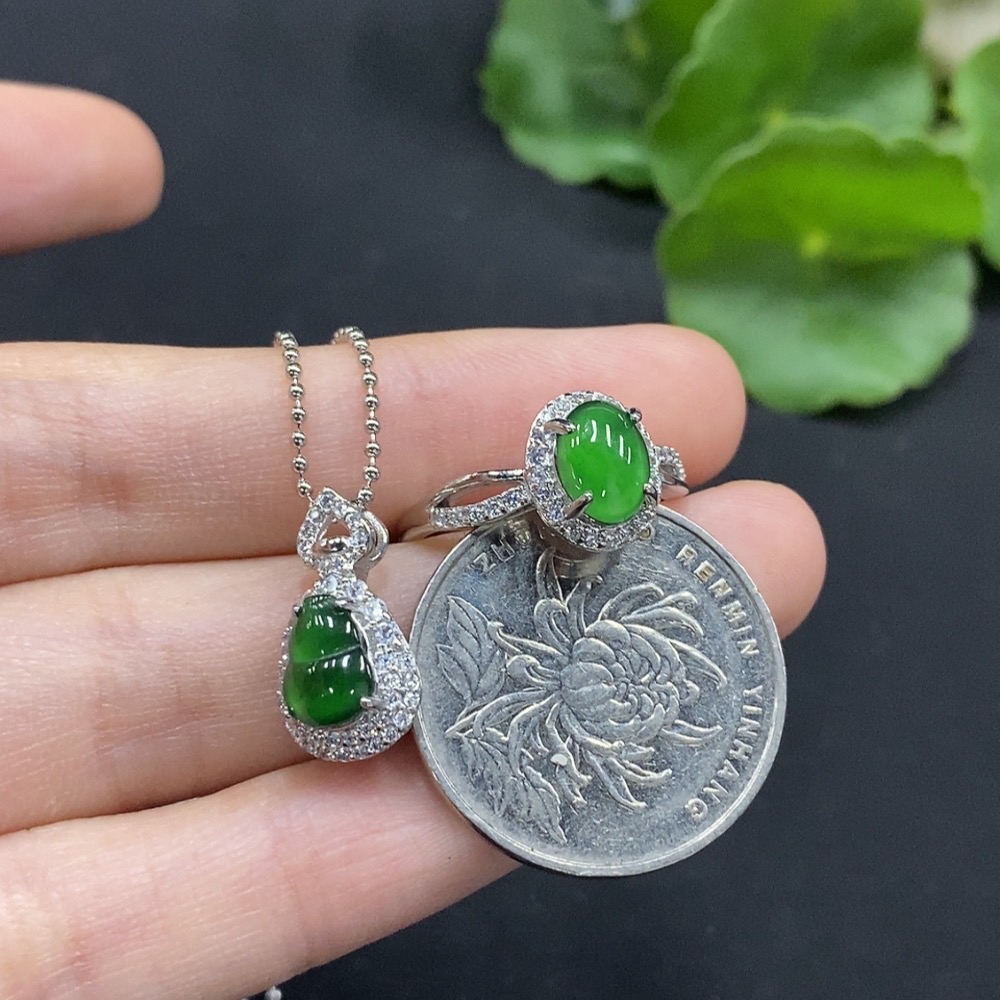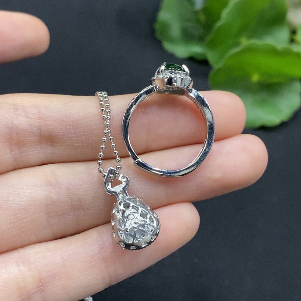Jadeite Gourd Inlaid Pendant / Adjustable Ring Non-Gold Inlaid