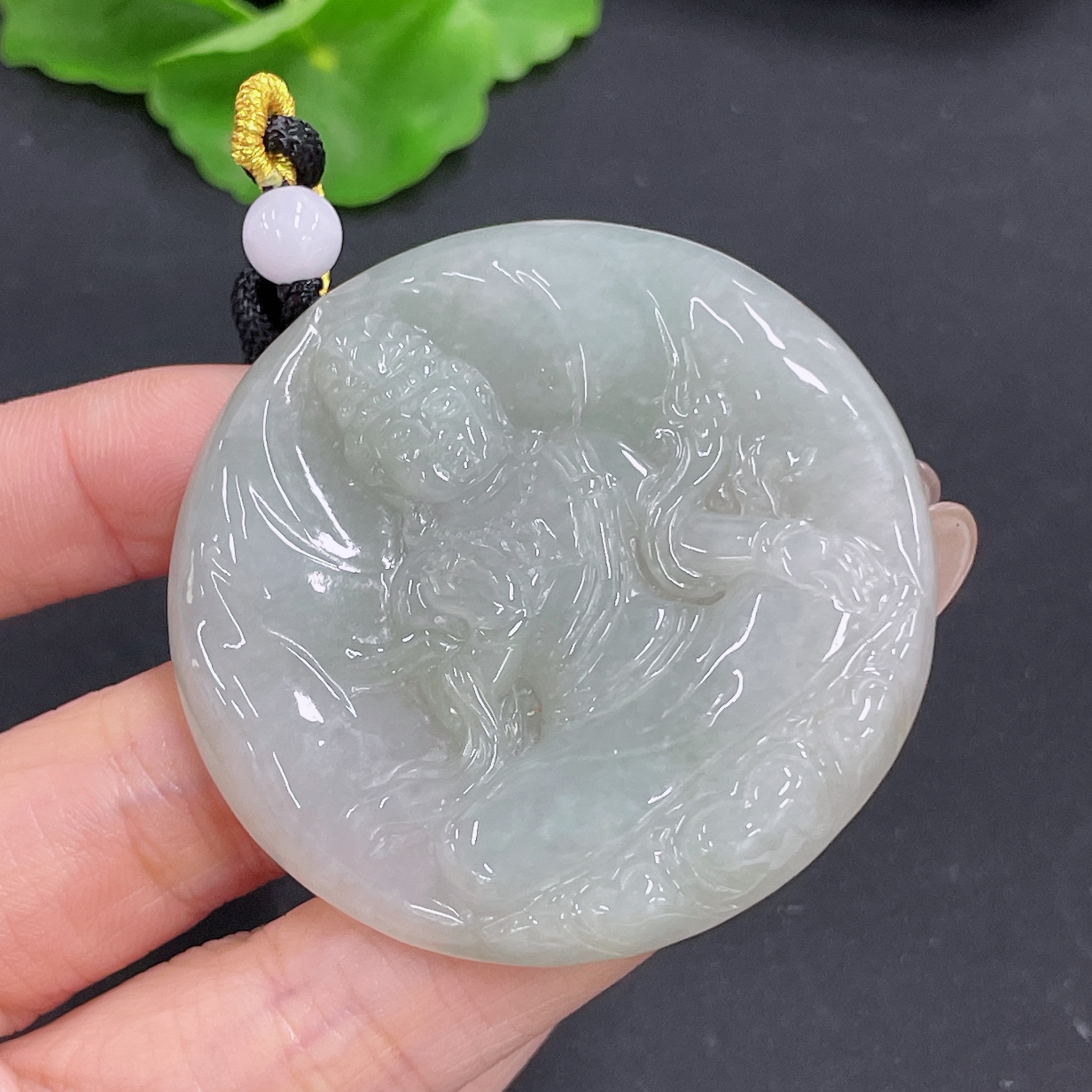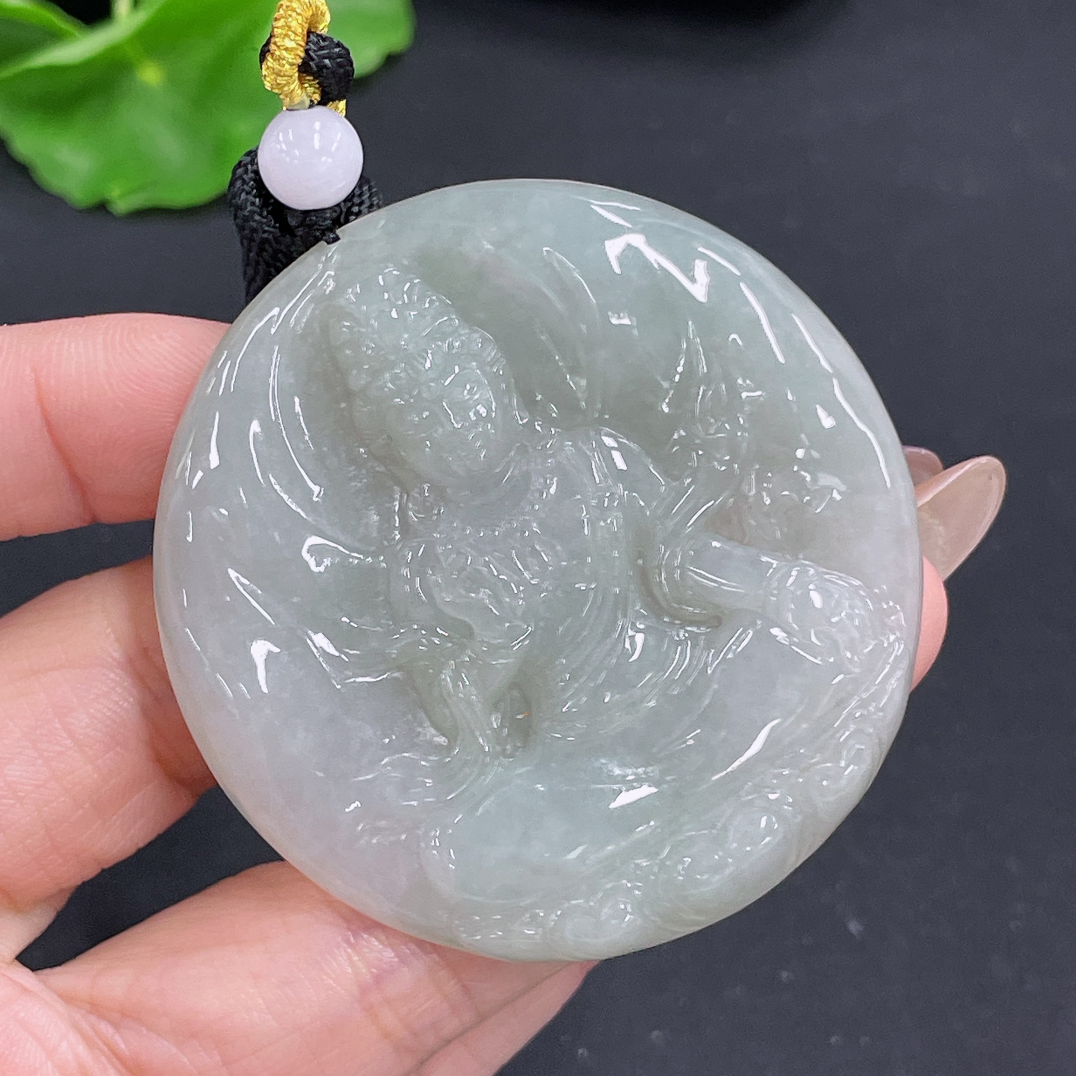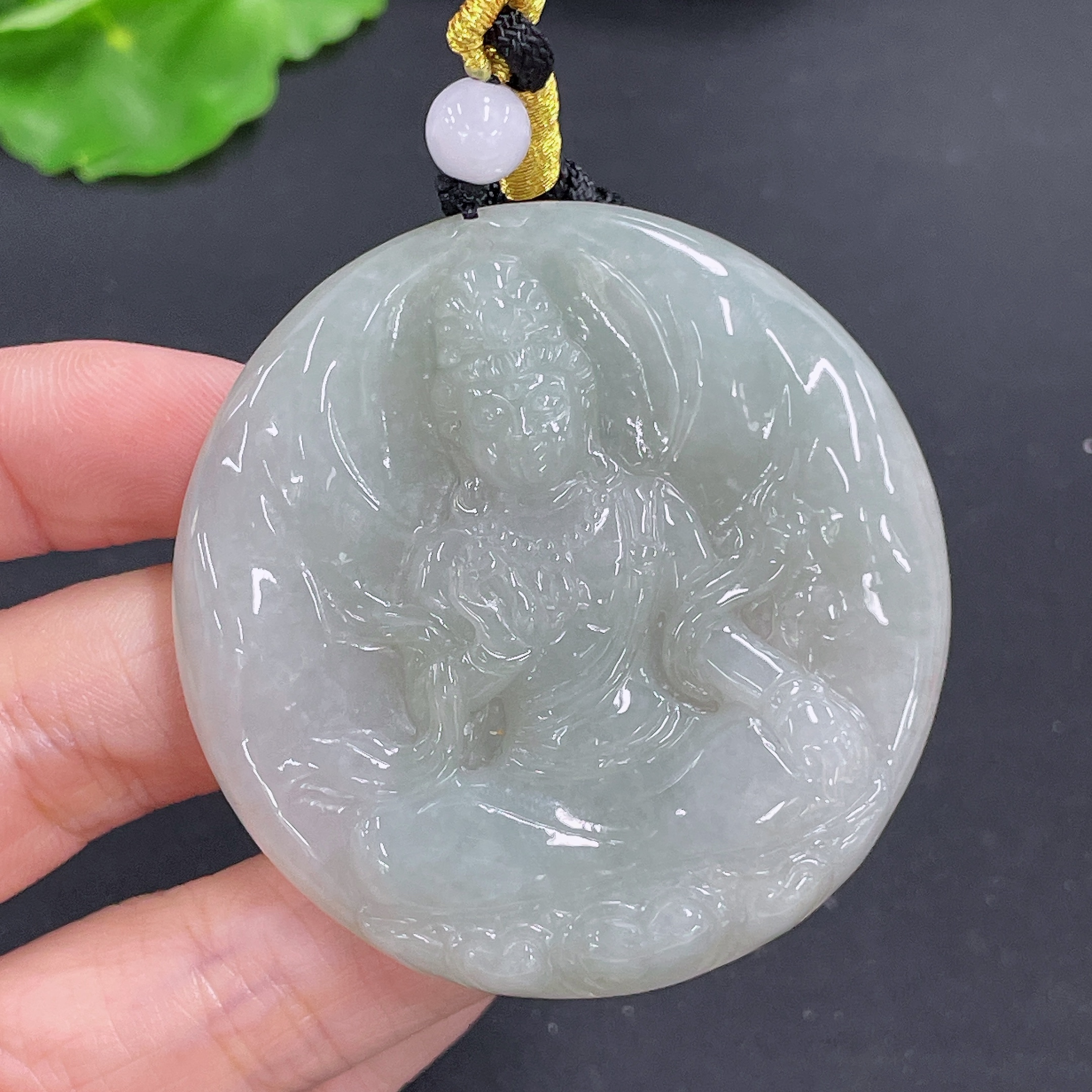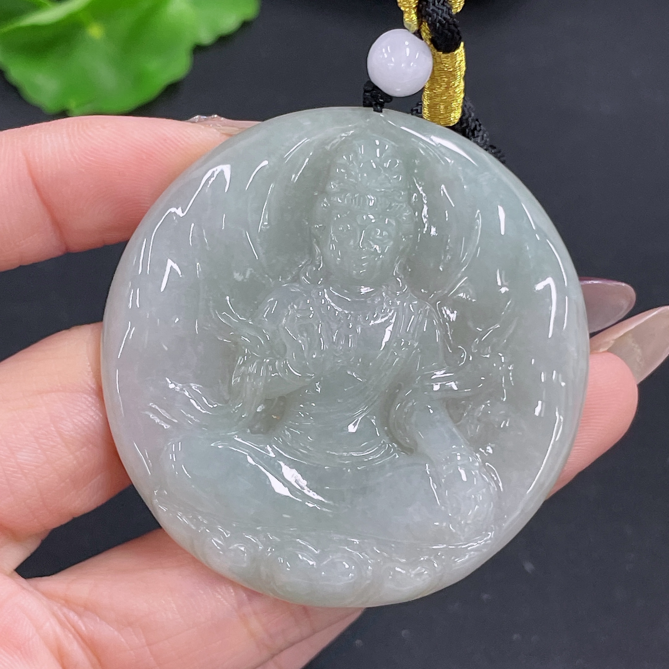 Jadeite Pendant Guanyin with Cord Total Weight Approx. 34.74g