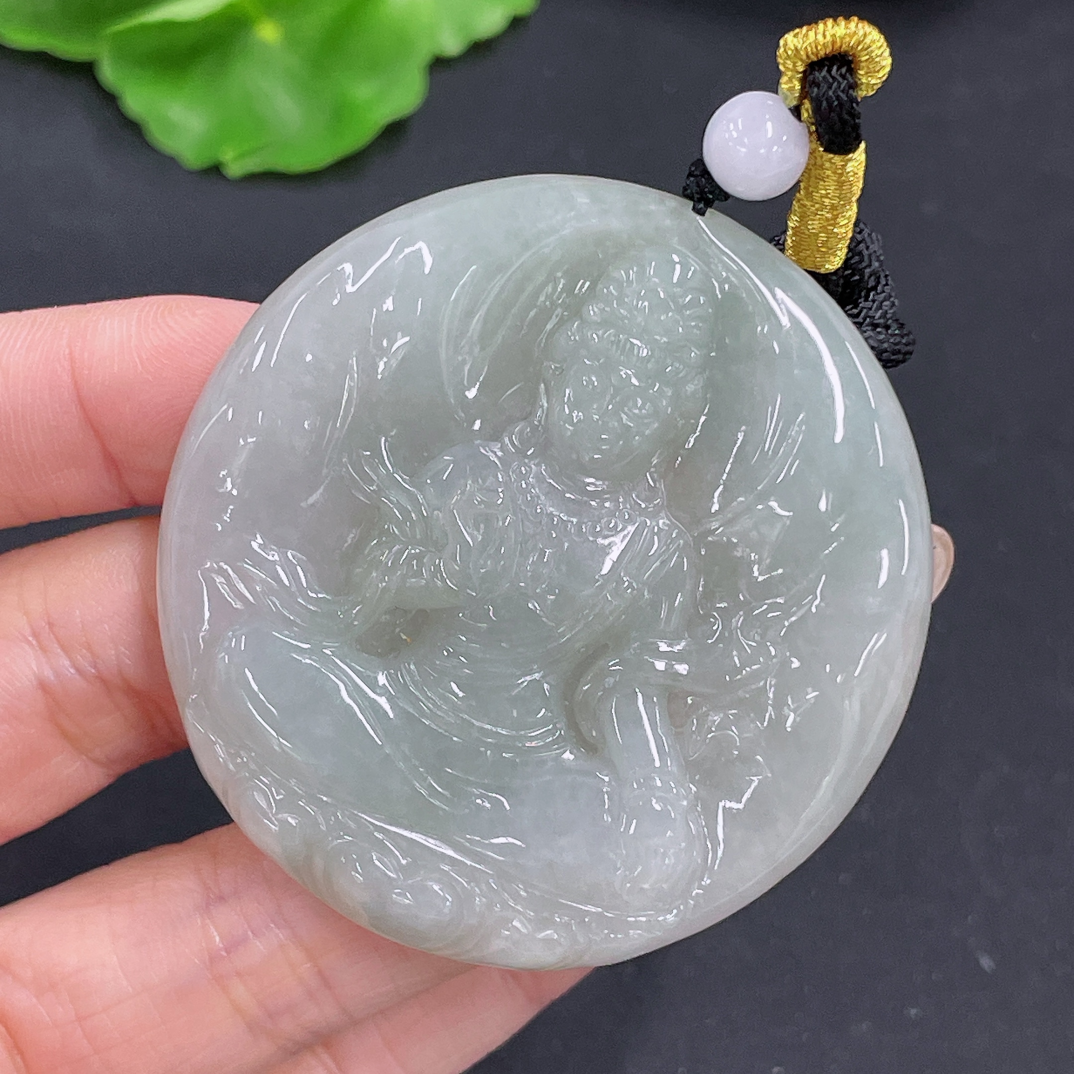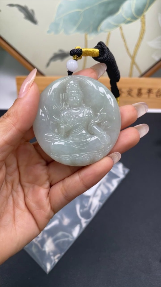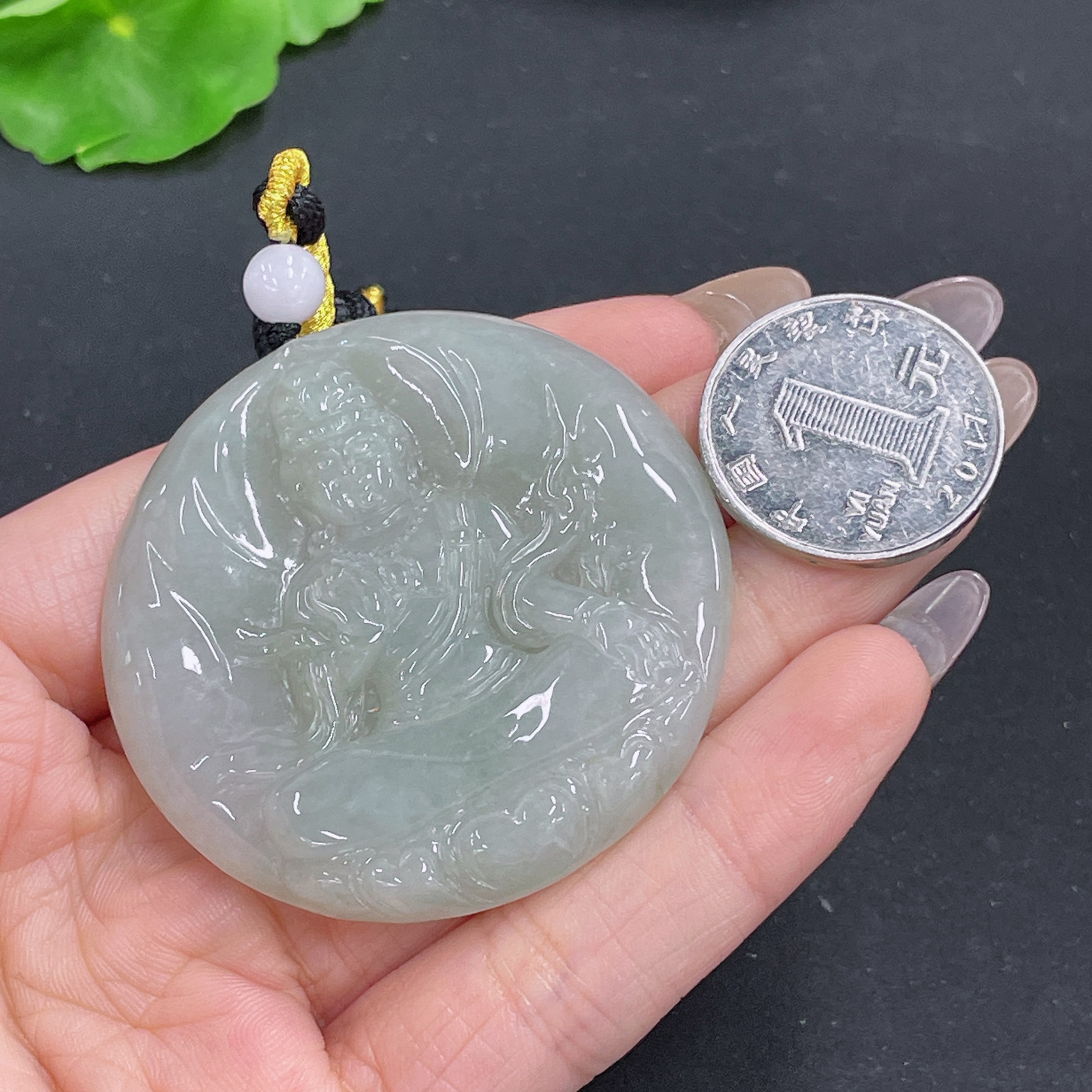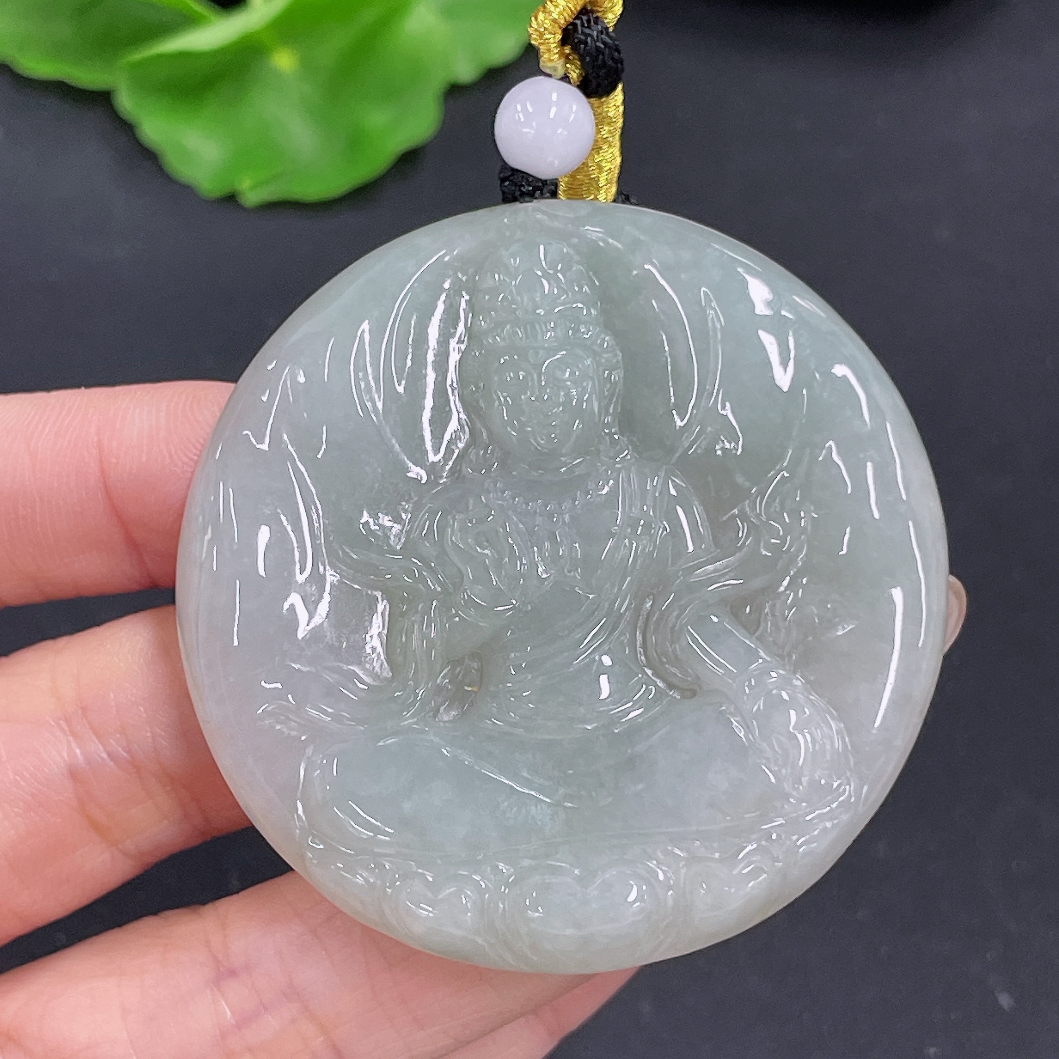 Jadeite Pendant Guanyin with Cord Total Weight Approx. 34.74g