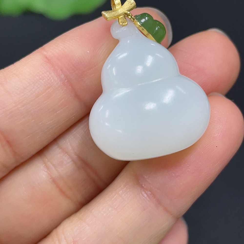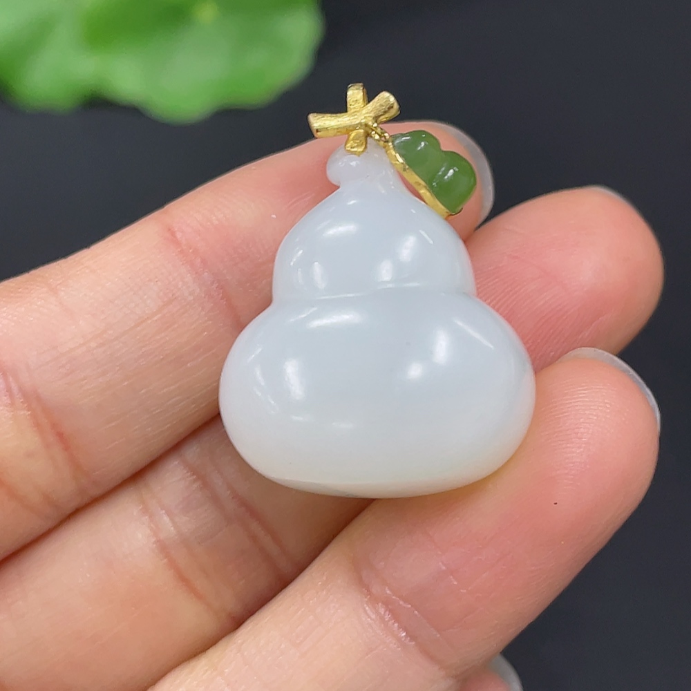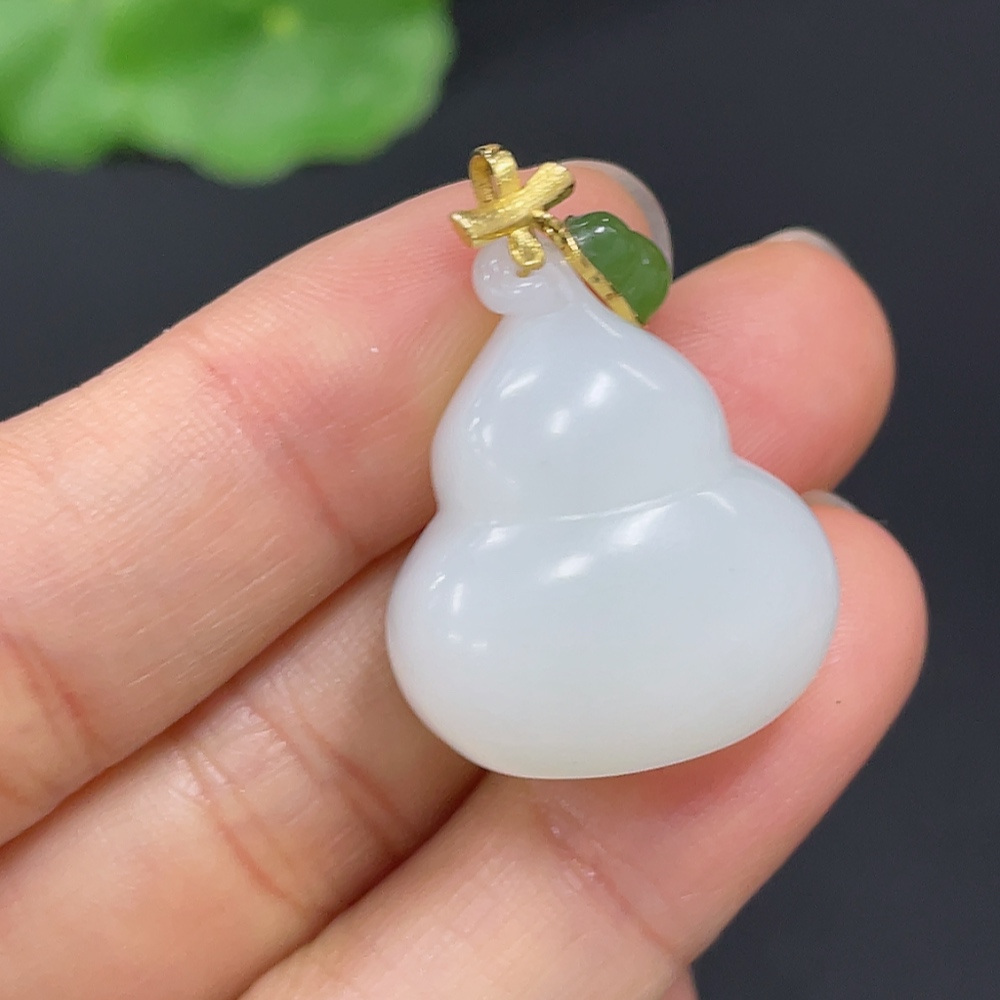 Hetian Jade Pendant Gourd with 18K Gold Clasp Total Weight Approx. 10g