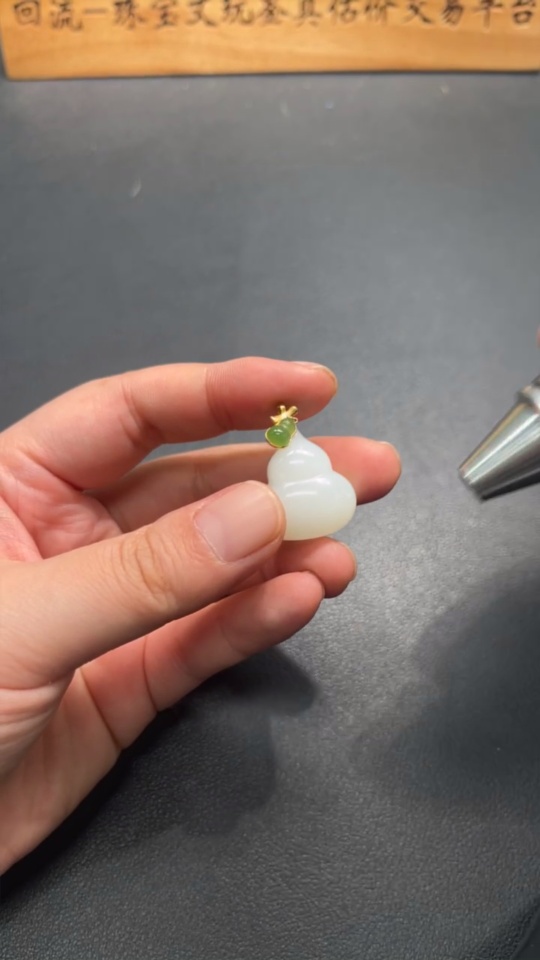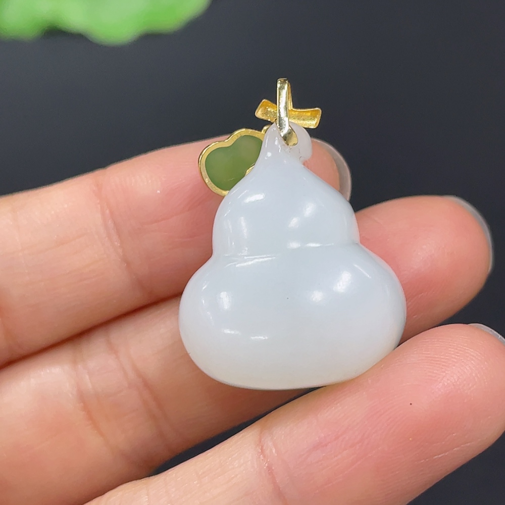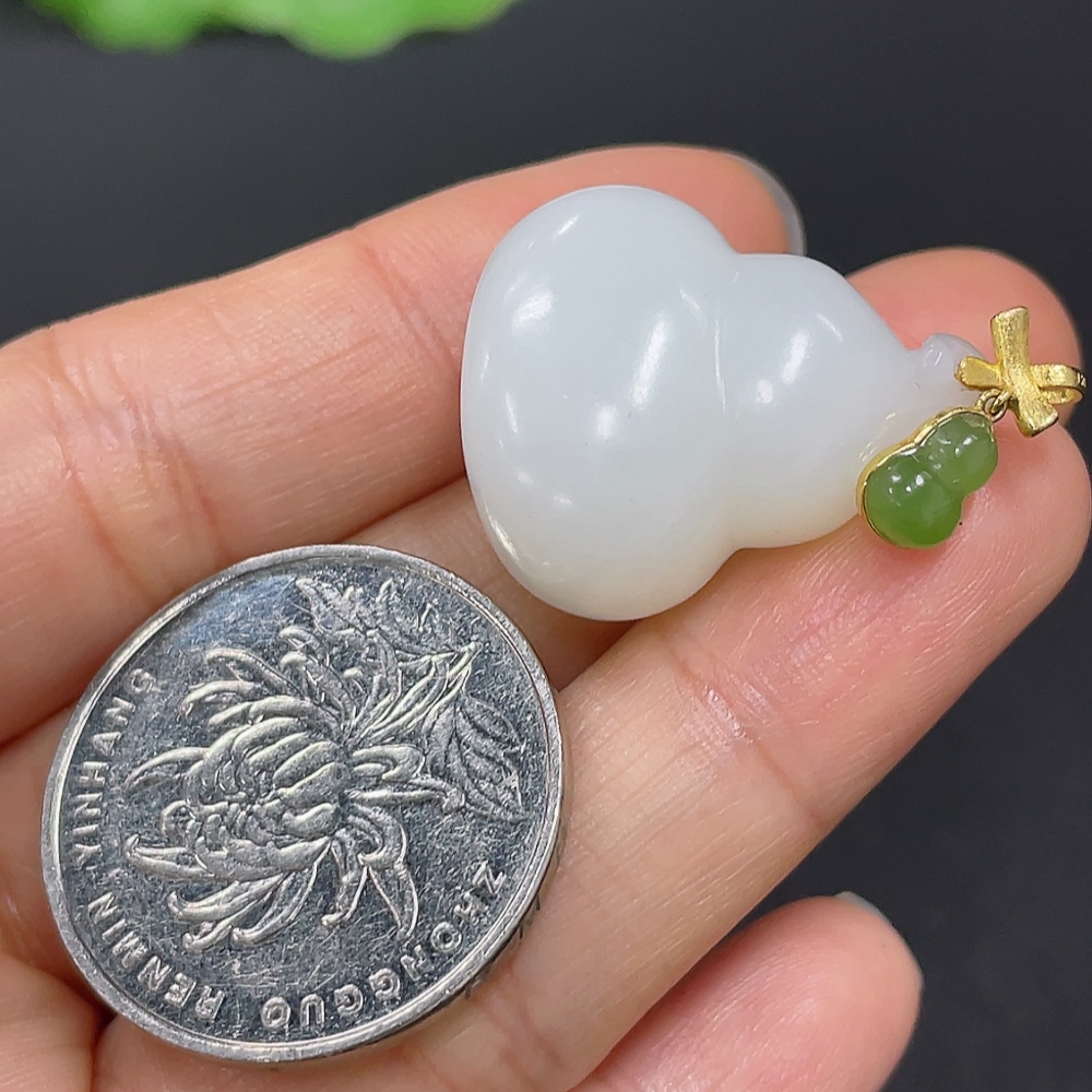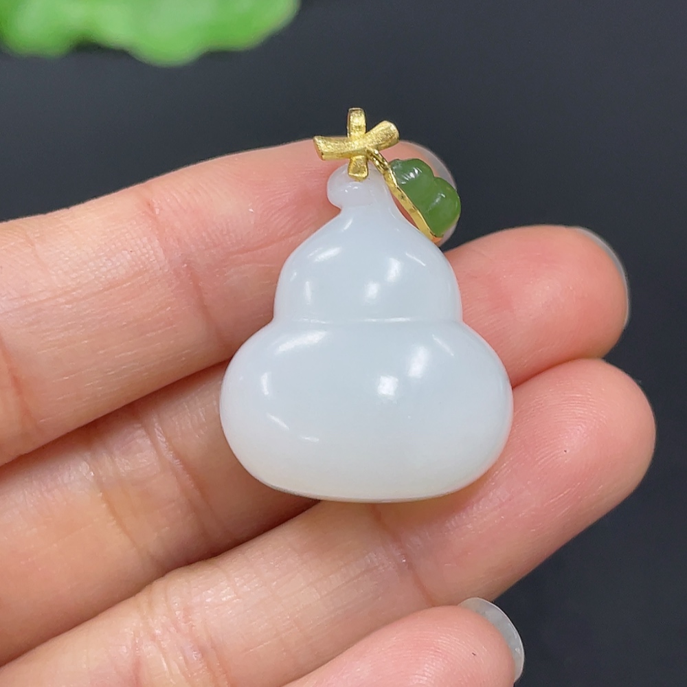 Hetian Jade Pendant Gourd with 18K Gold Clasp Total Weight Approx. 10g
