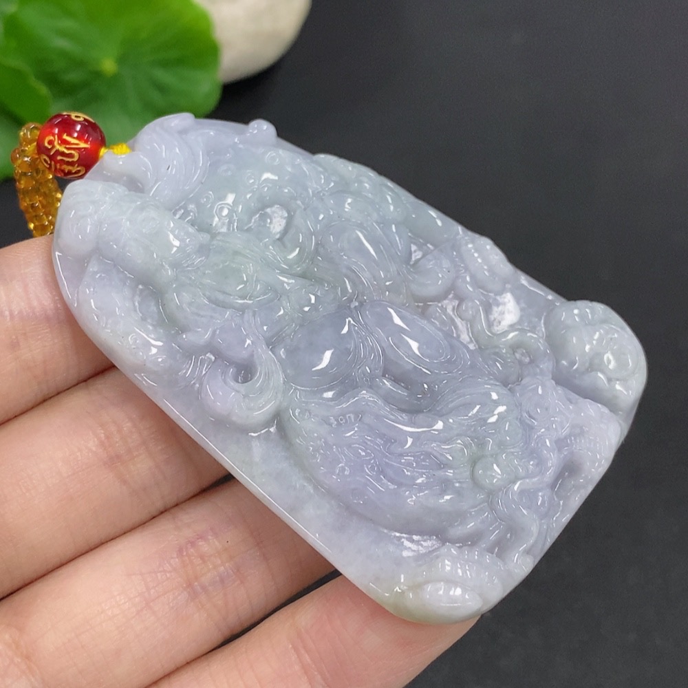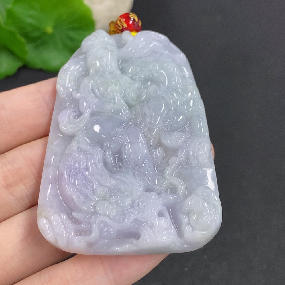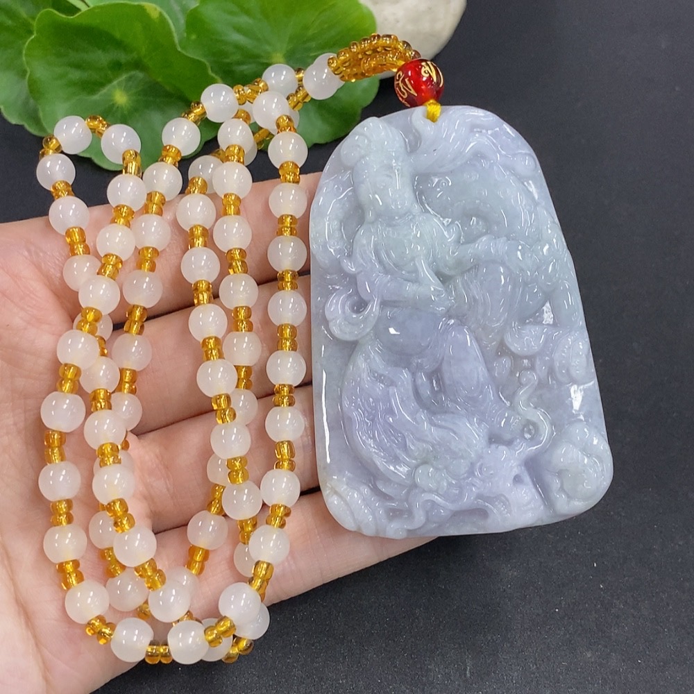 Jadeite Dragon-Keeping Guanyin Pendant, Total Weight Approx. 71g (Including Rope Weight), Non-Jadeite Chain Included