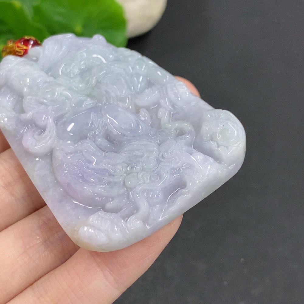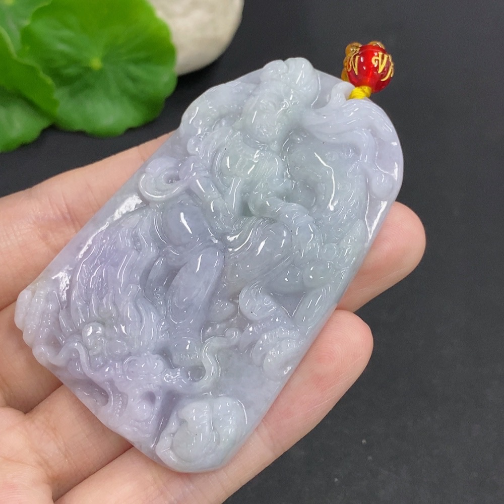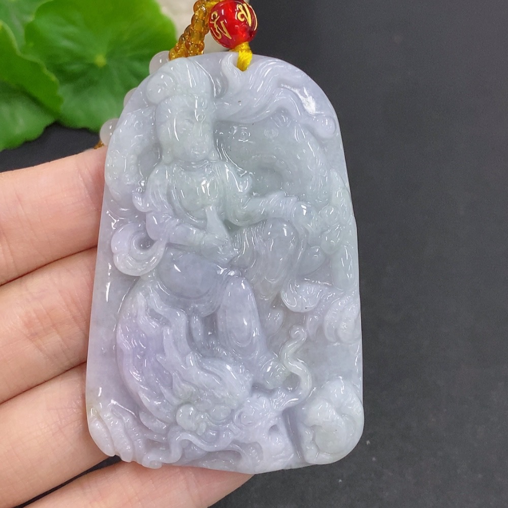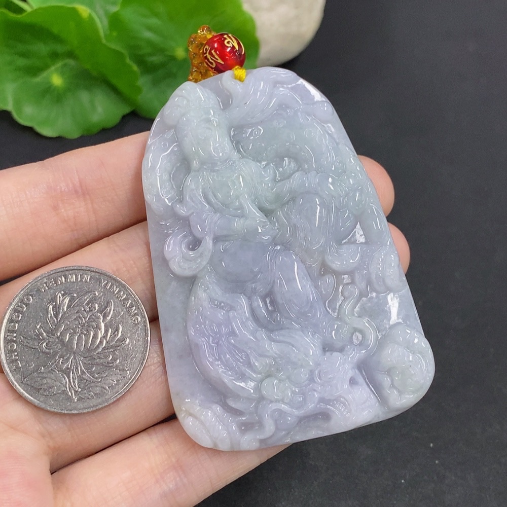 Jadeite Dragon-Keeping Guanyin Pendant, Total Weight Approx. 71g (Including Rope Weight), Non-Jadeite Chain Included