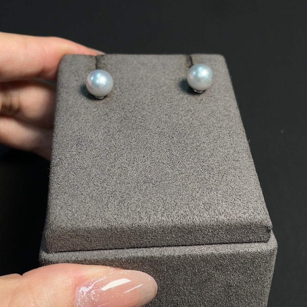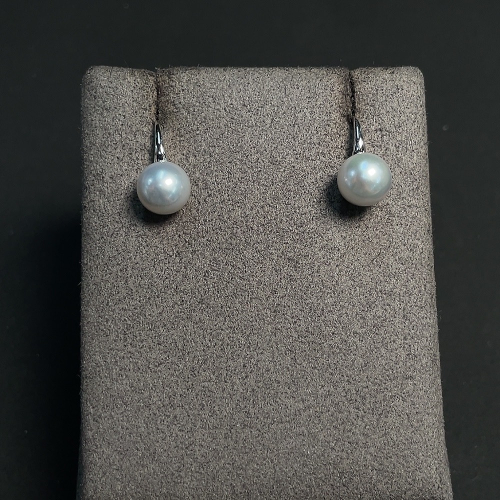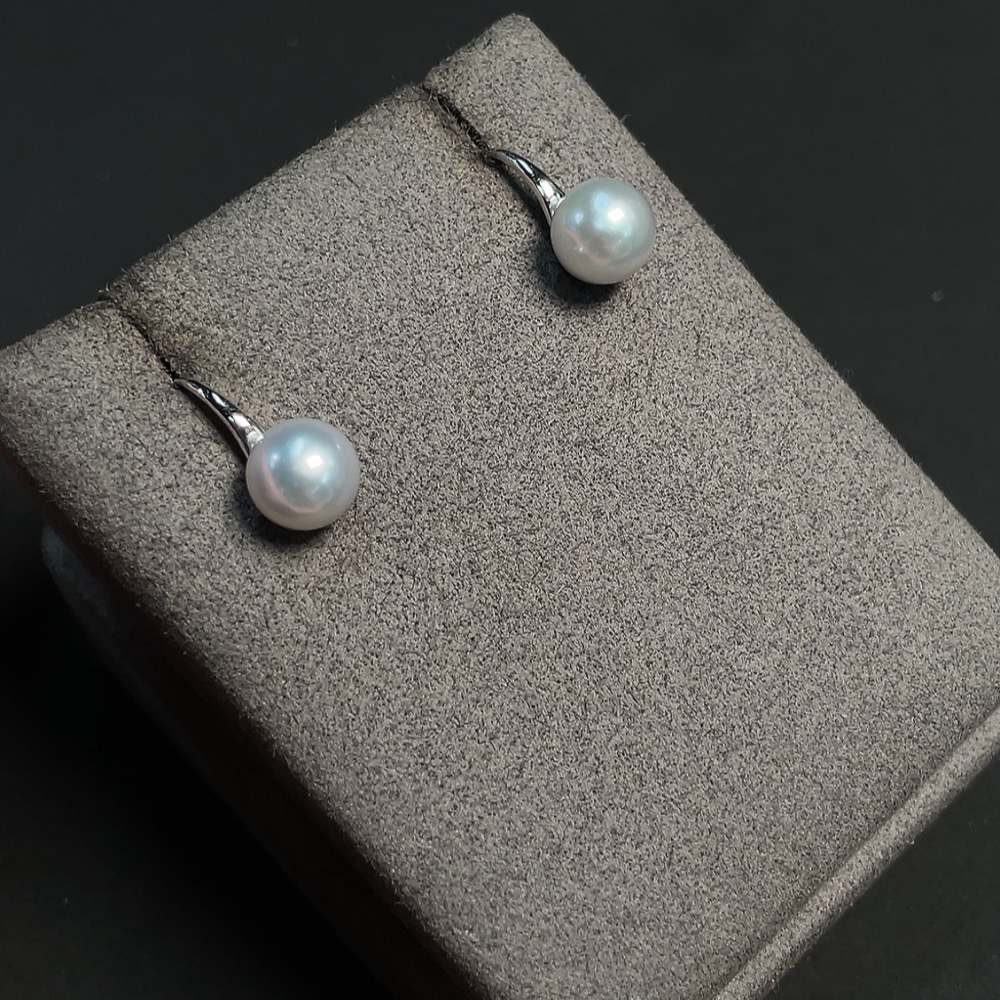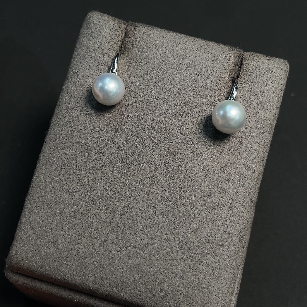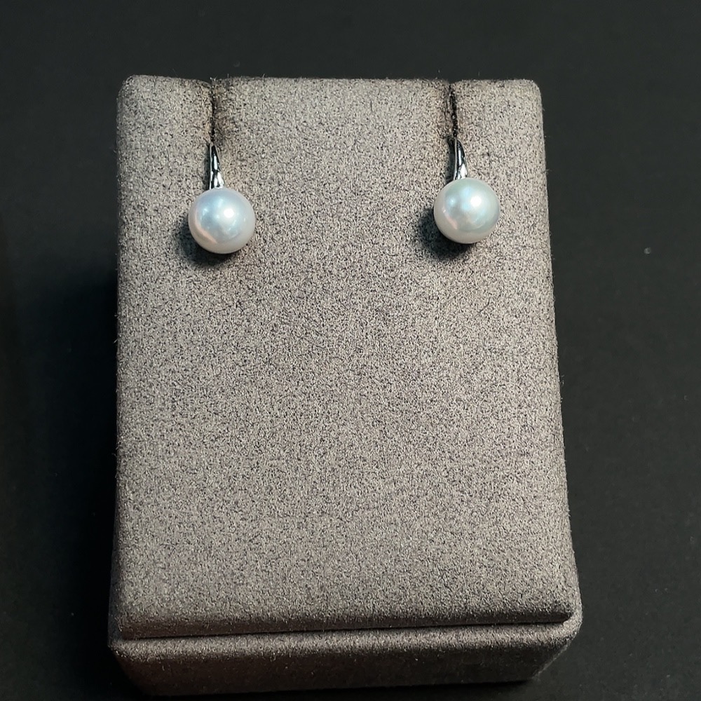 Seawater Pearl Earrings Set in 18K Gold, Approximately 8.2mm, Total Weight About 2.61g, Color Origin Undetermined