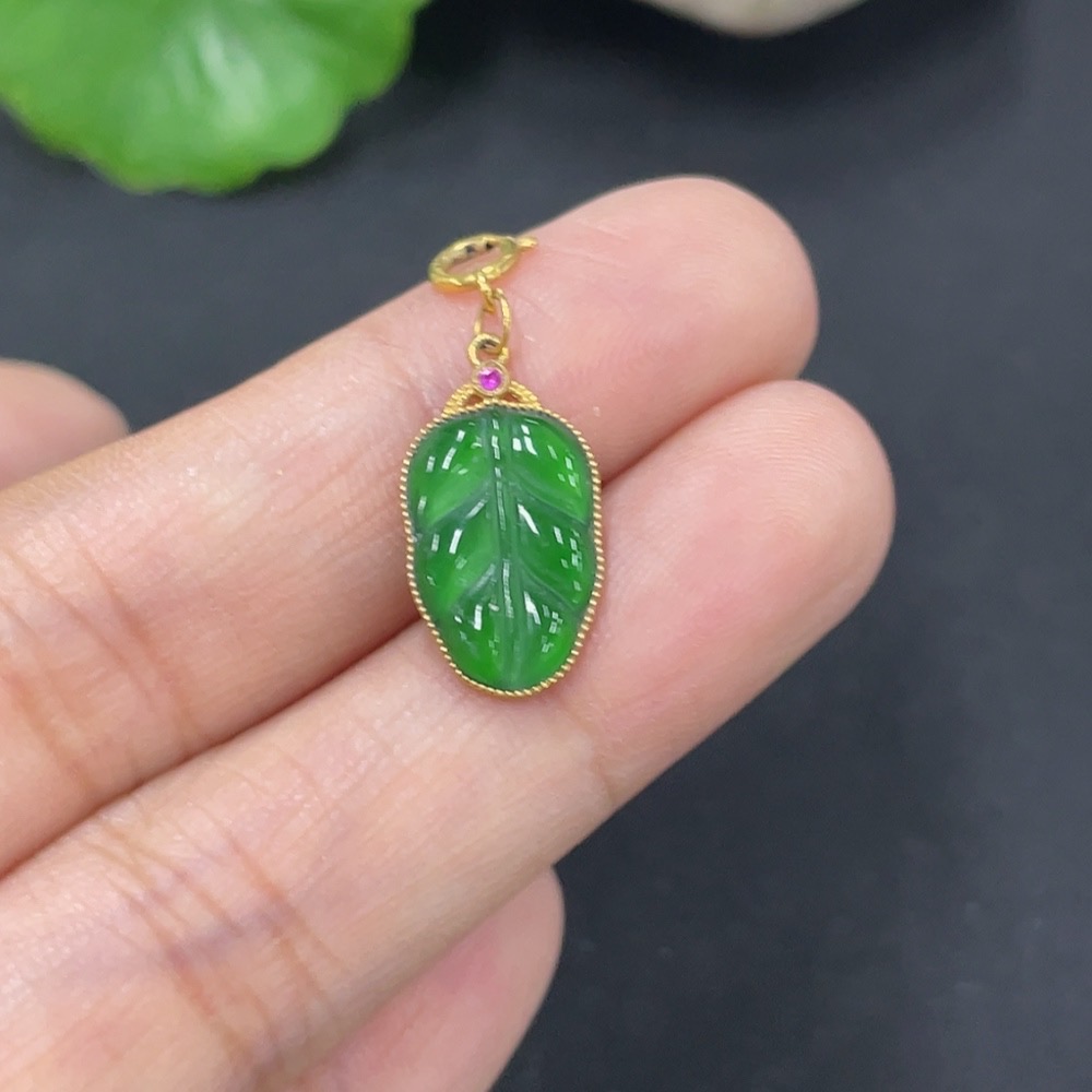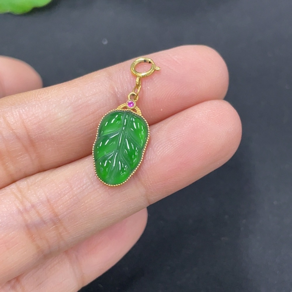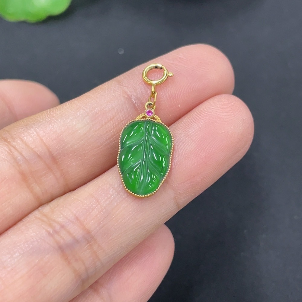 Jadeite Leaf Pendant with 18k Gold, Total Weight Approx. 1g