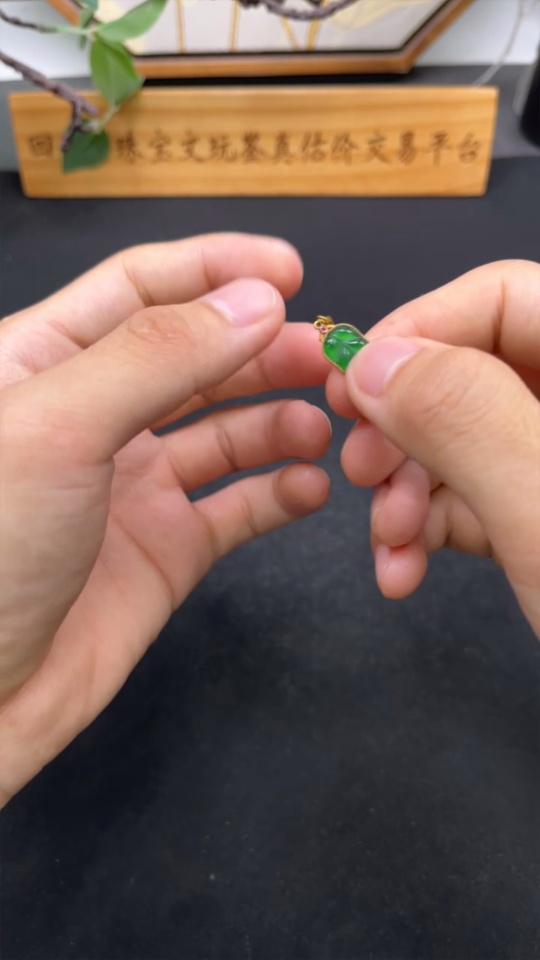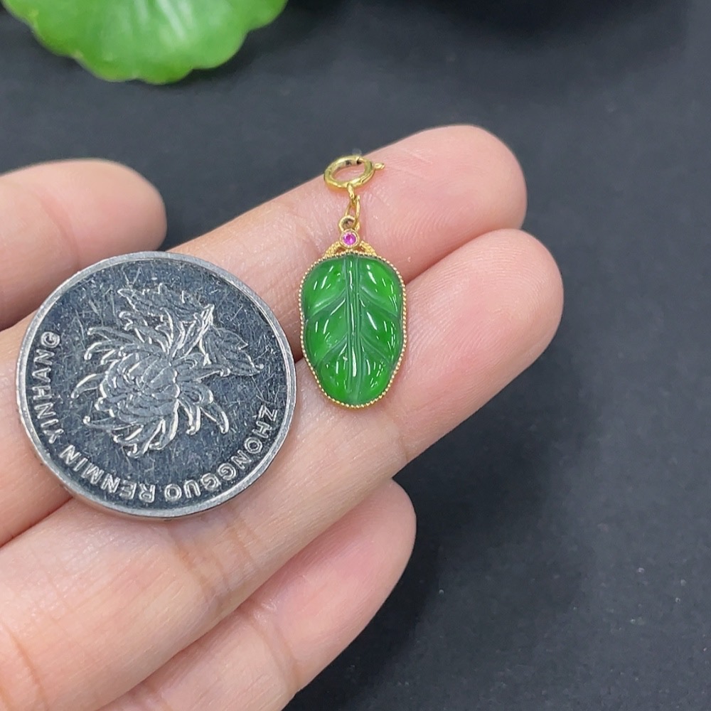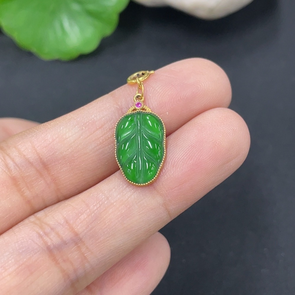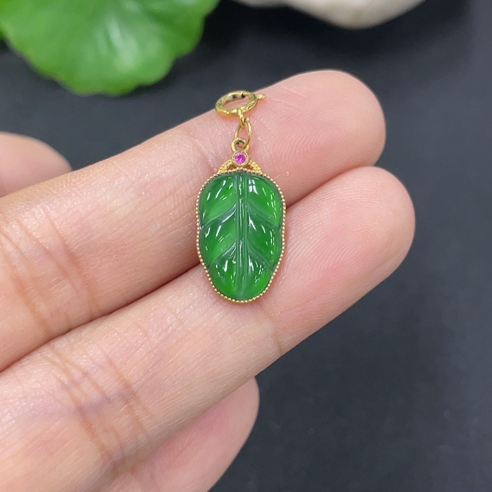 Jadeite Leaf Pendant with 18k Gold, Total Weight Approx. 1g