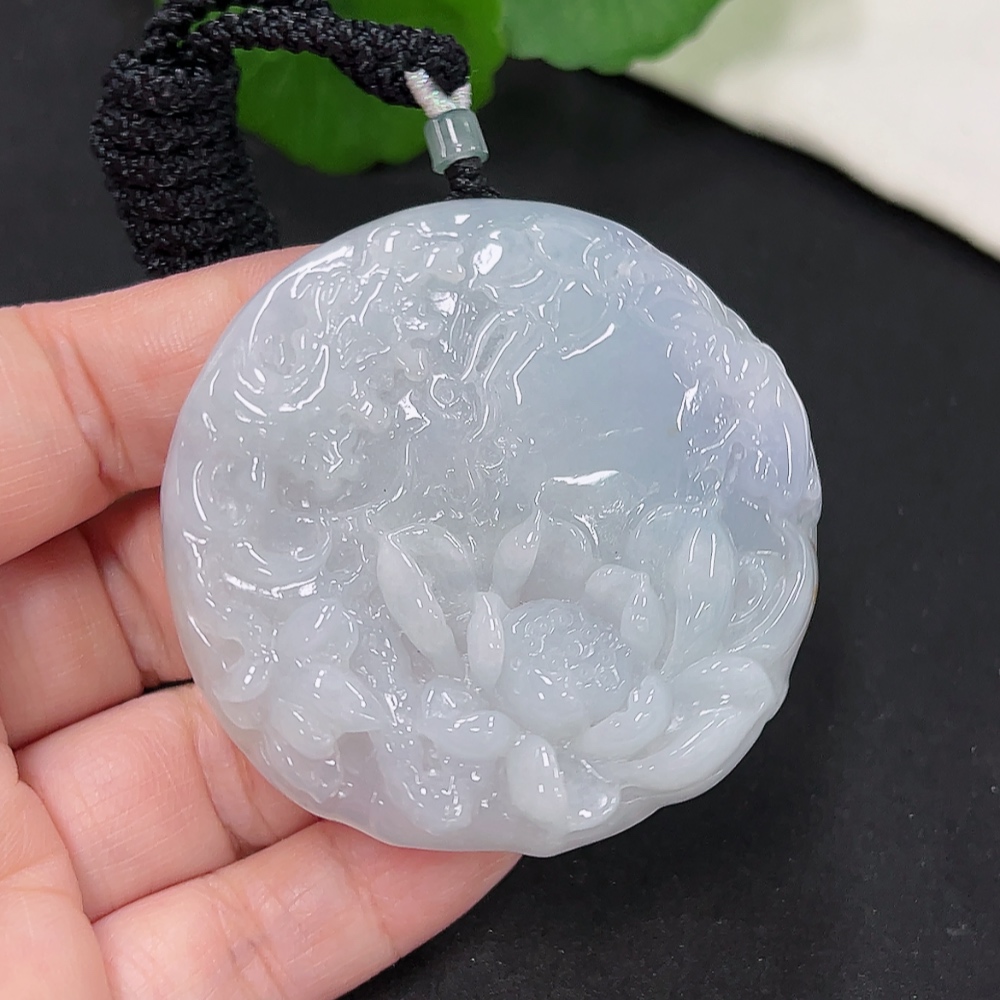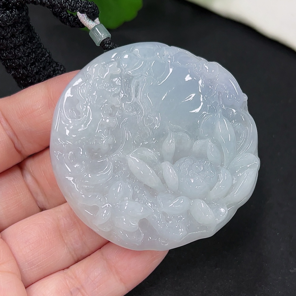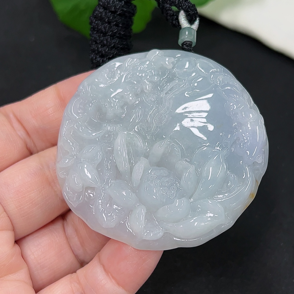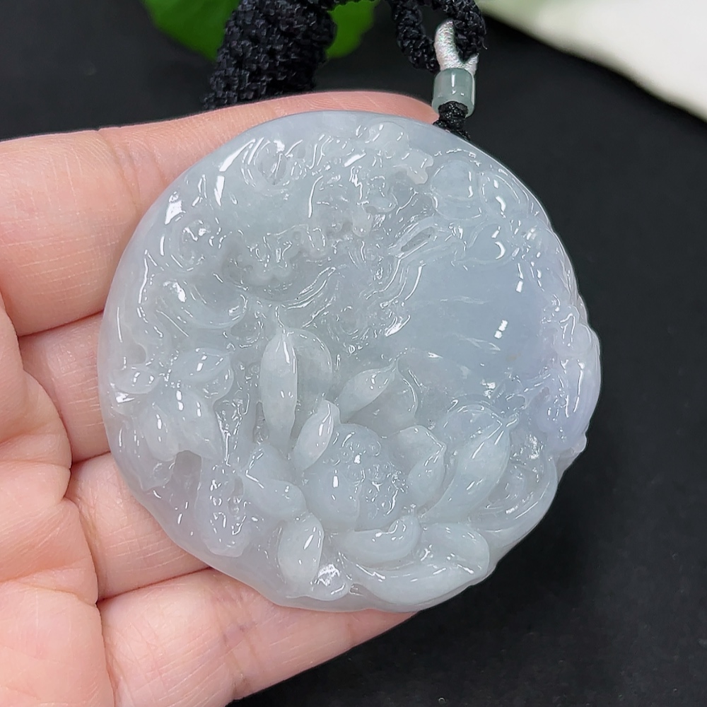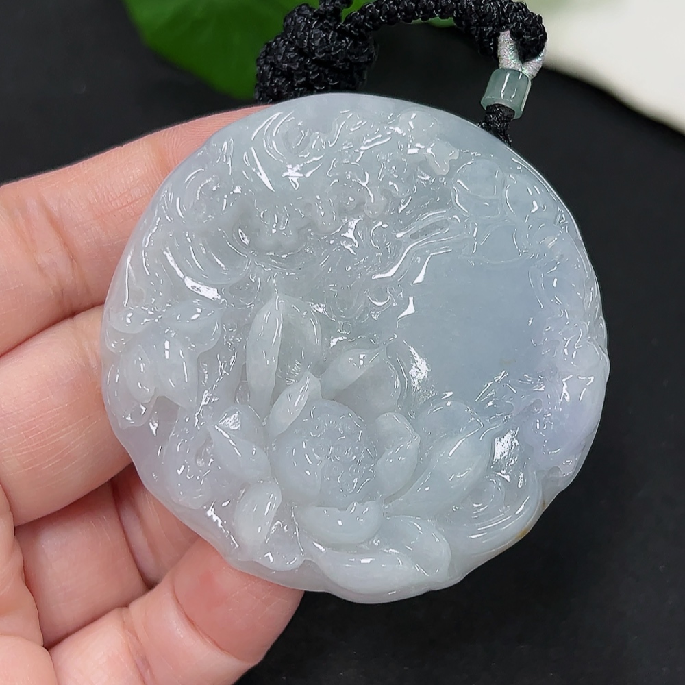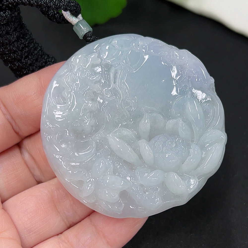 Jadeite Lotus Pendant Total Weight Approx. 52.3g (including rope weight)