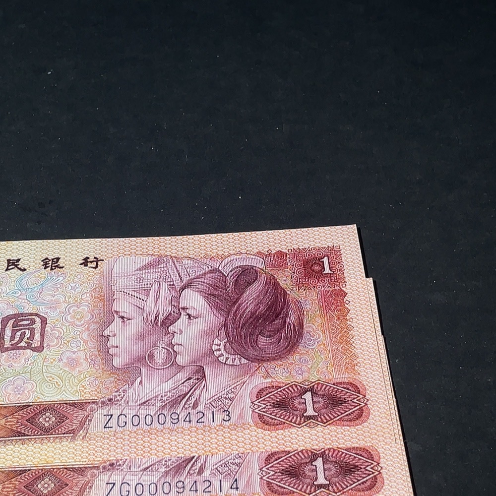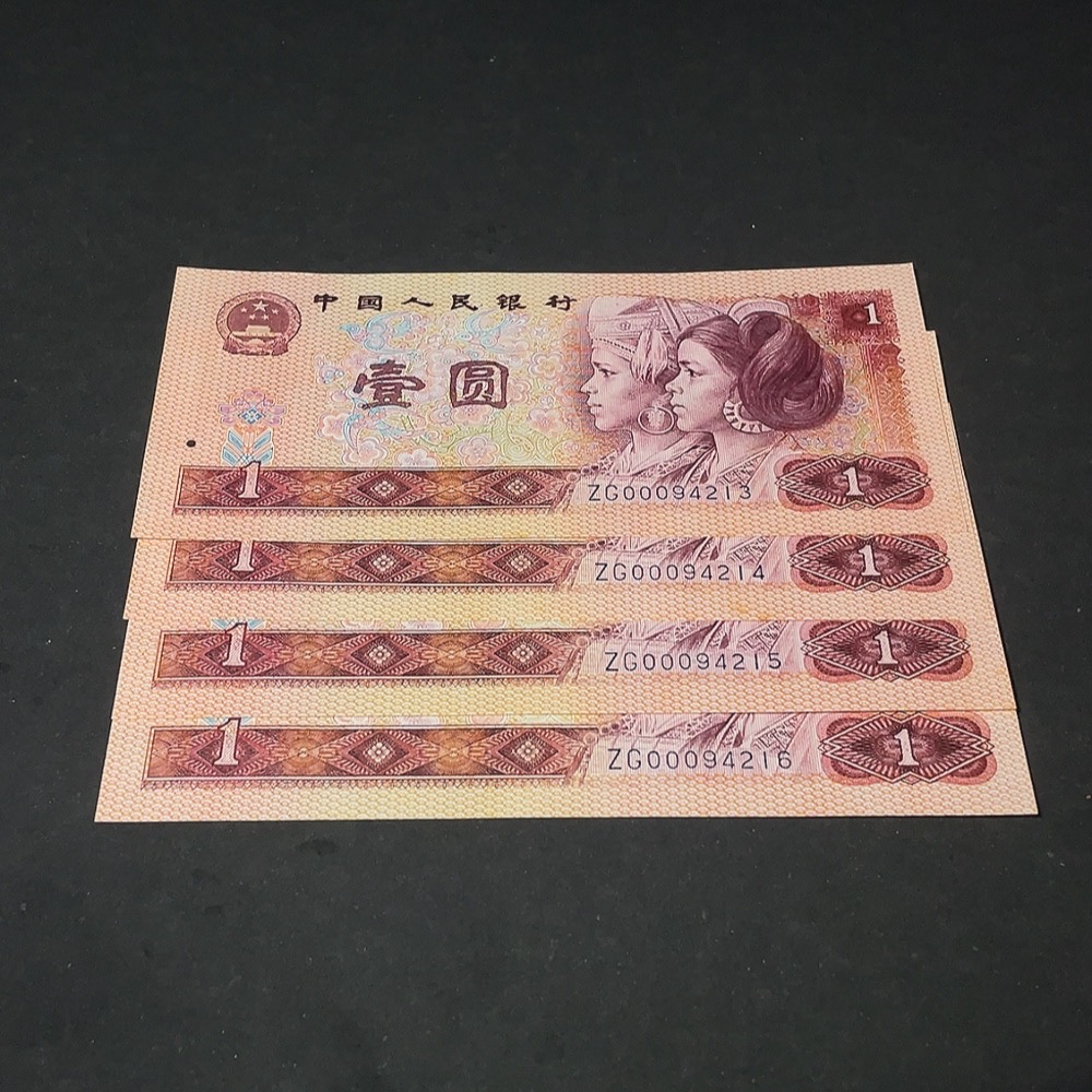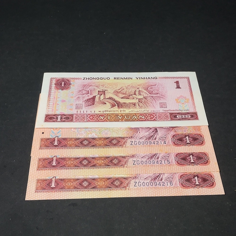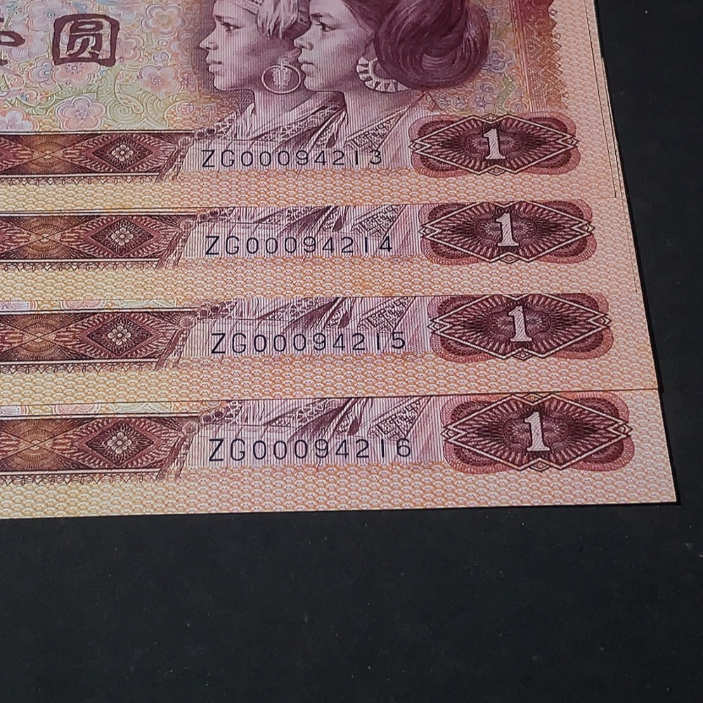 The Fourth Set of RMB 1980 Edition One Yuan Banknotes Set of 4 Consecutive Numbers Opening Auspicious Leopard Head Number (with mottling)