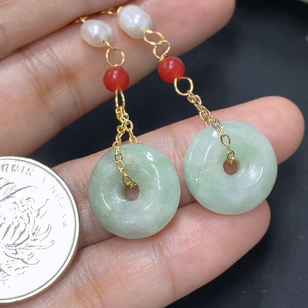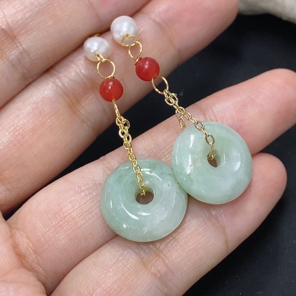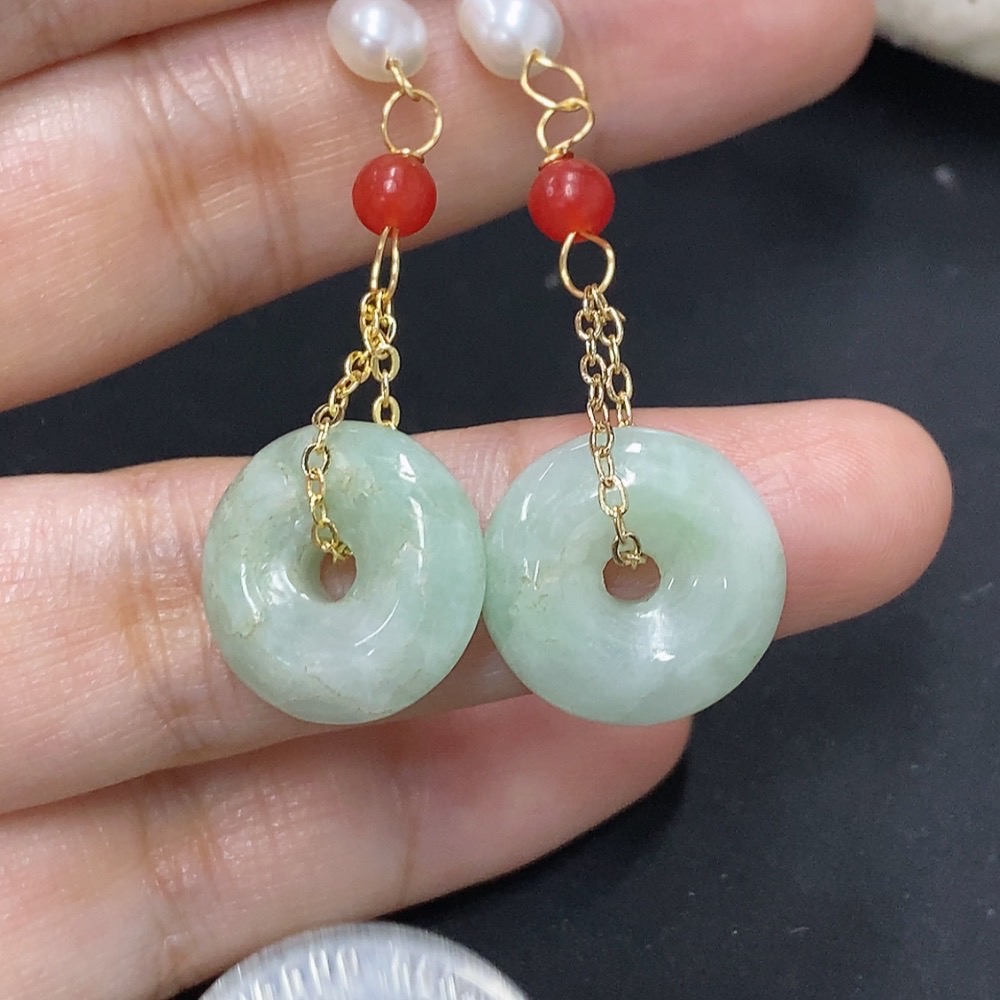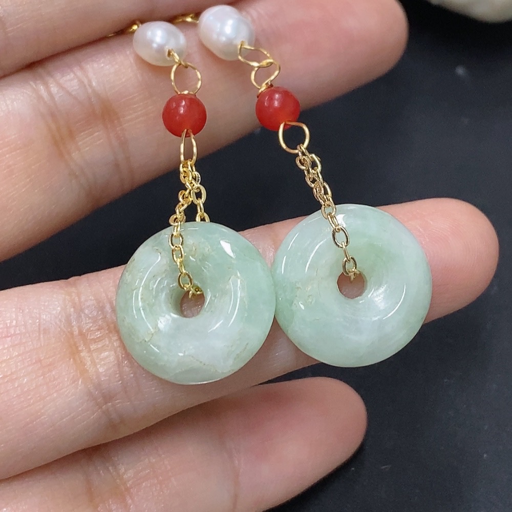 Jadeite Peace Knot Inlaid Earrings Non-Gold Total Product Weight Approximately 6.1g